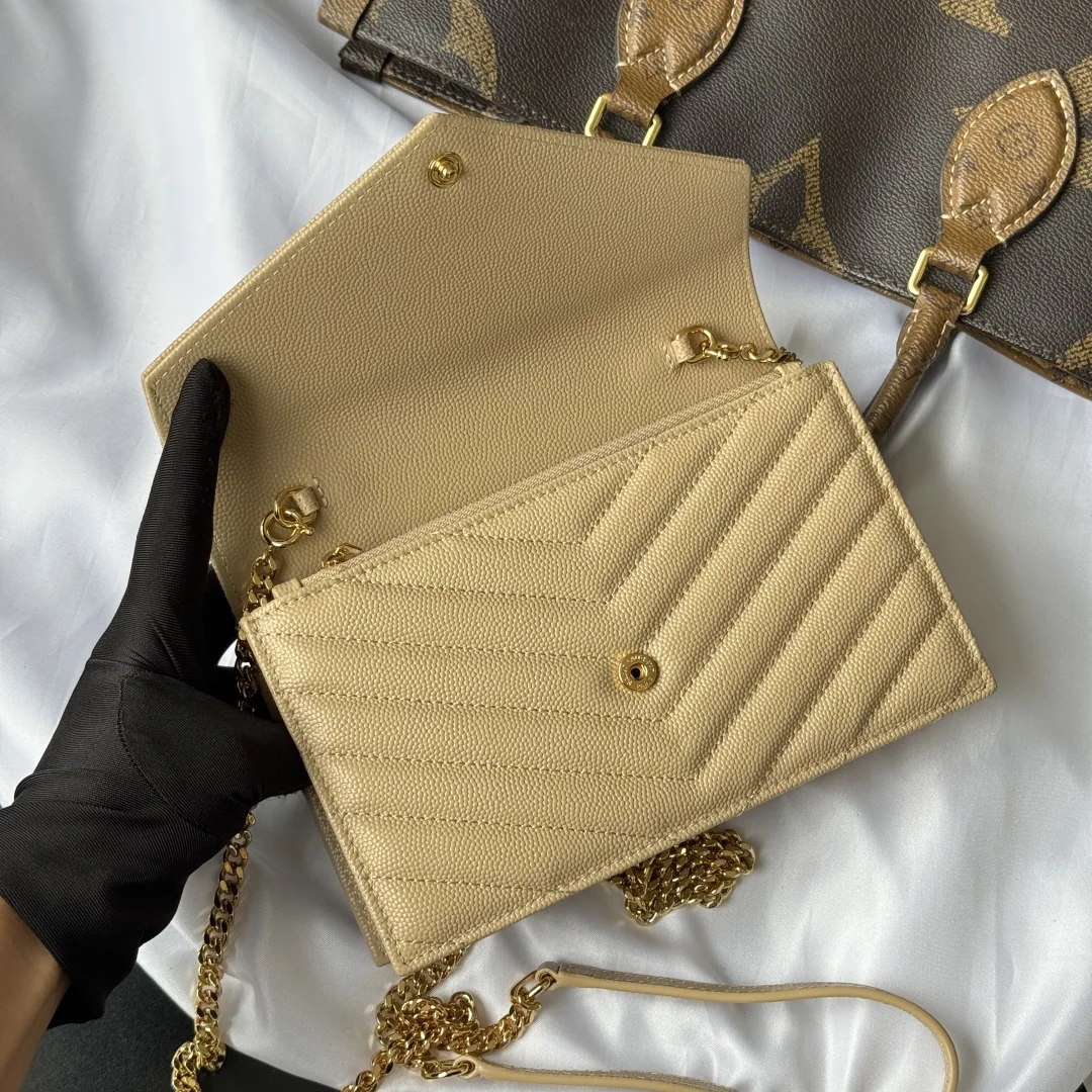 WOC 19cm in six colors, details as shown in the picture. The WOC small envelope bag is here! Speaking of envelope bags, this one from Y brand is a must-have! The entire bag is made of original factory patent leather cowhide, with a three-dimensional shape and comfortable feel! The detachable shoulder strap design enriches the bag s versatility. The shoulder strap can be removed and used directly as a clutch evening bag. It has multiple built-in card slots, which is extremely practical. Usually, when you go out, you can easily travel the world with just a small bag with your mobile phone and cards! Model: 393953 Size: 19x11.5x4cm