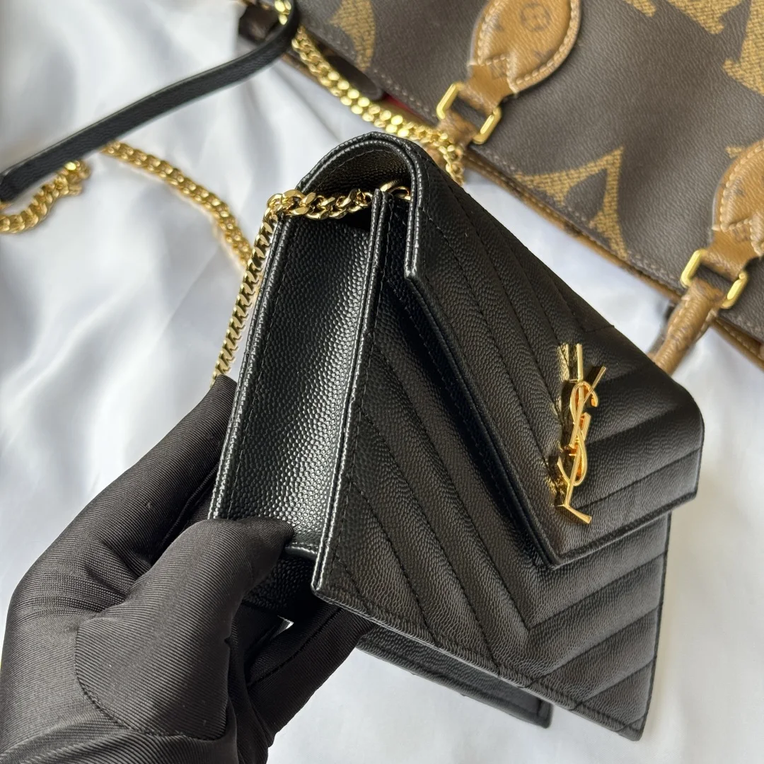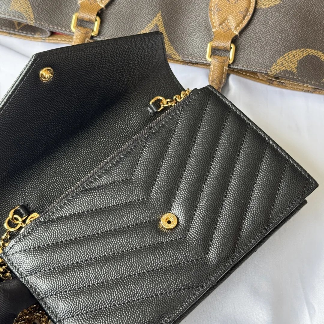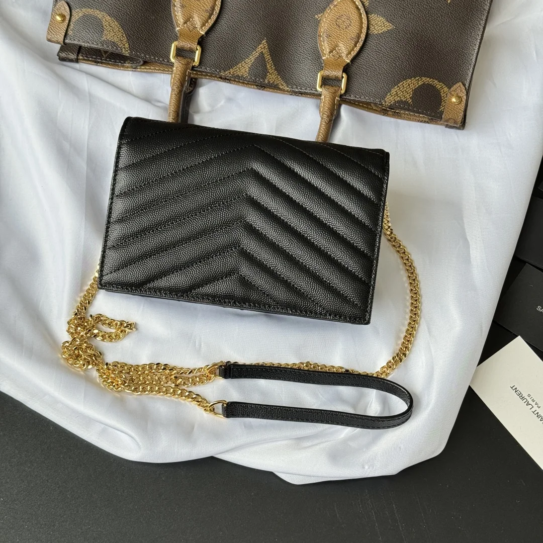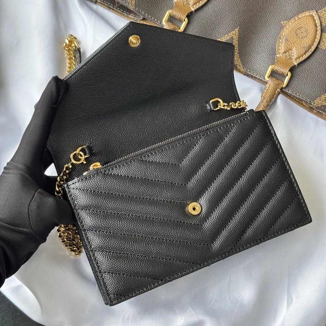 WOC 19cm in six colors, details as shown. The WOC small envelope bag is here! When it comes to envelope bags, this one from Y must be mentioned! The entire bag is made of original factory patent leather cowhide, with a three-dimensional shape and comfortable feel! The detachable shoulder strap design enriches the bag s versatility. The shoulder strap can be removed and used directly as a clutch evening bag. Multiple card slots are built in, making it extremely practical. When you go out, you can easily travel the world with just a small bag carrying your mobile phone and cards! Model: 393953 Size: 19x11.5x4cm