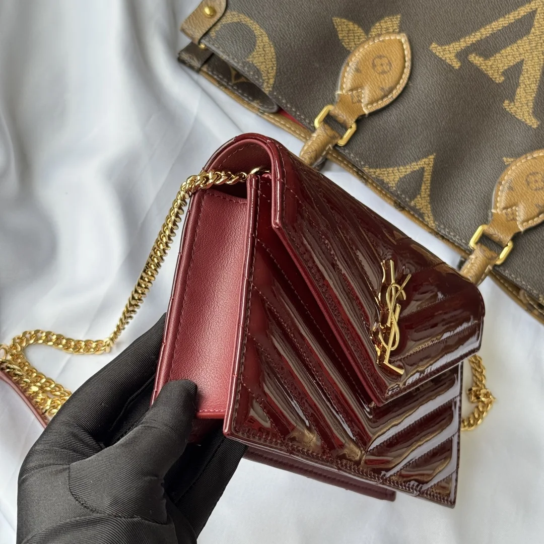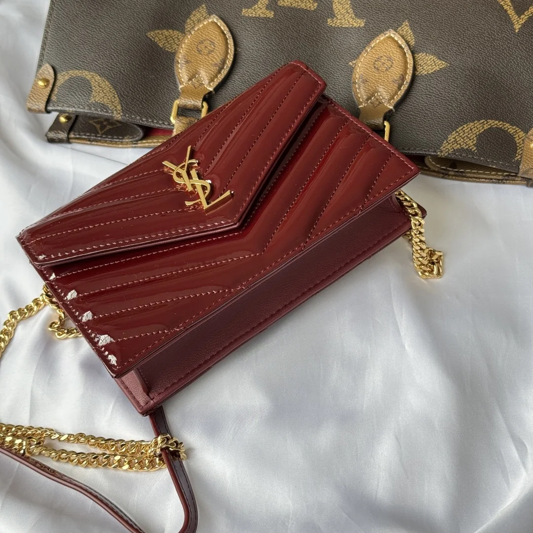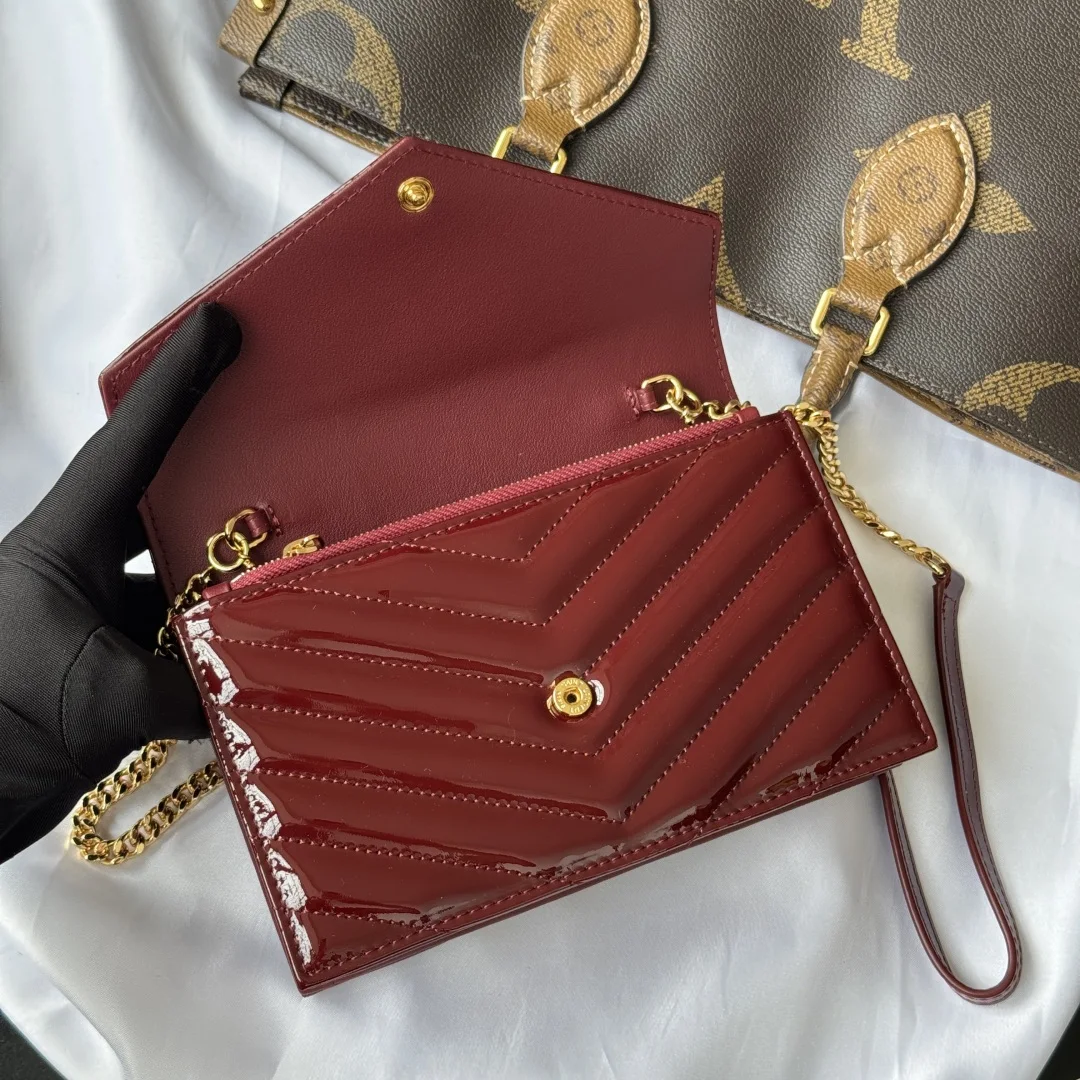 WOC 19cm in six colors, details as shown in the picture. The WOC small envelope bag is here! Speaking of envelope bags, this one from Y must be on your list! The entire bag is made of original factory patent leather cowhide, with a three-dimensional shape and comfortable feel! The detachable shoulder strap design enriches the bag s versatility. The shoulder strap can be removed and used directly as a clutch evening bag. It has multiple built-in card slots, which is extremely practical. When you go out, you can easily travel the world with just a small bag with your mobile phone and cards! Model: 393953 Size: 19x11.5x4cm