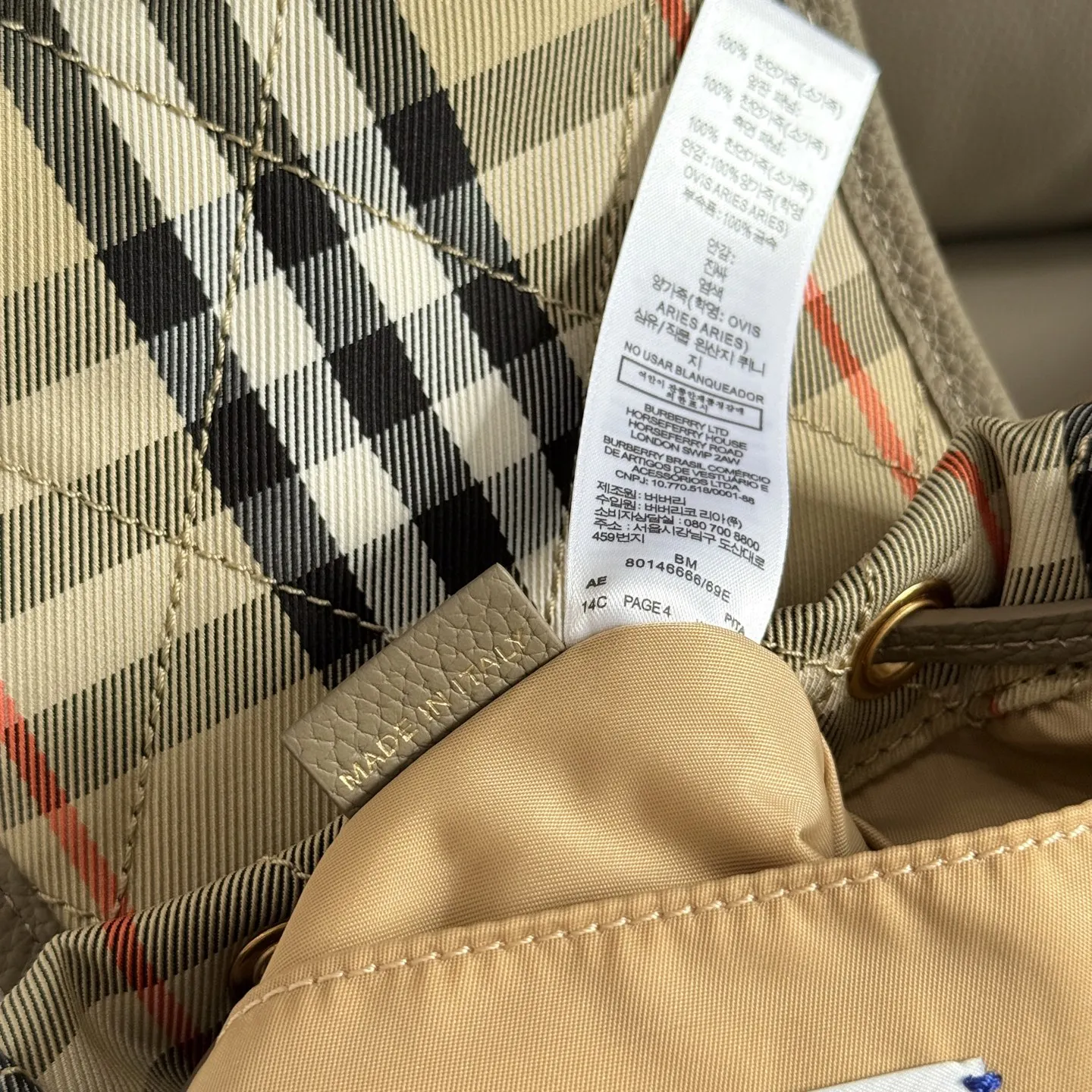 Top grade B家 latest Horseshoe backpack, inspired by the elegant British countryside. Crafted from quilted nylon fabric, paired with finely woven Burberry check, interpreted in the brand s iconic trench color. Adorned with leather trim, incorporating a Knight Stamp design, a heritage motif from the brand s 1980s bag collection. Features D-rings on the sides for attaching charms, allowing for personalized styling.