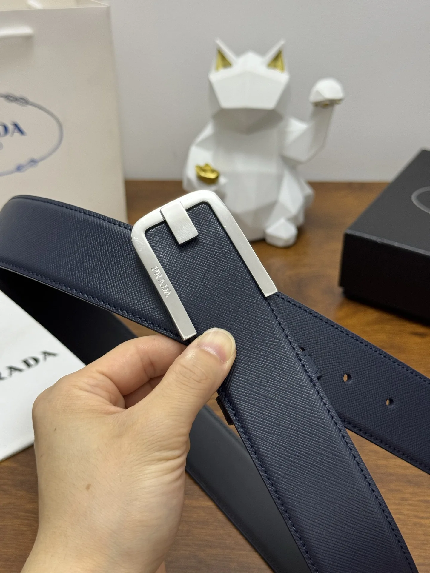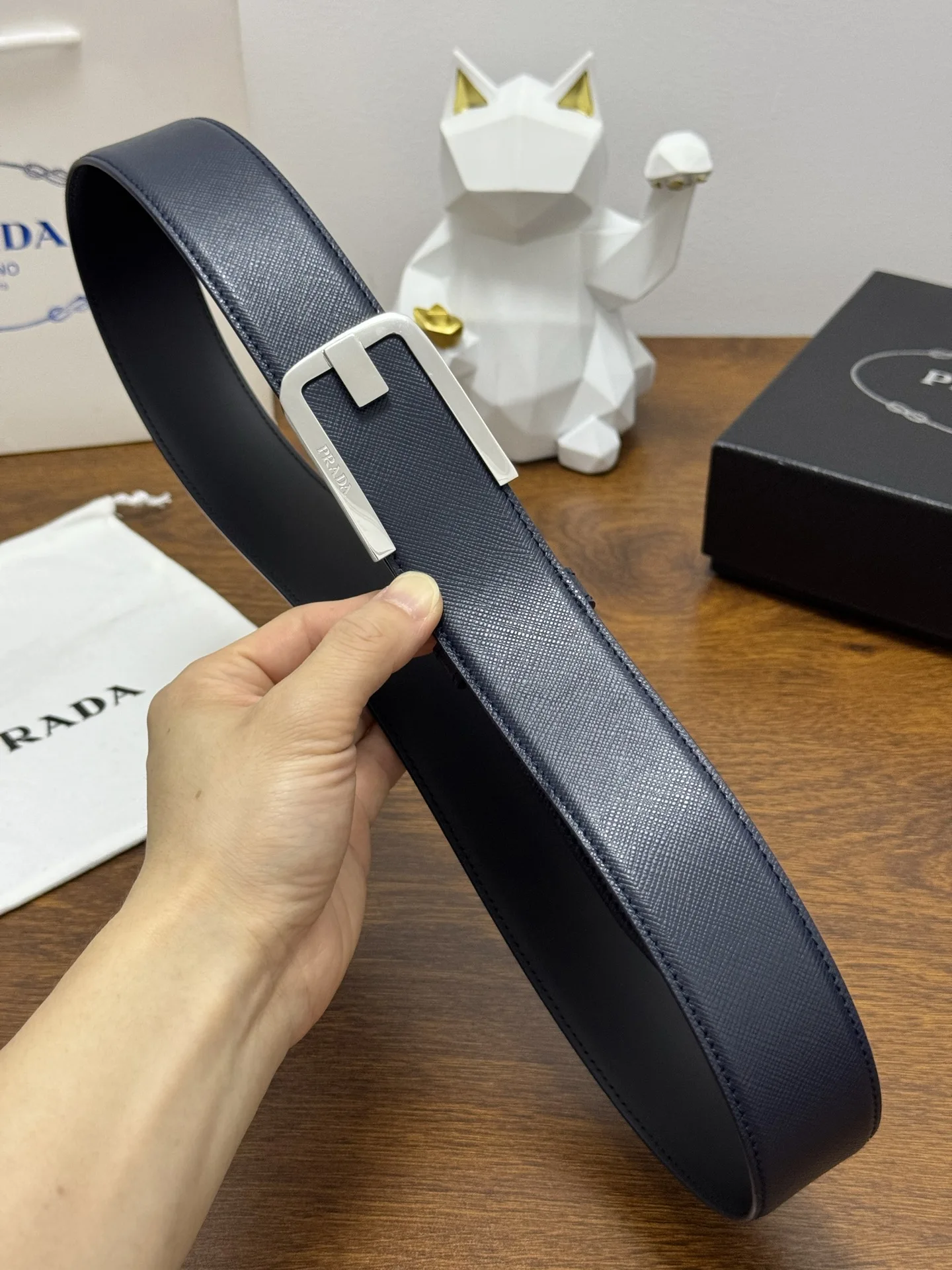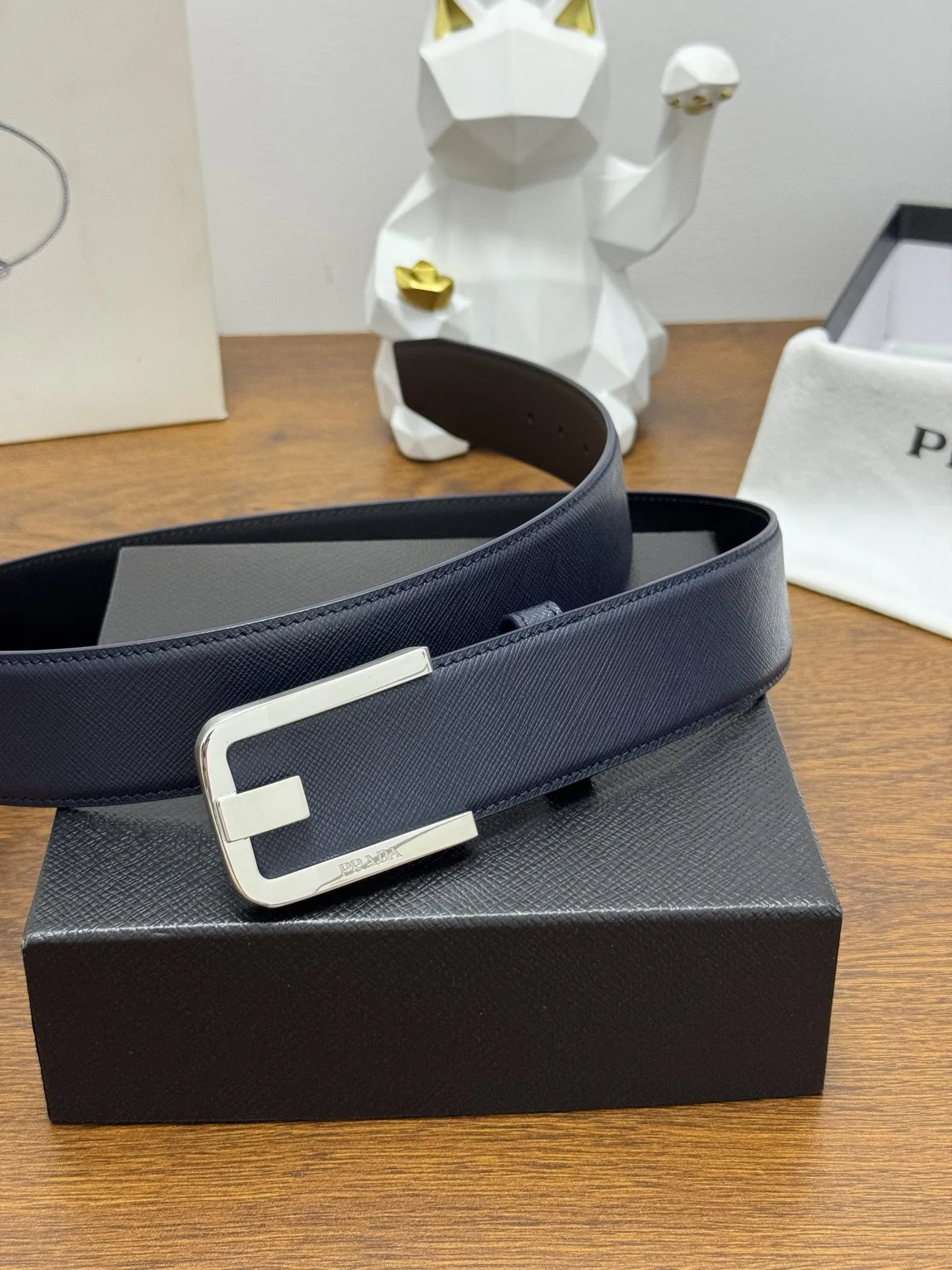 PRADA full packaging 4.0cm plain textured cowhide leather quality. Every detail reflects the highest taste and style. The overall shape adds an elegant charm, a model of understated luxury, elegant and charming, exquisite craftsmanship.