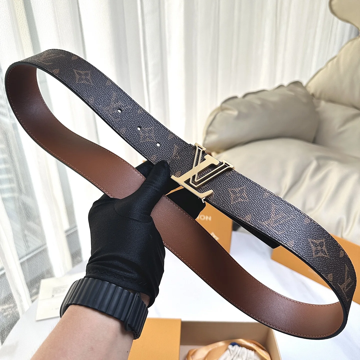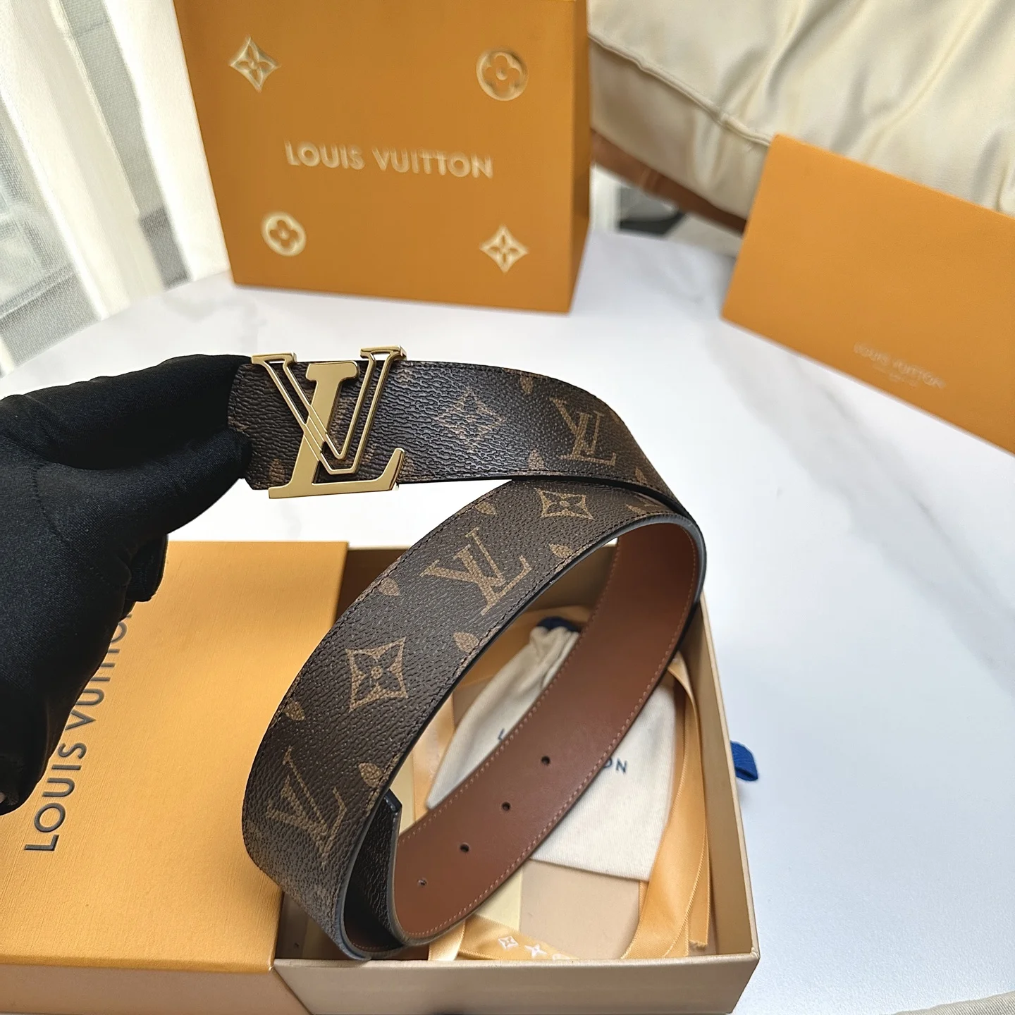 LV. Louis Vuitton full set packaging, 40mm width, authentic integrated cast hardware steel buckle, original factory leather, double-sided original factory customized imported fabric, a good choice for gifts or personal use.
