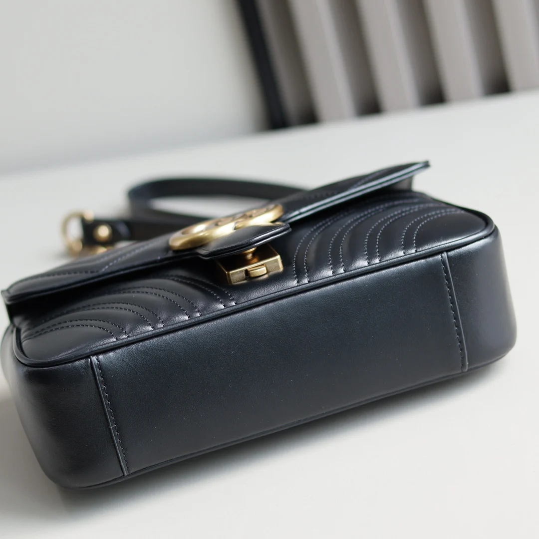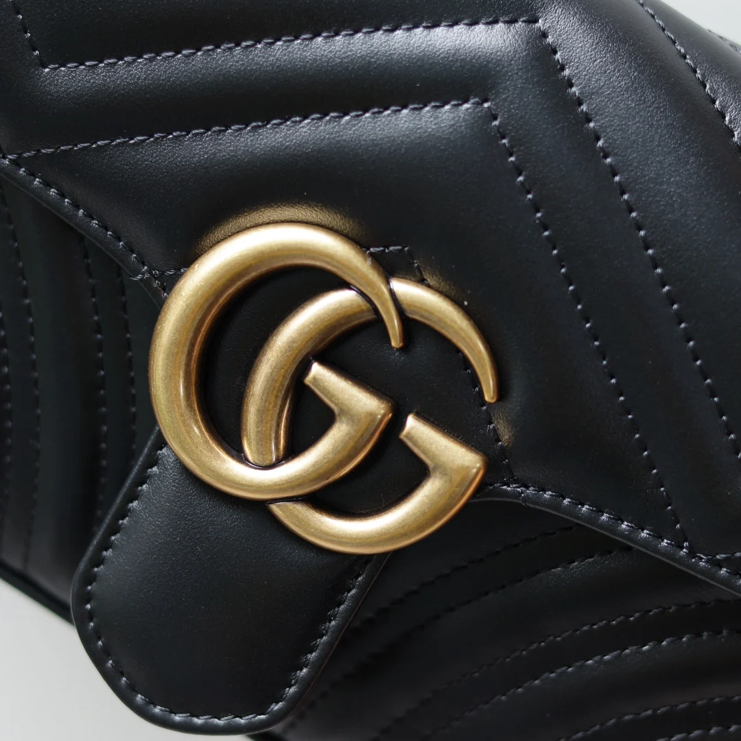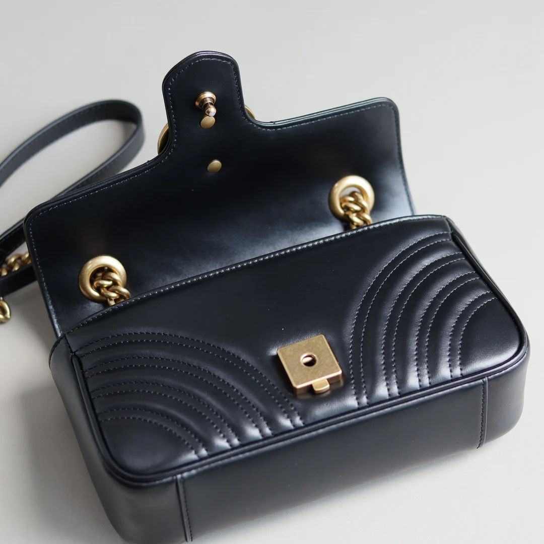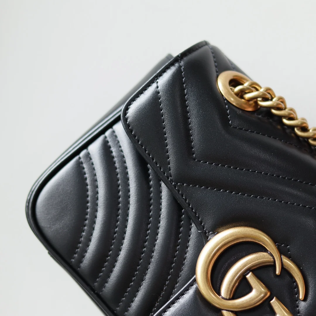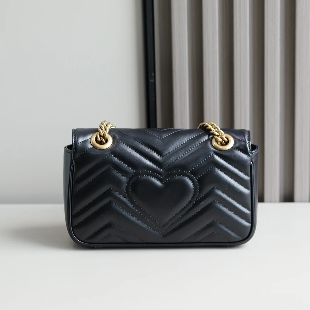 (Original Leather) Newly Upgraded GG Marmont Wave Pattern Chain Bag, imported calfskin with an extremely soft feel, imported high-end custom reddish-bronze hardware. Textured and s..