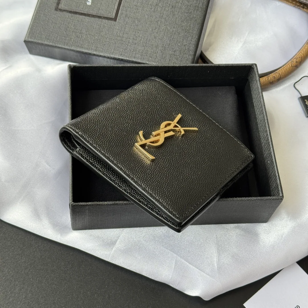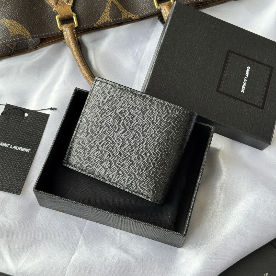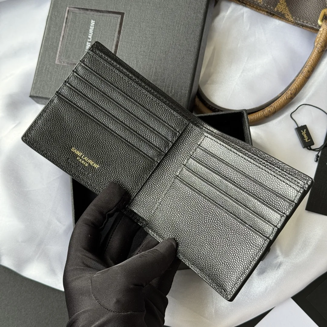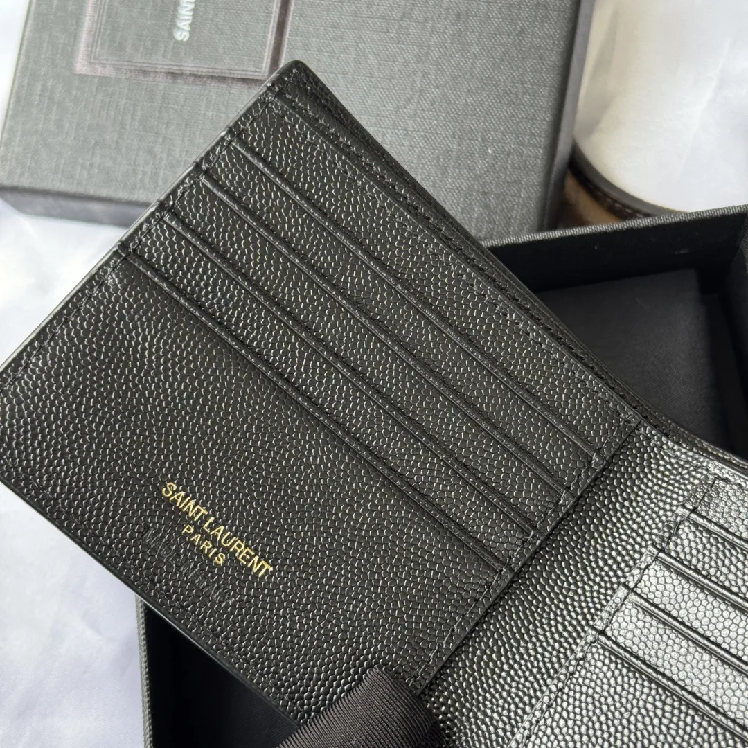 YSL men s wallet with card slots and large bill compartment, featuring a MONOGRAM foldable design adorned with a metal YSL logo. Interior: two bill compartments, eight card slots, and two receipt compartments. Model: 453276. Dimensions: 11*9.5*2.5cm.