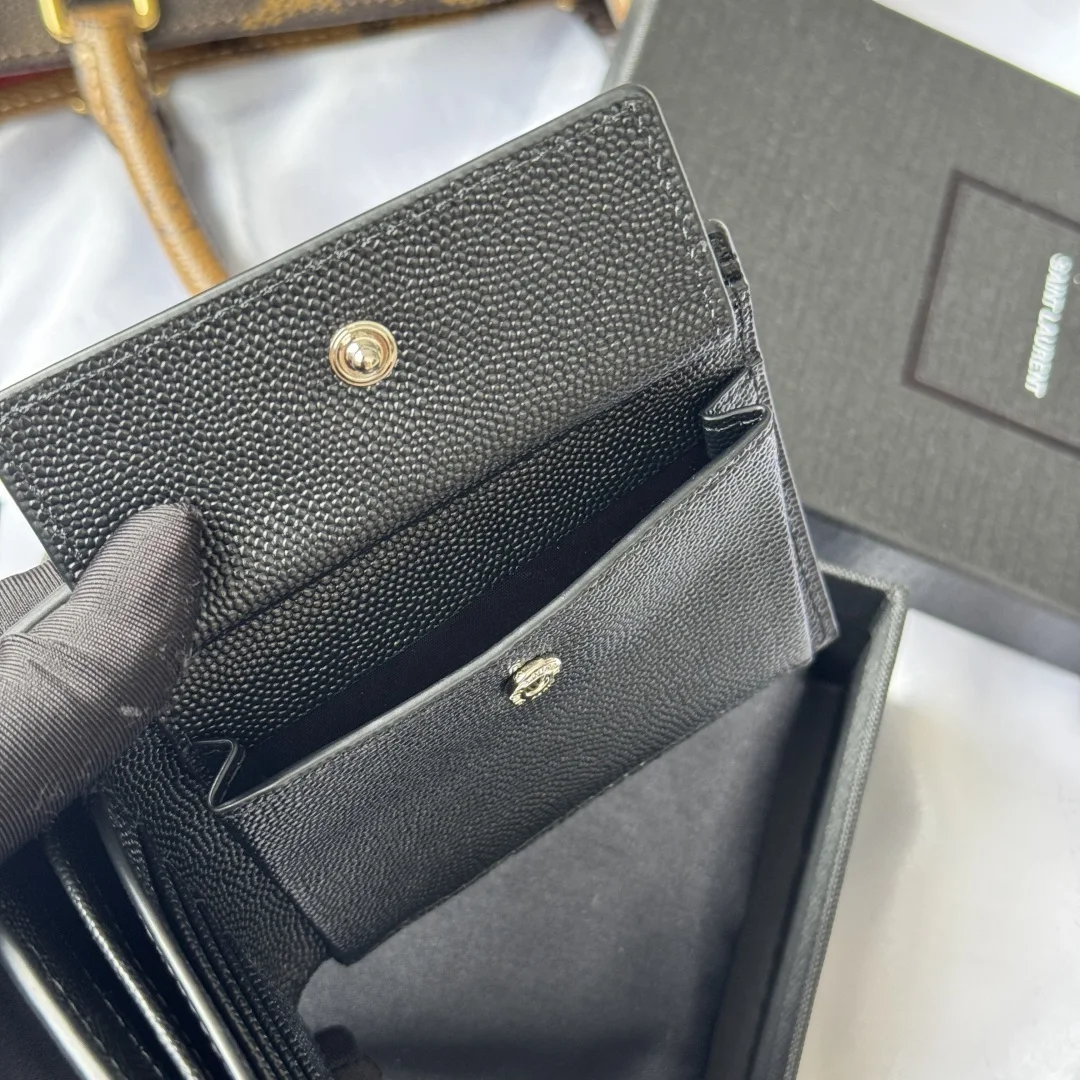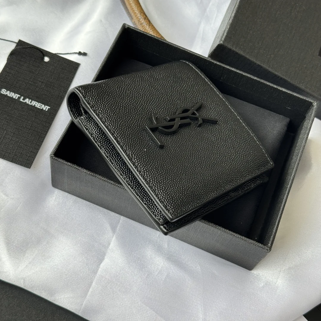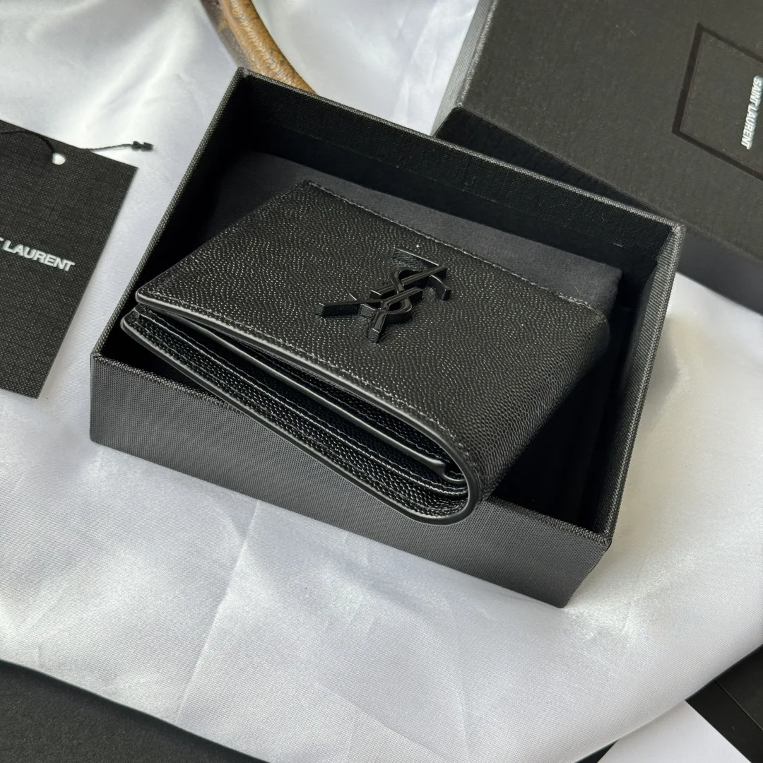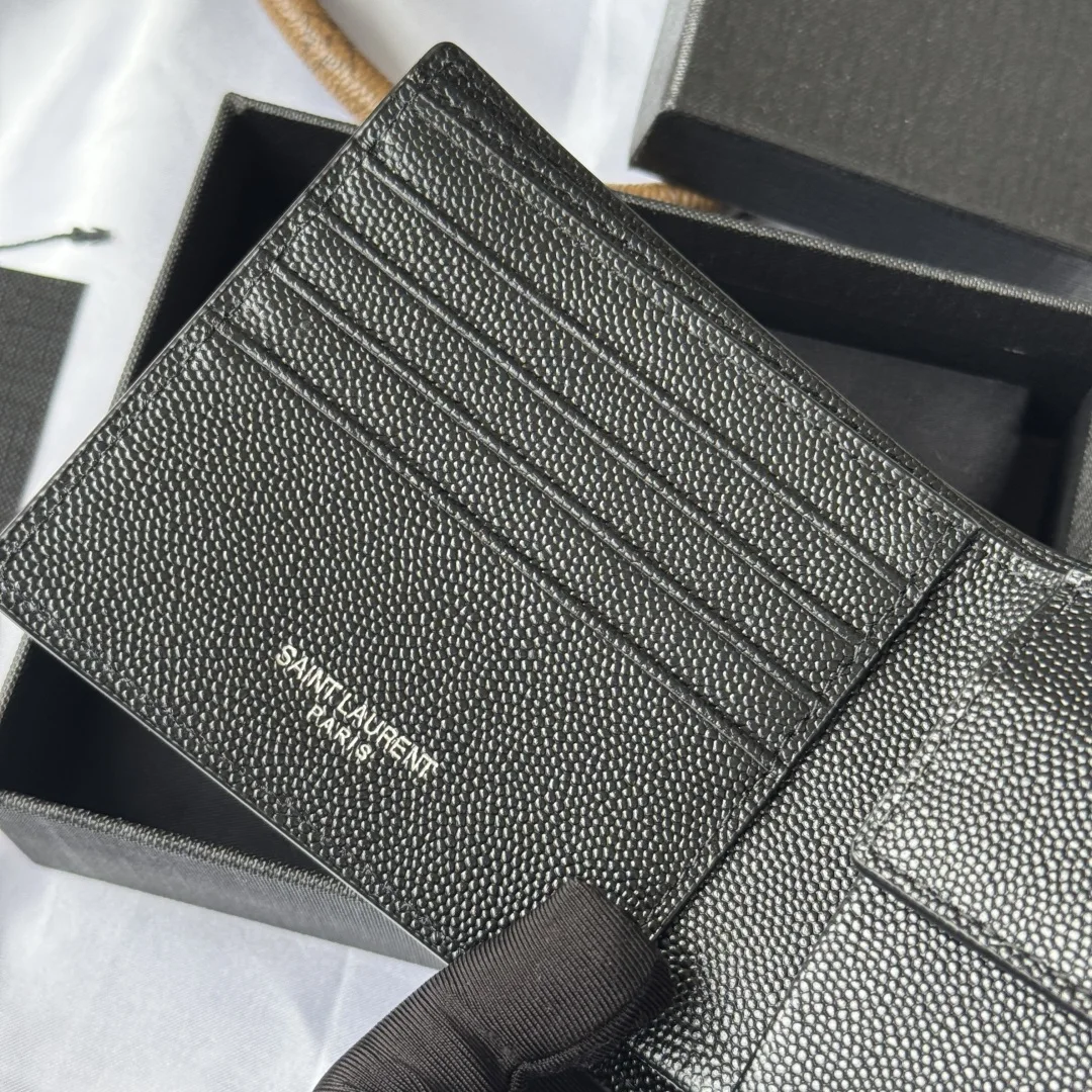 YSL men s wallet with coin pocket, MONOGRAM bi-fold wallet with metal YSL signature. Interior: two bill compartments, eight card slots, and two receipt compartments. Model: 463249. Color: as shown. Dimensions: 11*9.5*2.5cm.