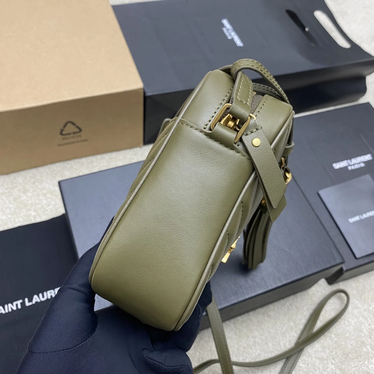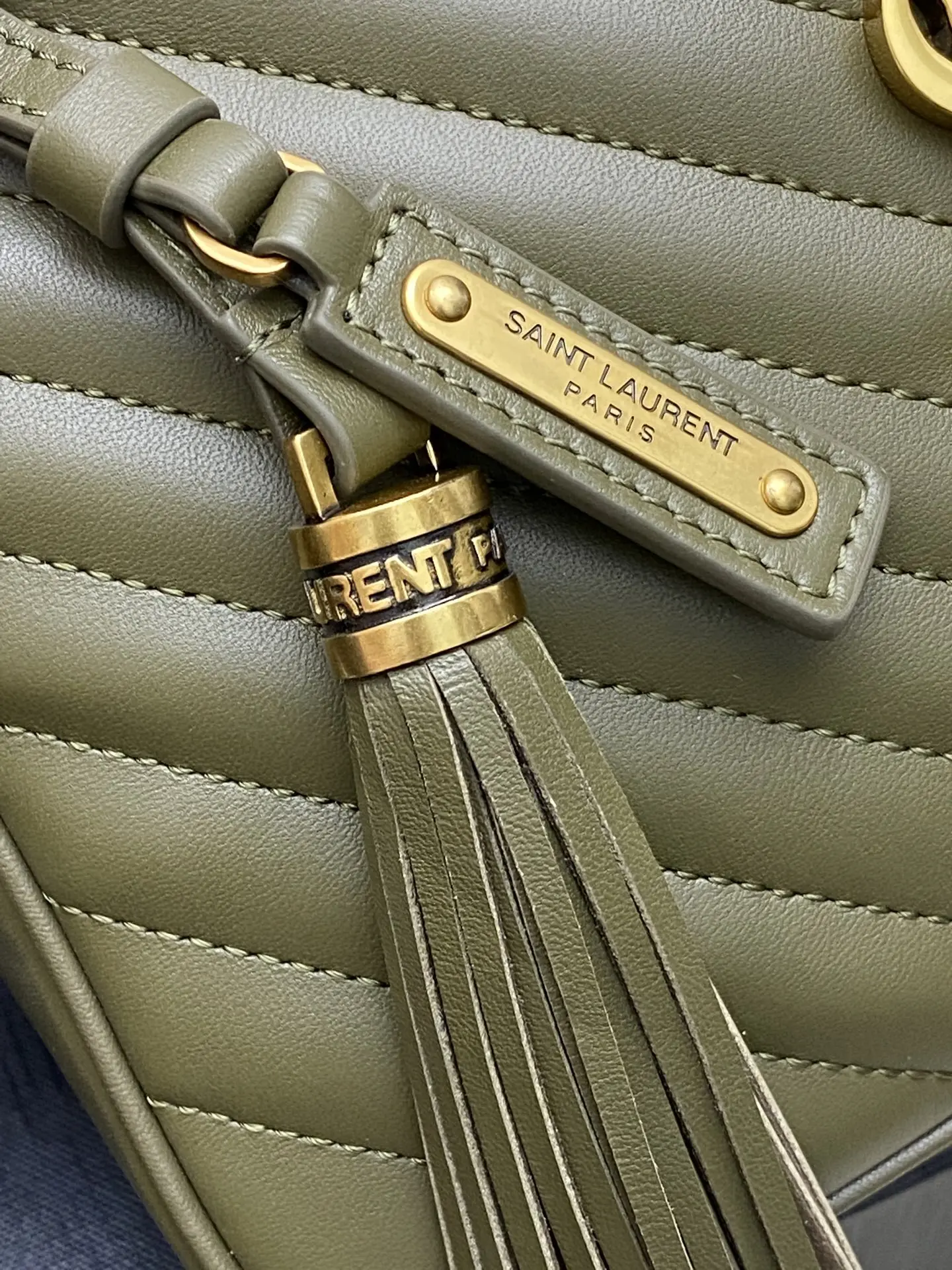 Olive green plain weave Gold new upgraded version Strongly recommend YSL LOU BAG popular camera bag, with an extra small pocket on the back compared to the old version, a super lightweight style, surprisingly large capacity original factory ZP leather delicate and high-end, the leather feels super great minimalist bag body with YSL classic Logo as an embellishment, the shoulder strap can be adjusted, the tassel pendant can be removed, lightweight and versatile!