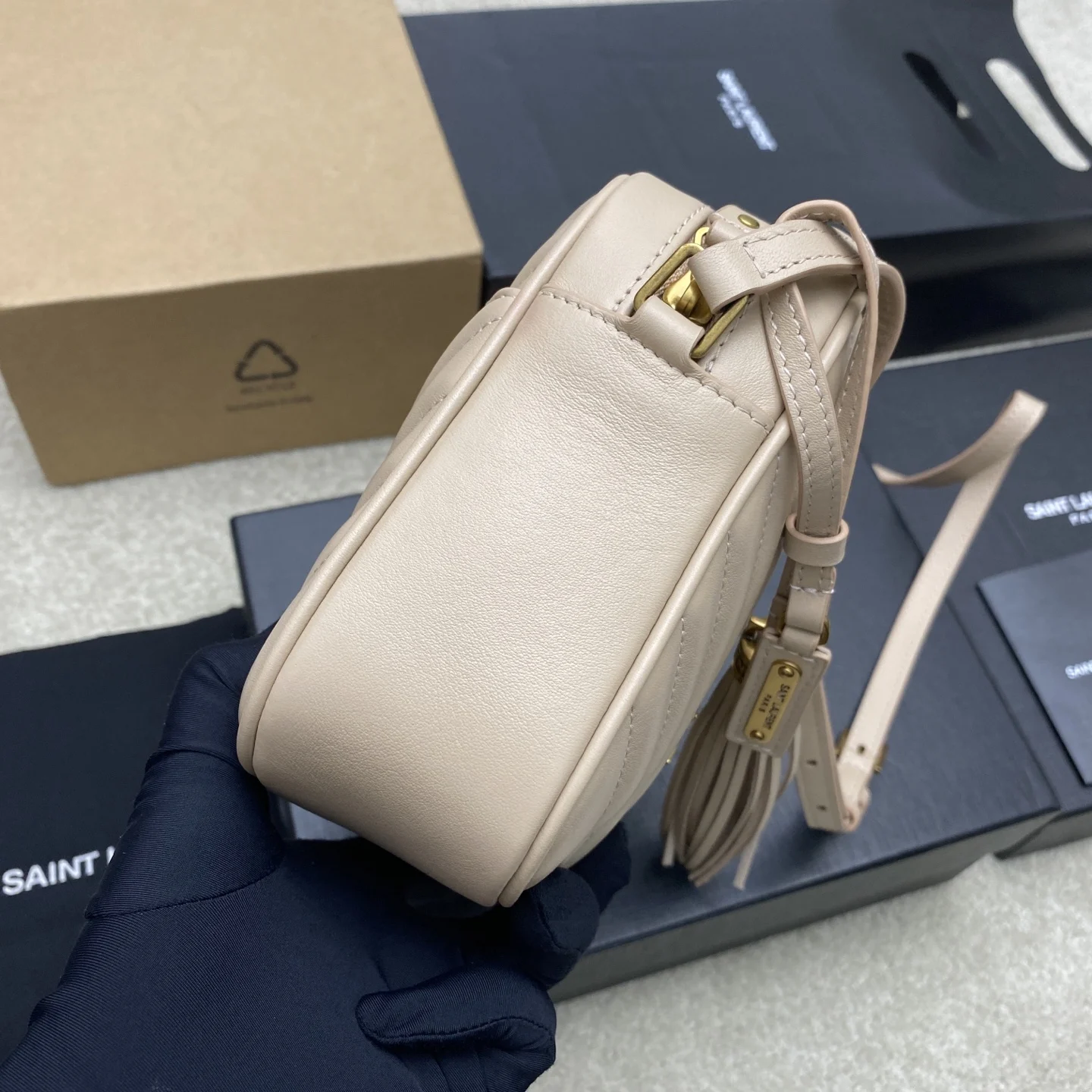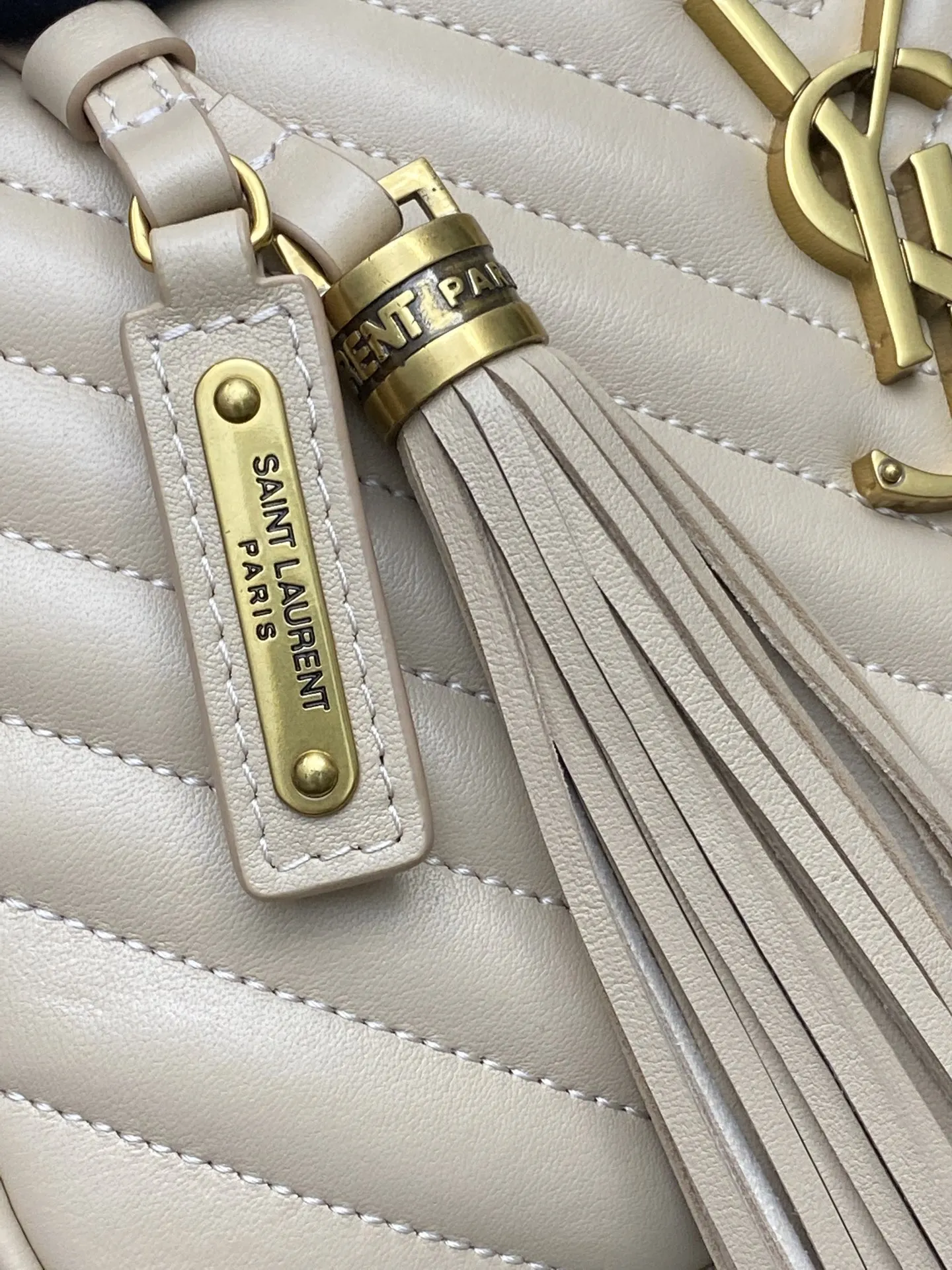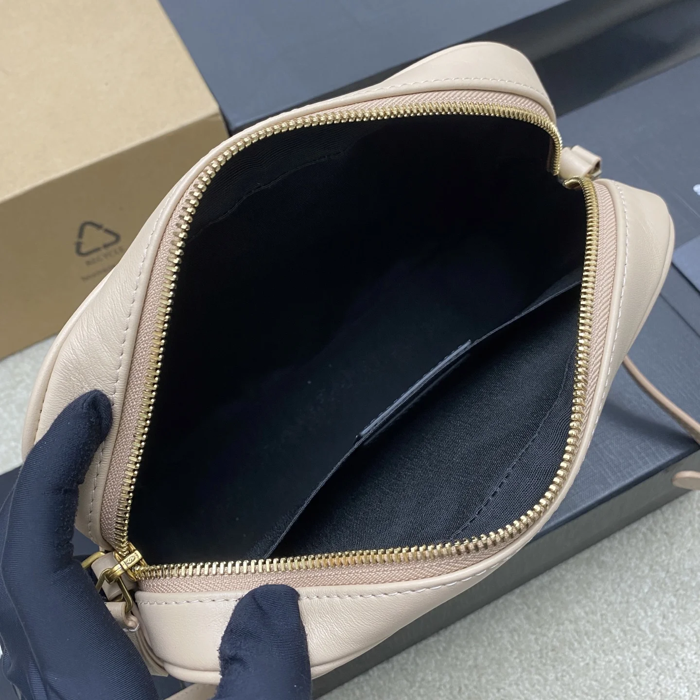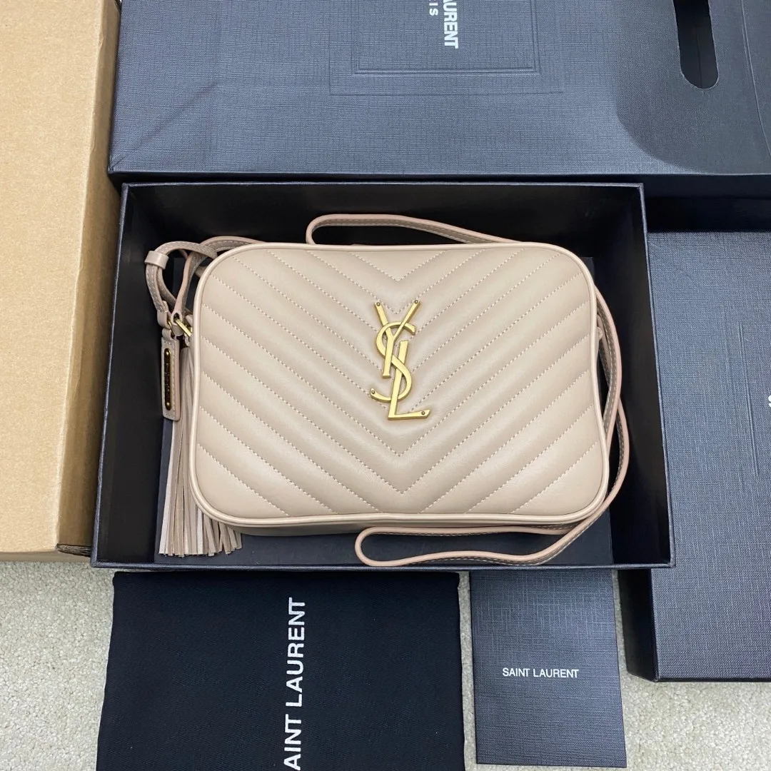 Powder Pink Smooth Leather New Upgrade Version Highly Recommended YSL LOU BAG Popular Camera Bag, with an extra small pocket on the back compared to the old version, a super lightweight style, surprisingly large capacity, original factory ZP leather Delicate and high-end, the leather feels amazing. The simple bag body has the classic YSL Logo as an embellishment, the shoulder strap is adjustable, the tassel pendant can be removed, lightweight and versatile!