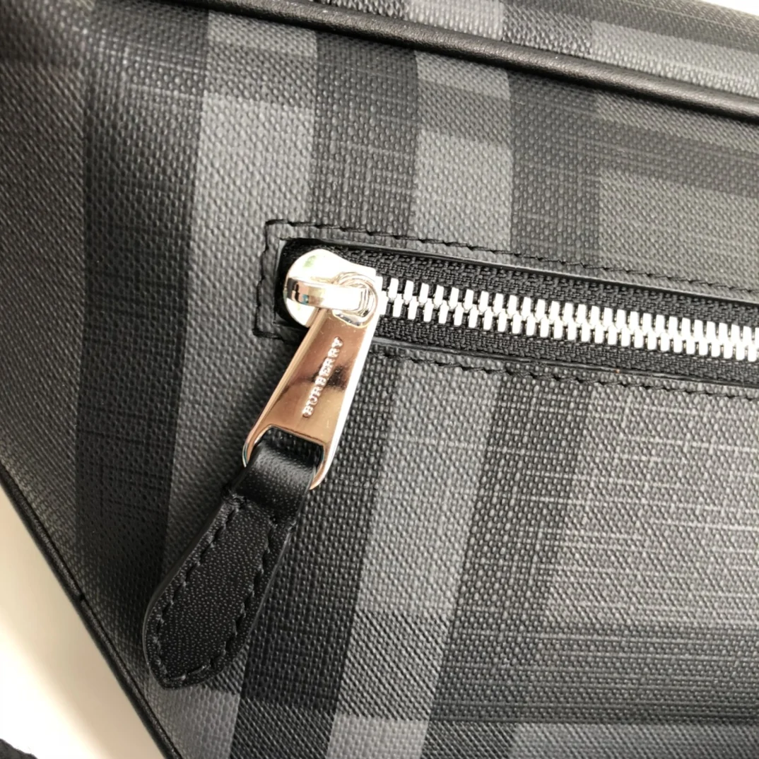 A new belt bag inspired by 1990s street style, featuring London check and smooth leather details. It can be worn crossbody with the strap or around the waist. 31 x 7.5 x 16cm