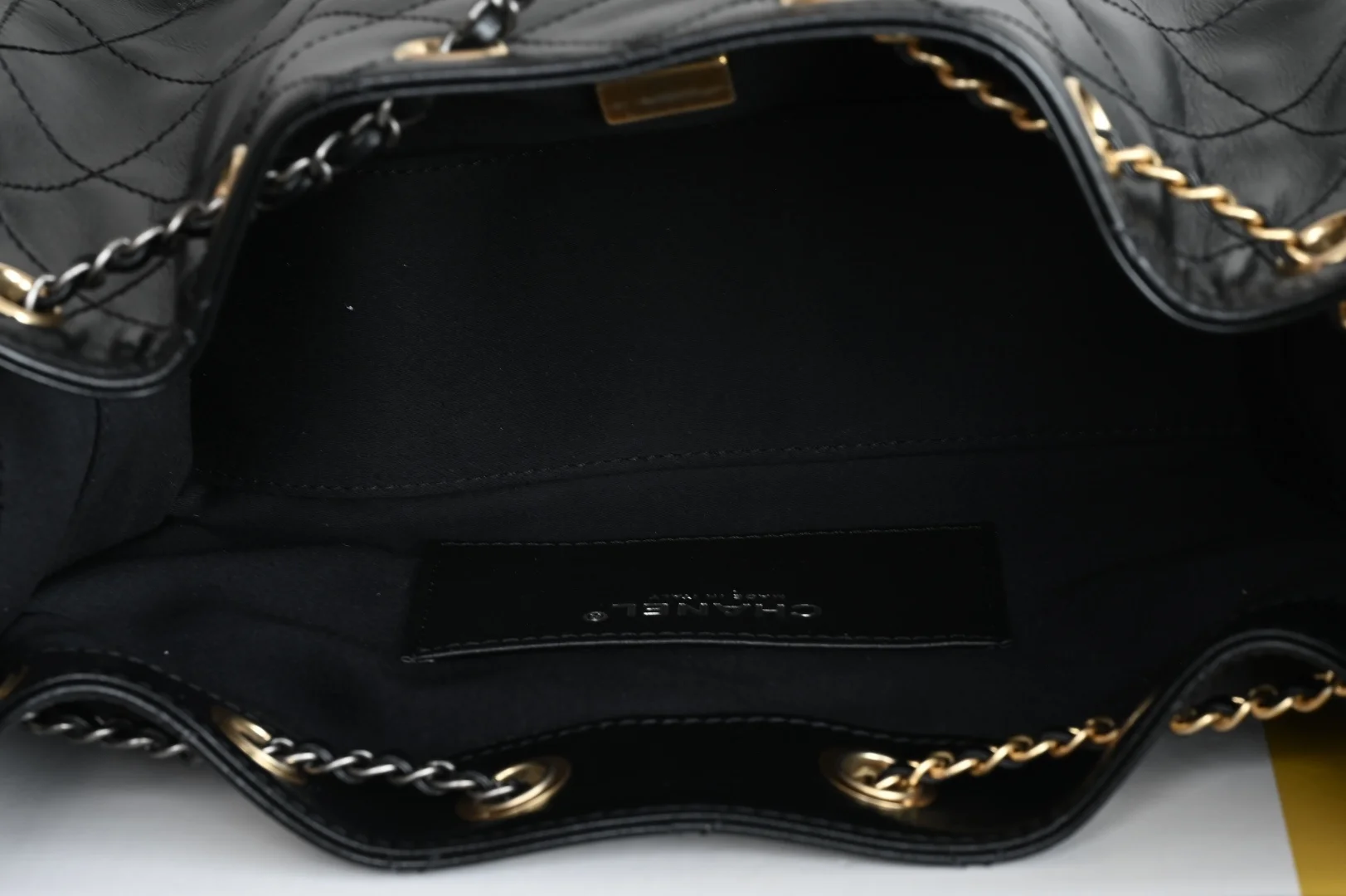 Platinum Edition Authentic Grade. New arrival with packaging as shown in the picture. CHANEL 26C25 Bag, two-tone chain, black mini. Developed based on a purchase from the official store at 49,200 RMB. A popular runway item, the 25 Bag features a unique hippie hobo design with a bold style and extra-large capacity, easily accommodating daily necessities. A great companion for shopping and travel with extremely high value. Hardware: Vintage gold Liao color stitching leather. Leather: Antibes glossy zp calfskin. Size: 20*22*12.5cm. 5631