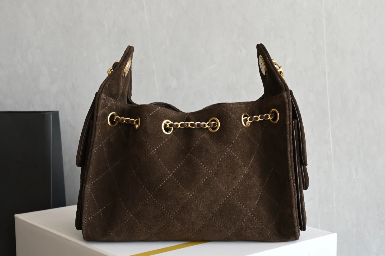 Mini Platinum Edition Authentic Grade. New arrival with packaging as shown in the picture ๐๐ต๐ฎ๐ป๐ฒ๐น ๐ฎ๐ฑBag ๐บ๐ถ๐ป๐ถ ๐ฎ๐ฒ๐ฐ Suede Hippie ๐๐๐ป๐ ๐๐๐๐. Coffee color. Developed from a store purchase of 48,300 ๐ฑ๐ฌ๐ก, a popular runway item. ๐ค๐งBag Hippie ๐๐๐ป๐ features a unique and quite bold design with a super large capacity to easily accommodate daily necessities. A great companion for shopping and traveling with extremely high value. Hardware: Thick plated ๐ค๐ฆ๐ vintage gold. Leather: Suede. Size: ๐ค๐ข*๐ค๐ค*๐ฃ๐ค.๐ง ๐ผ๐ 5631