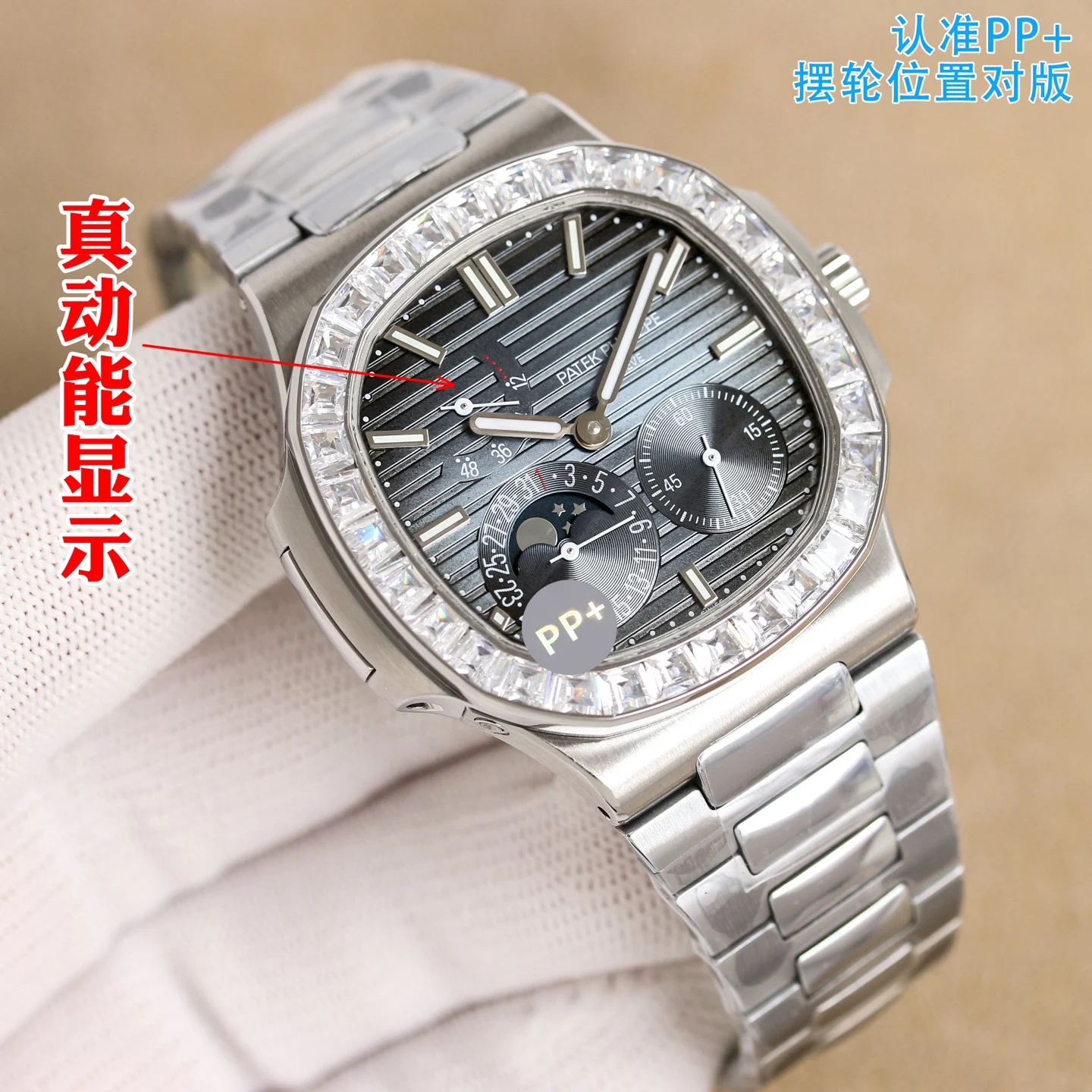 The Patek Philippe Nautilus Elegant Series 5712/5724 multifunctional watch with a unified PP+ factory skin steel glue has been launched! Movement: Equipped with a customized manual..