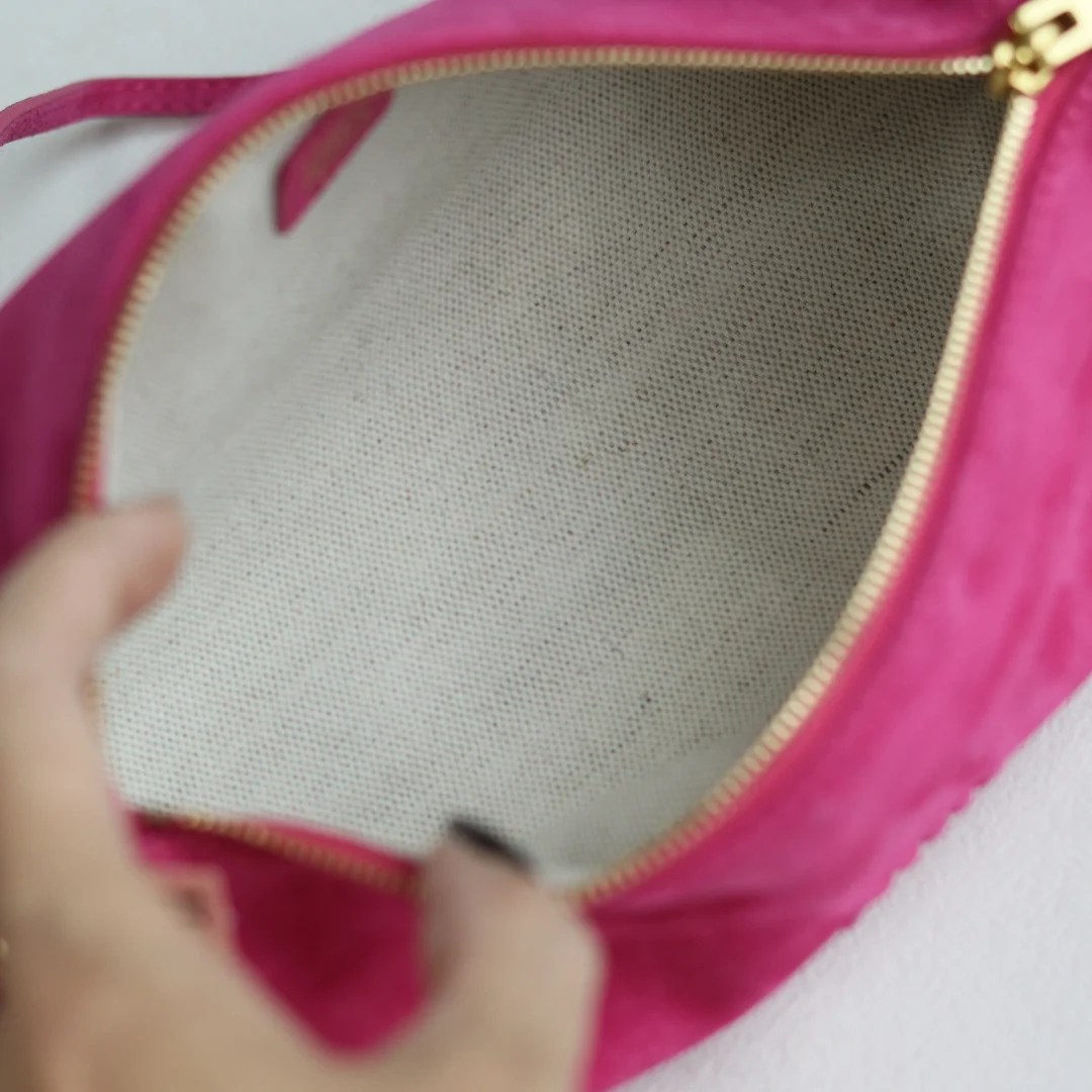 A cute pencil case design! The suede lambskin is soft, delicate, and lustrous for summer, revealing a high-end texture. The whole bag is soft and waxy, with a super healing feel!! Can be carried by hand or under the arm. It can also hold a lot for daily use. The shoulder strap length is adjustable, easy to handle 〰