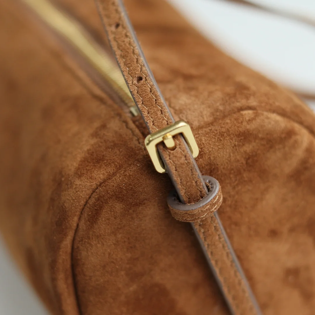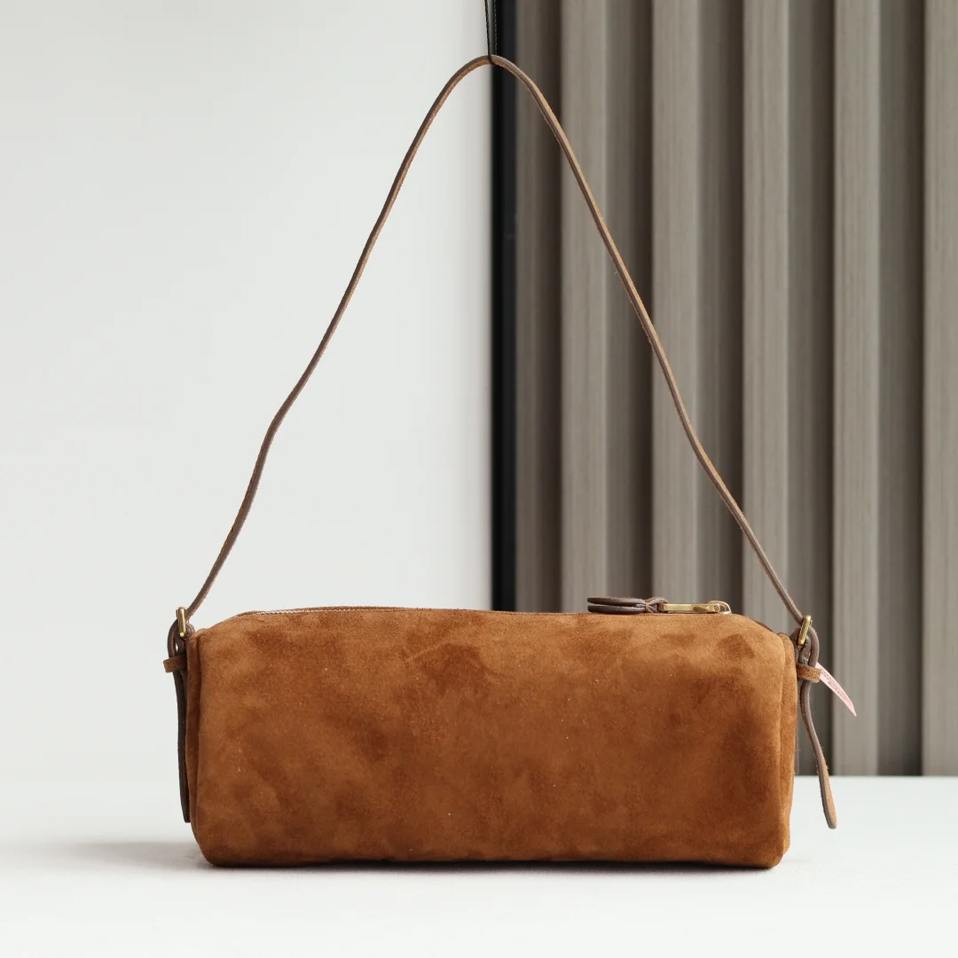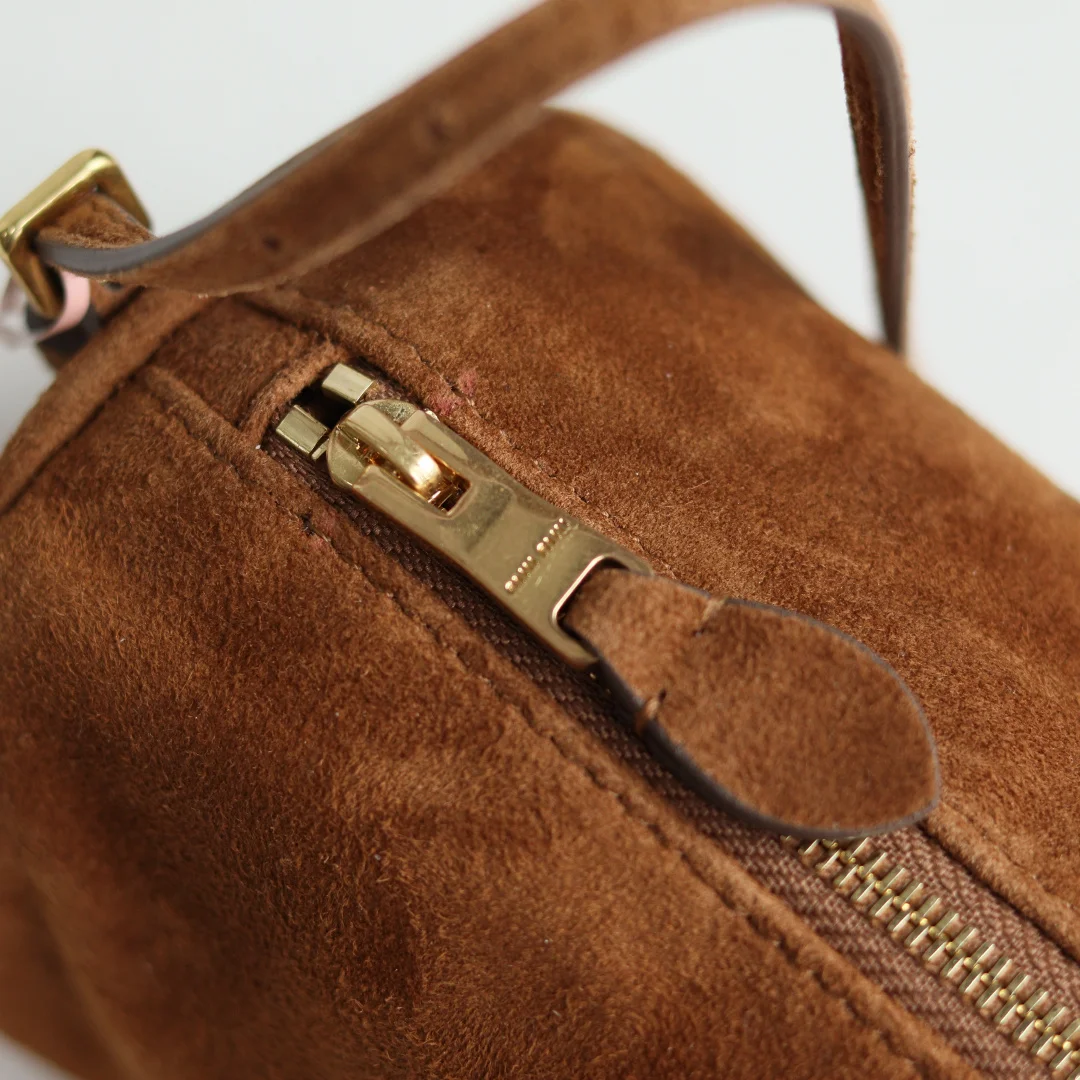 The pencil case design is cute! The summer suede lambskin is soft, delicate, and glossy, exuding a high-end texture. The entire bag has a soft and comforting feel! It can be carried by hand or under the arm, and it can hold quite a bit for daily use. The shoulder strap length is adjustable, making it easy to handle〰