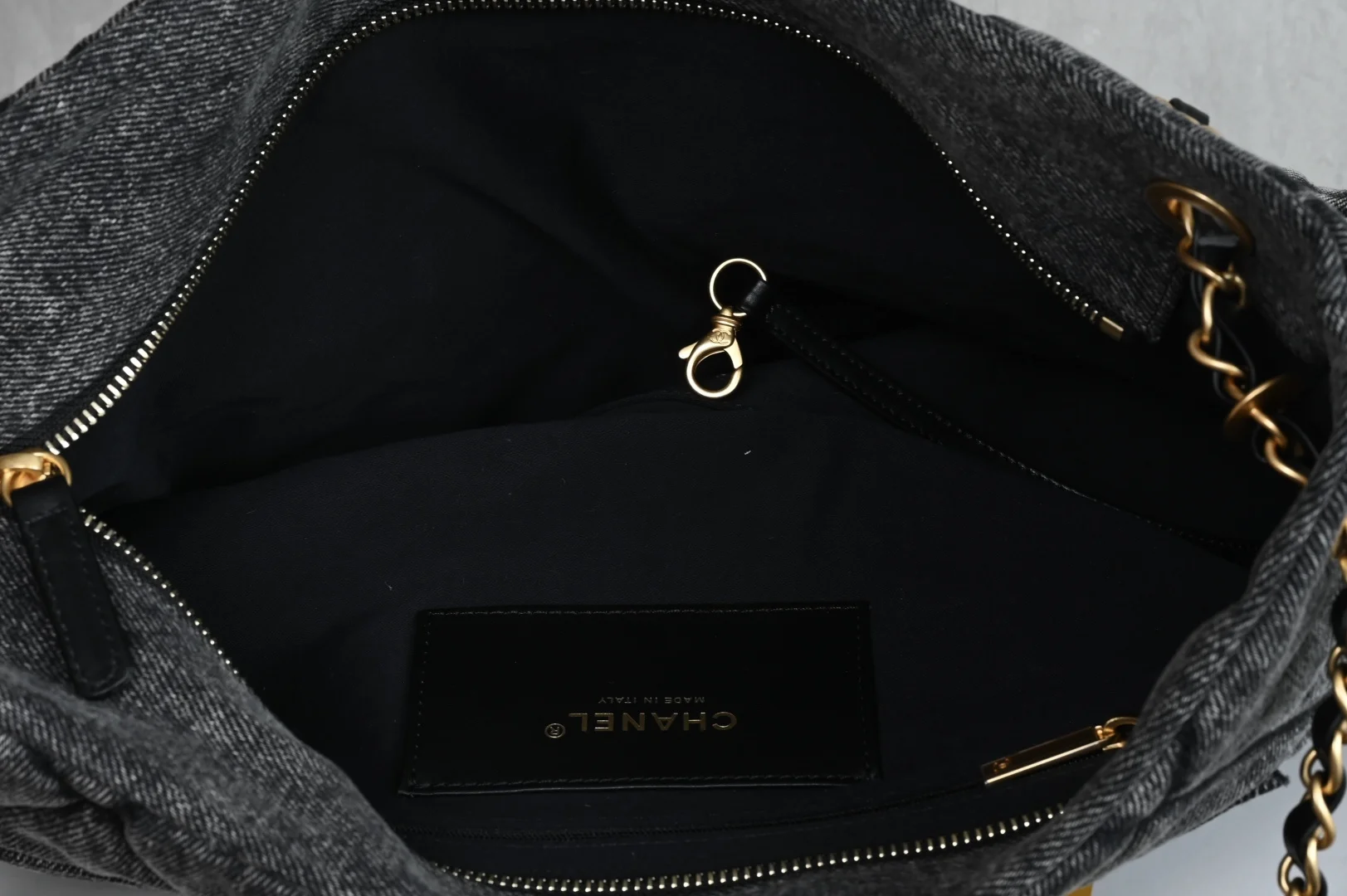 Platinum Edition Authentic Grade. Packaging as pictured, brand new arrival CHANEL 25k hobo double pocket shopping bag. Black denim. Hardware developed based on retail purchase of 58,500 RMB. Hardware: Thick plated 24k vintage gold. Material: Denim. Size: 26*38*11cm. 5740