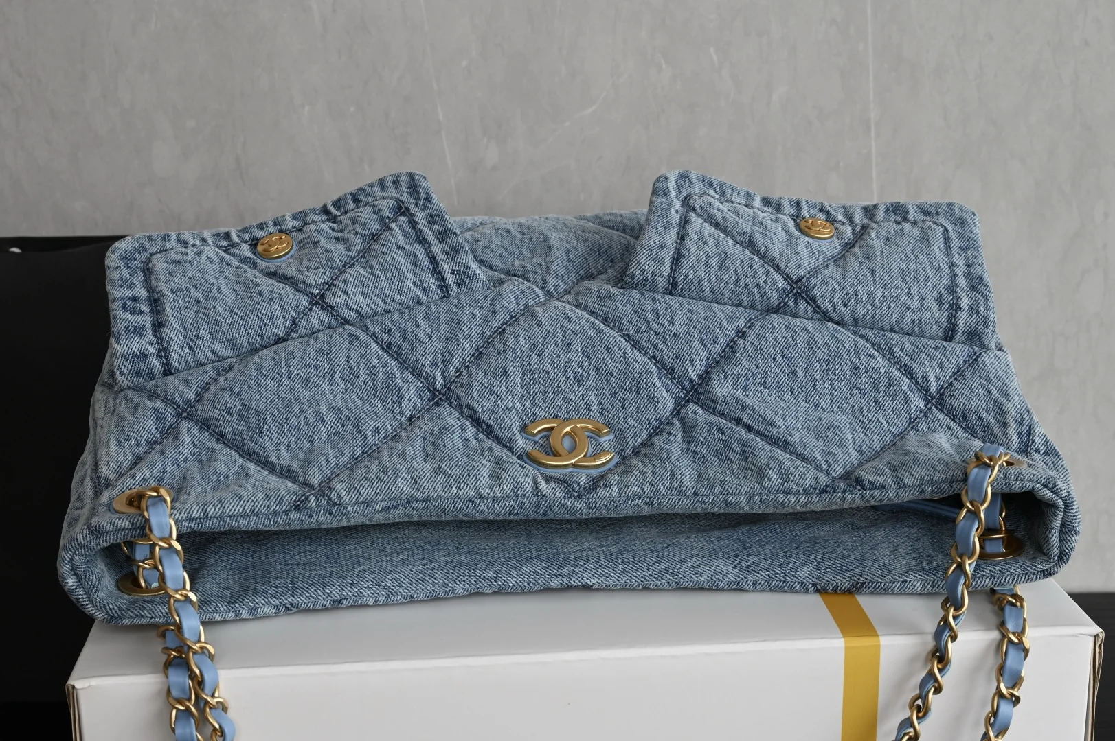 Platinum Edition Authentic Grade. Packaging as pictured, new arrival CHANEL 25k hobo double pocket shopping bag. Blue denim, purchased from the official store for 58,500 RMB ..