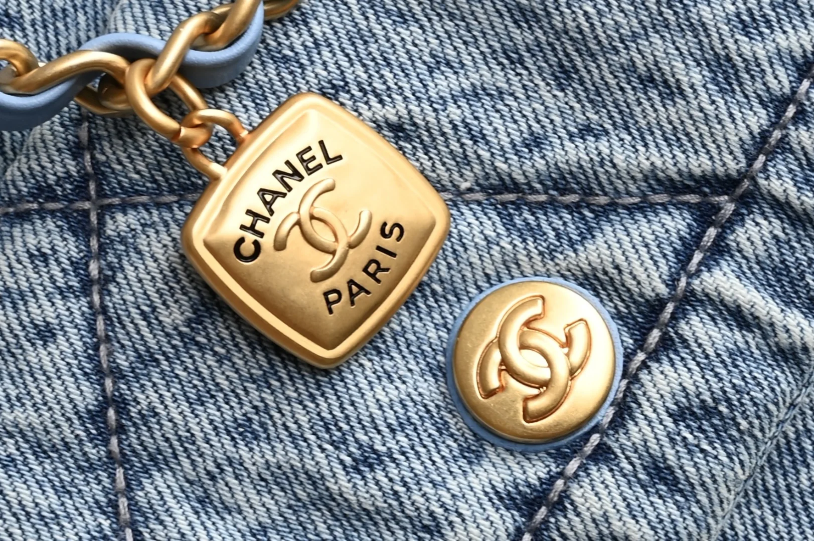 Platinum Edition Authentic Grade. Packaging as pictured, new arrival CHANEL 25k hobo double pocket shopping bag. Blue denim, purchased from the official store for 58,500 RMB for development. Hardware: Thick plated 24k vintage gold. Material: Denim. Size: 26*38*11cm. 5740