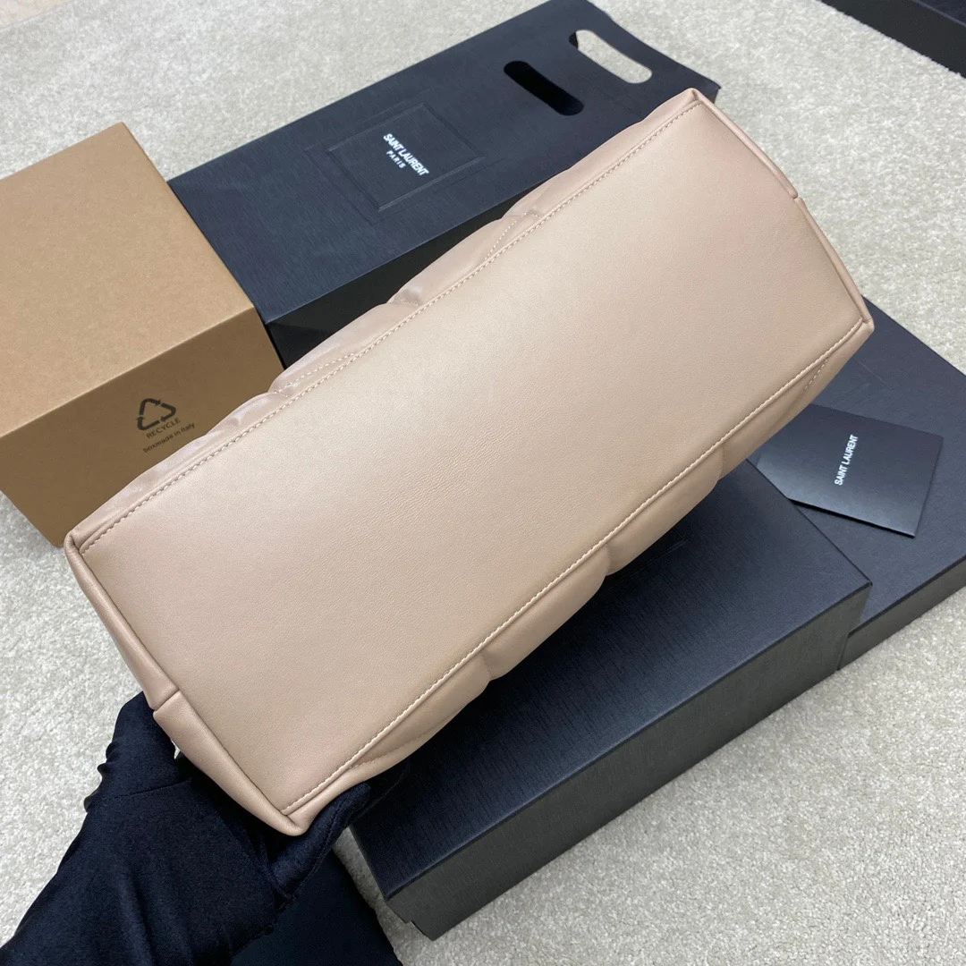 Nappa Lambskin/Gold 𝑳𝑶𝑼𝑳𝑶𝑼 𝑷𝑼𝑭𝑭𝑬𝑹 Large Quilted Lambskin Bag, crafted with genuine original leather, offering a soft and delicate touch, like embracing a cloud. The classic YSL logo, chain, and eyelet hardware all feature matte silver hardware. The bag opening is secured with a magnetic snap closure after folding, ensuring excellent sealing and security.
