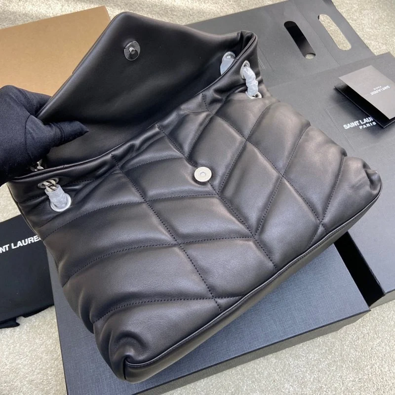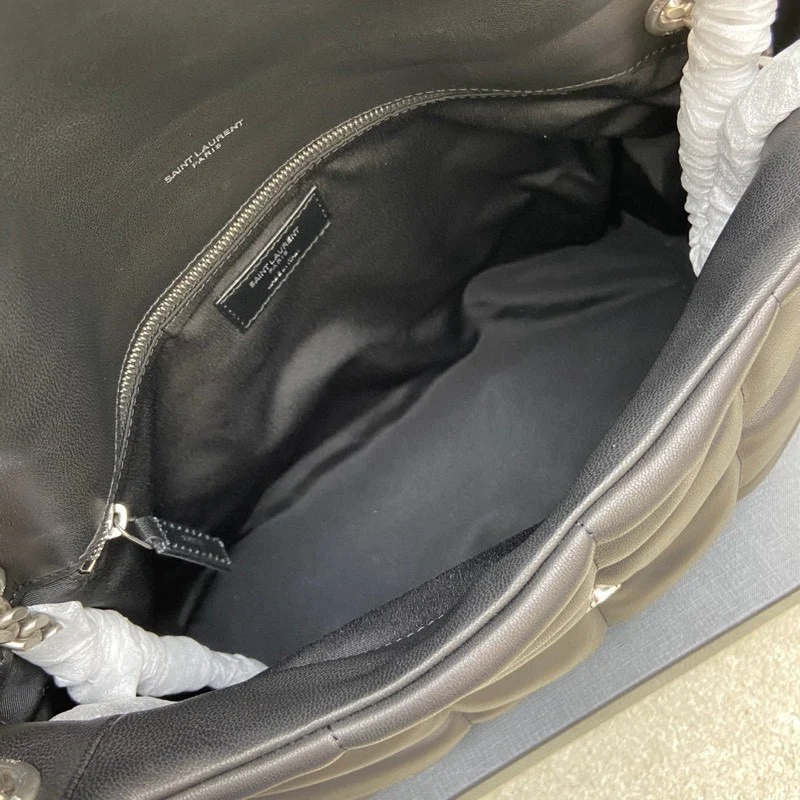 Lambskin/Silver 𝑳𝑶𝑼𝑳𝑶𝑼 𝑷𝑼𝑭𝑭𝑬𝑹 Large Quilted Lambskin Bag, made with original factory genuine leather, feels soft and delicate, like holding a cloud. The classic YSL logo, chain, and buckle hardware all use platinum matte silver hardware. The bag opening is folded and sealed with a magnetic snap fastener, providing excellent sealing and security.
