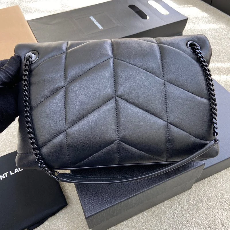 Lambskin Black/Gun 𝑳𝒐𝒖𝒍𝒐𝒖 𝒑𝒖𝒇𝒇𝒆𝒓 Medium 29CM Quilted Lambskin Bag, made of original genuine leather, feels soft and delicate, like holding a cloud ; the classic YSL logo, chain and buckle hardware are all made of platinum matte silver hardware. The bag opening is folded and sealed with a magnetic snap fastener, providing excellent airtightness and security. There is an internal zipper pocket inside the bag for mobile phones and valuables, and no other internal pocket design, making it easy to use as you like! Genuine leather! Genuine leather! Genuine leather!