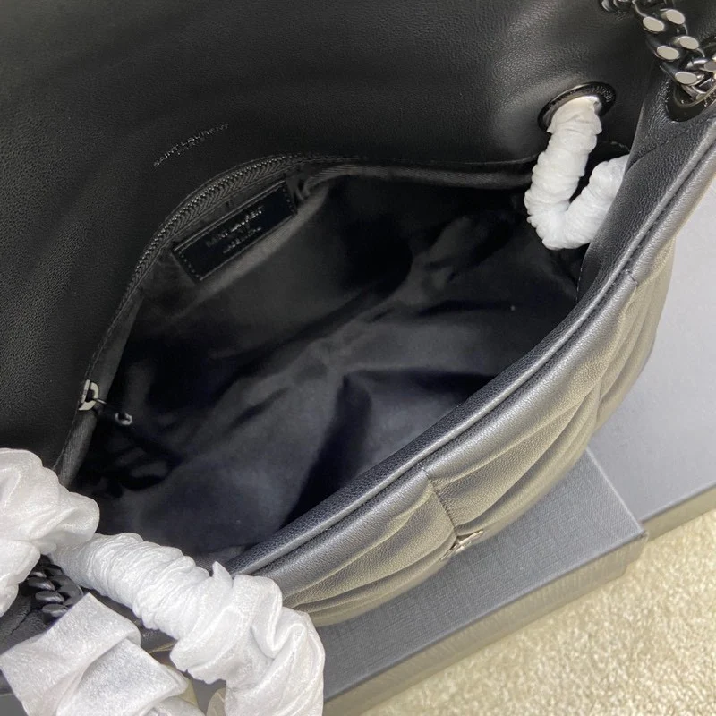 Lambskin Black/Gun 𝑳𝒐𝒖𝒍𝒐𝒖 𝒑𝒖𝒇𝒇𝒆𝒓 Medium 29CM Quilted Lambskin Bag, made of original genuine leather, feels soft and delicate, like holding a cloud ; the classic YSL logo, cha..