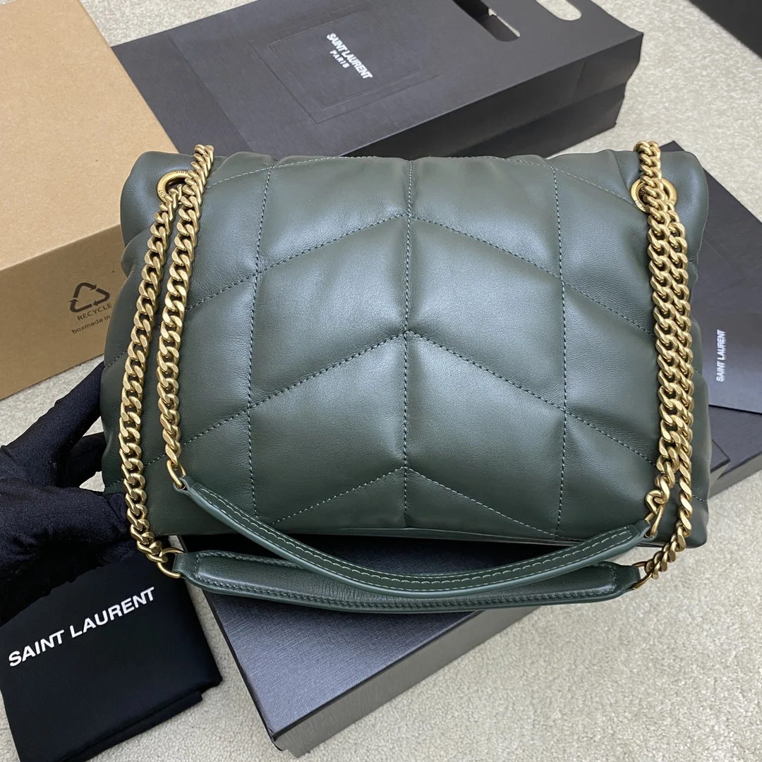 Lambskin Dark Green/Gold 𝑳𝒐𝒖𝒍𝒐𝒖 𝒑𝒖𝒇𝒇𝒆𝒓 Medium 29CM Quilted Lambskin Bag, made of original genuine leather, feels soft and delicate, like holding a cloud ; the classic YSL ..
