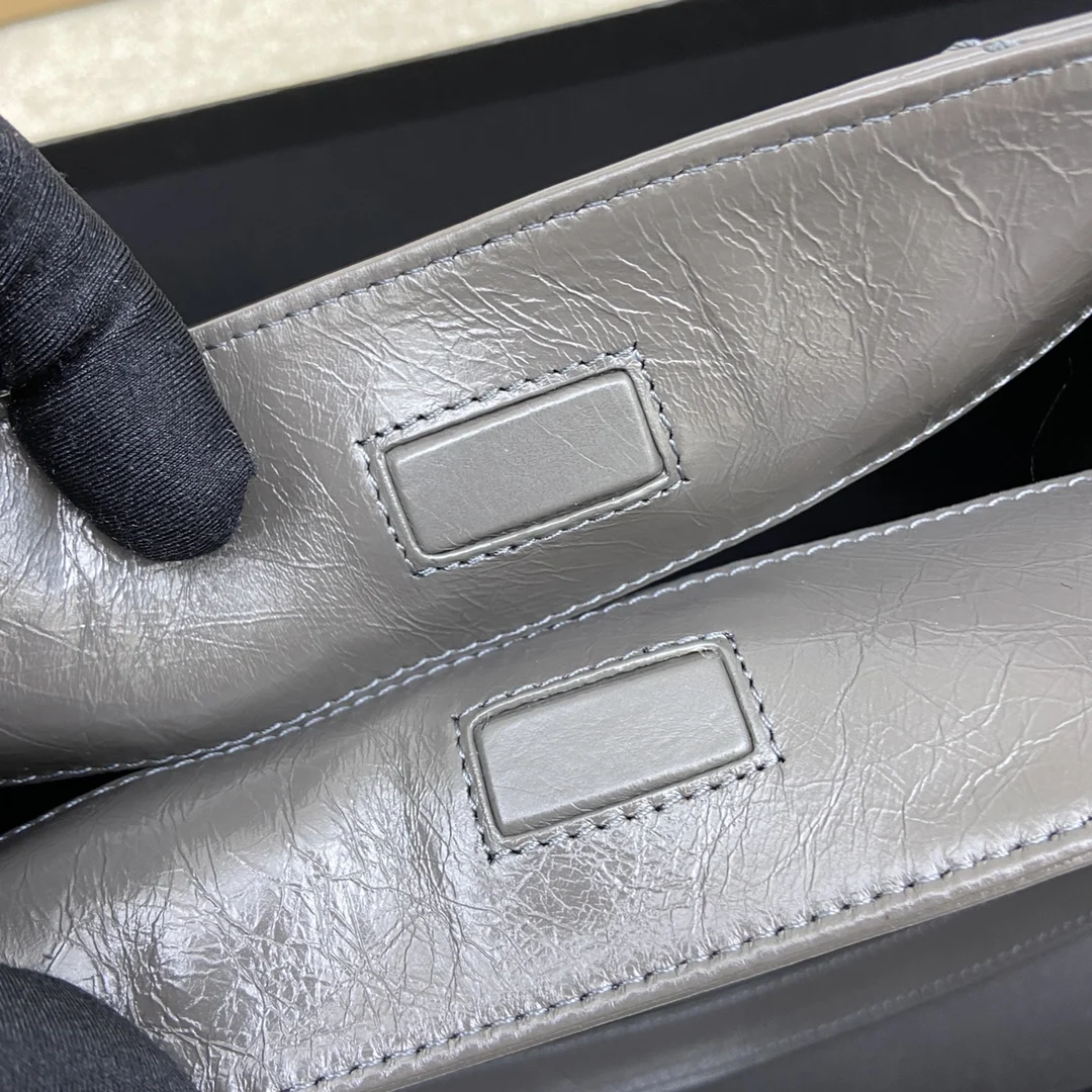 Oiled wax dark grey, original silver hardware leather, exclusively for high-end boutiques.