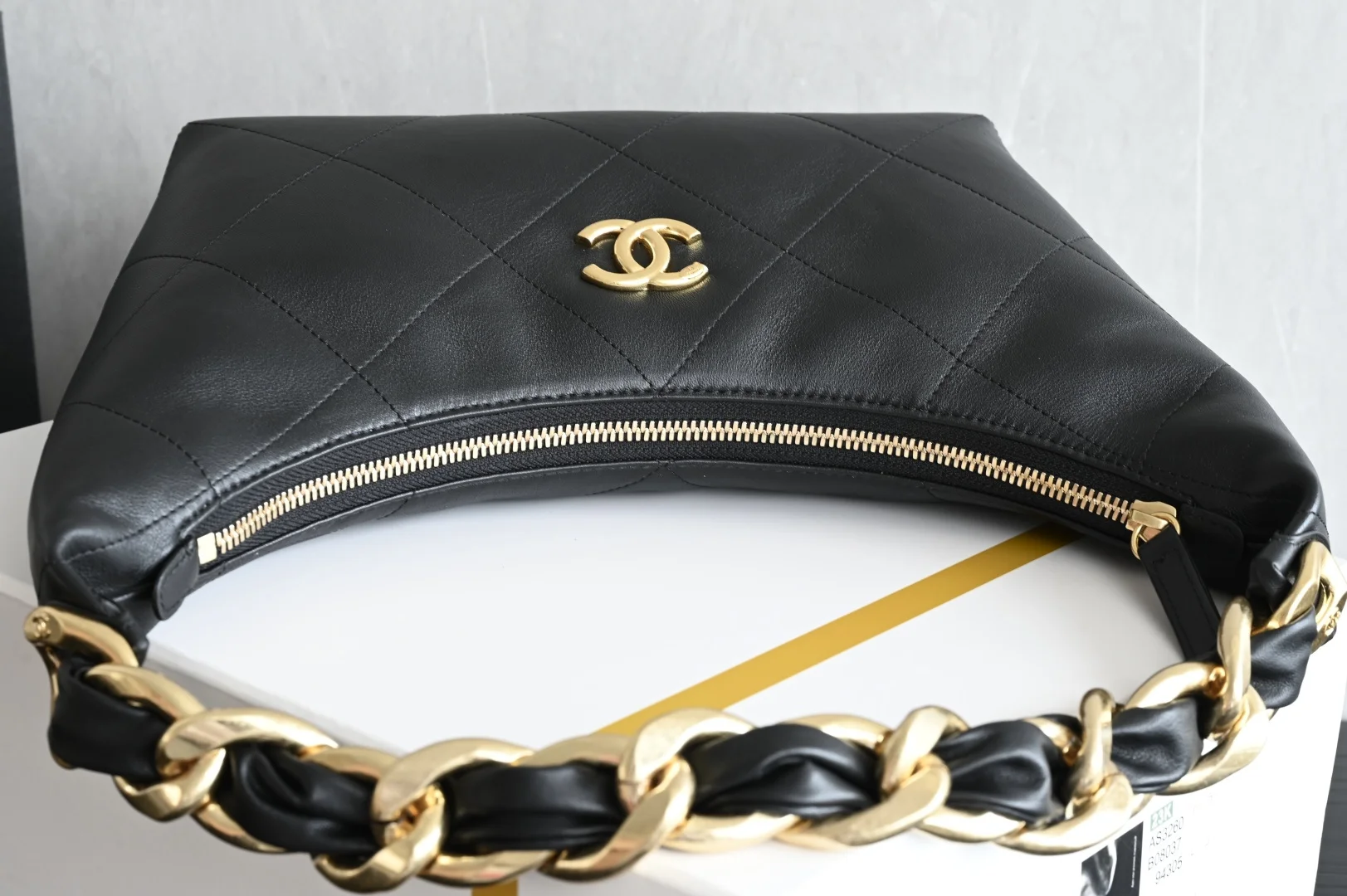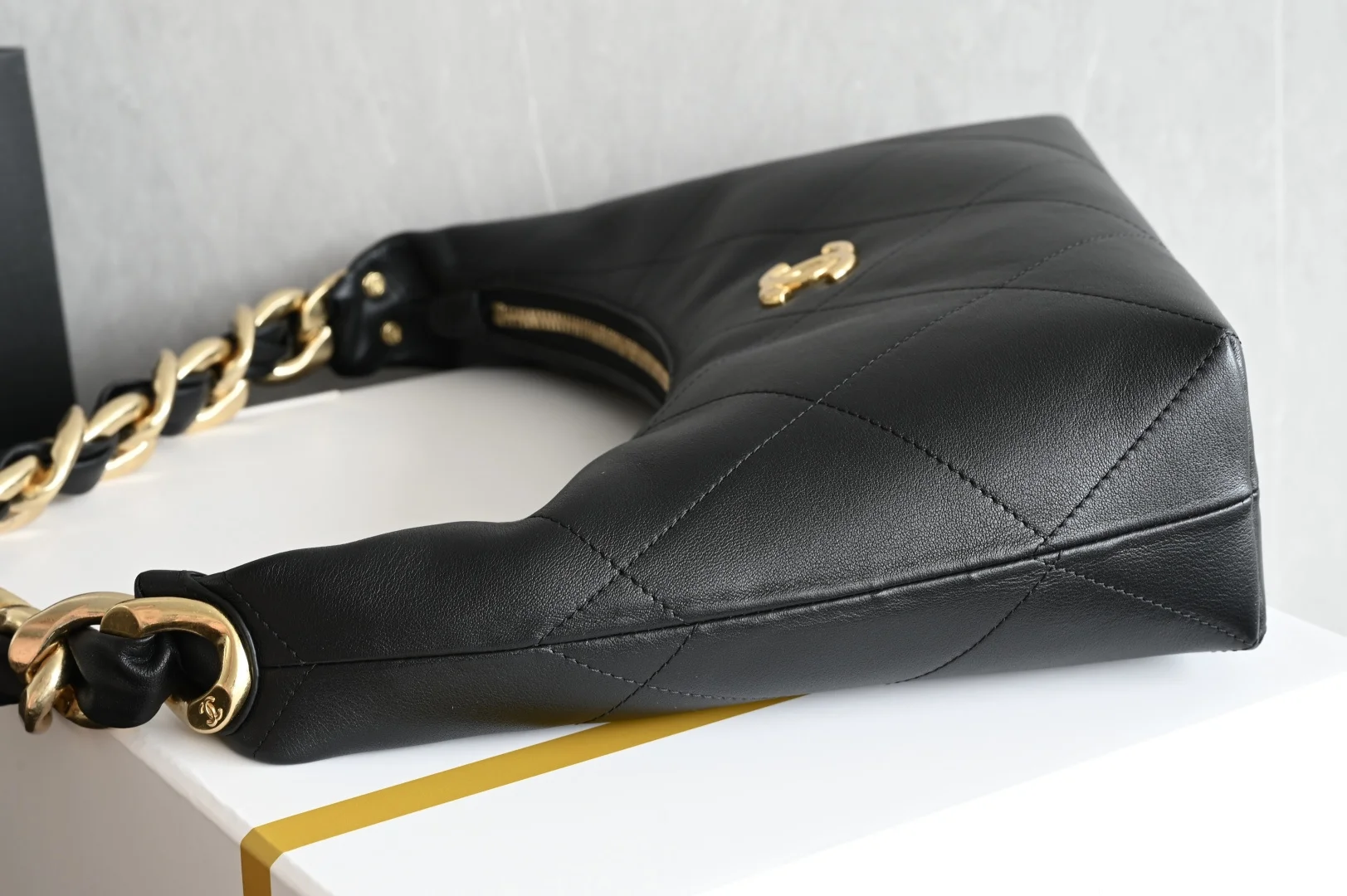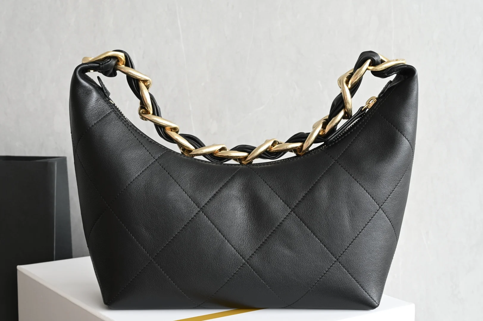 Platinum Edition Authentic Grade packaging as pictured, brand new arrival Chanel 25k large gold chain underarm hobo black, purchased from the official store for 42800 RMB for ..