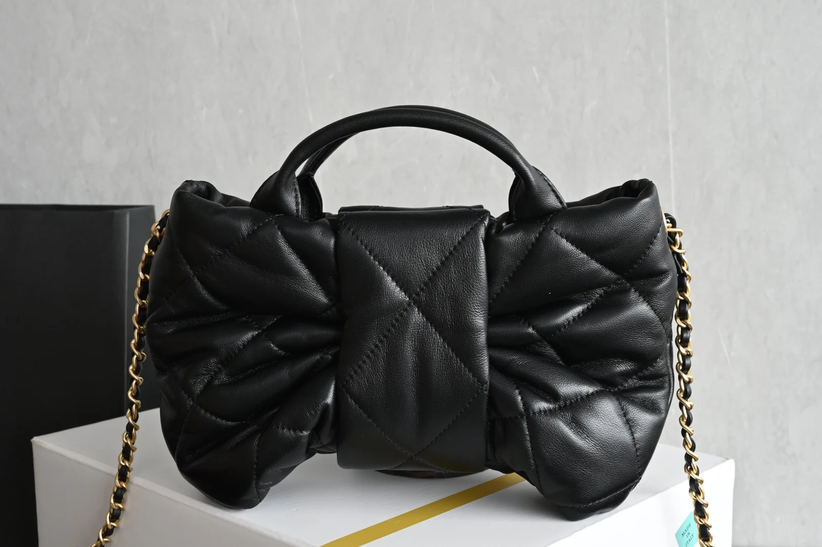 Platinum Edition Authentic Grade. New arrival with packaging as pictured. CHANEL 25k Bow Bag, Black Small Size. Developed based on a purchase from the official store at 43,20..