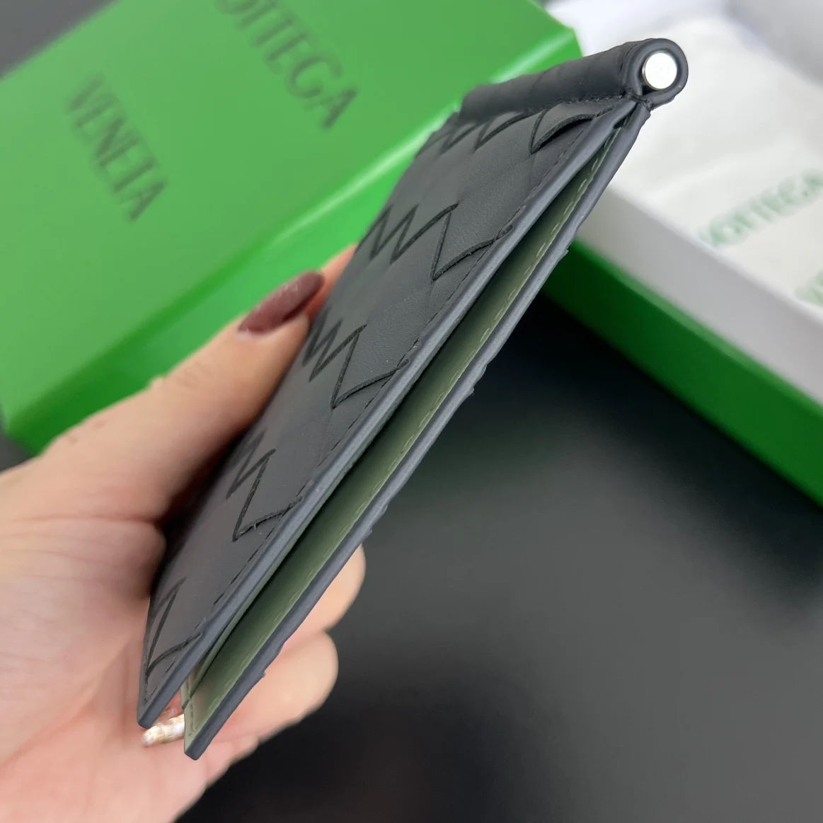 The new B-brand money clip 592626 is not only for holding US dollars, but also for cards, driver s licenses, bank cards, and cash, easily accommodating all your daily essentials and peace of mind [OK]. Made of woven calfskin, it is soft, delicate, durable and wear-resistant. The woven money clip is truly beautiful and practical, a timeless classic. Dimensions: 11.5x9x0.5