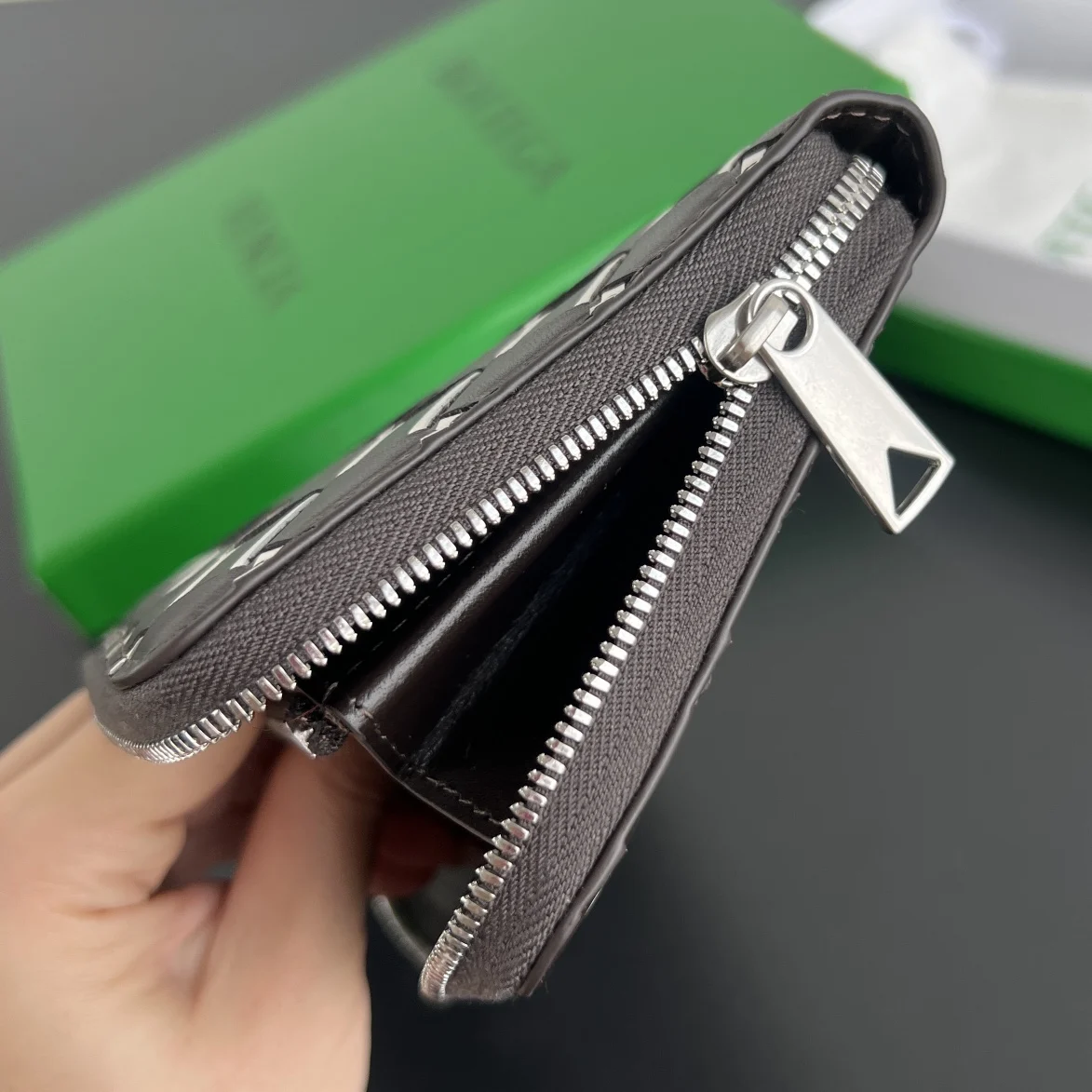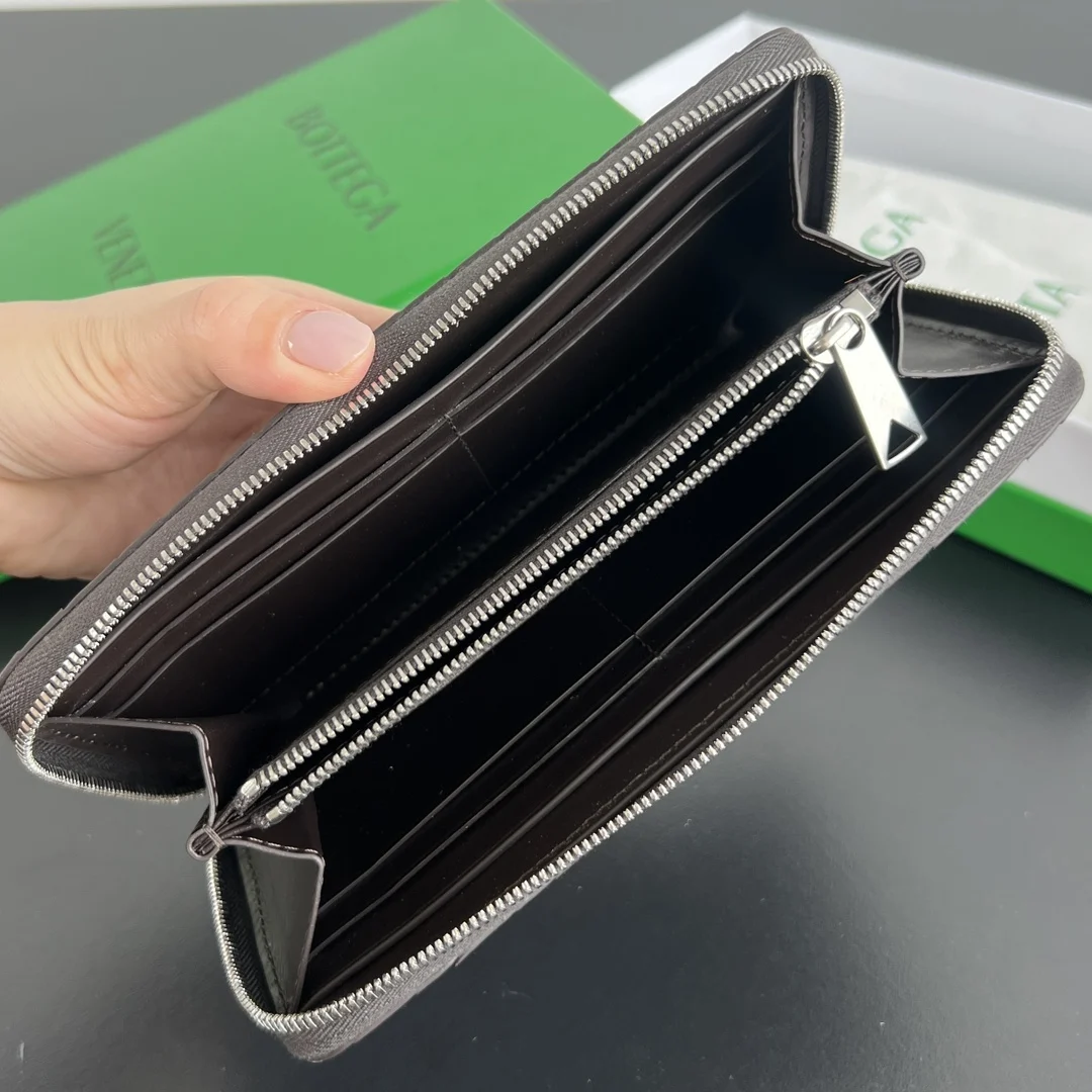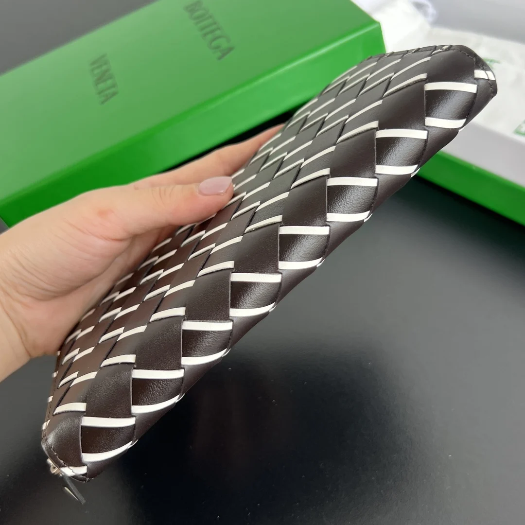 Bv men s woven wallet 593217, crafted from woven cowhide in three different colors, is soft, comfortable, and textured. The meticulous internal compartment design and high-quality ..