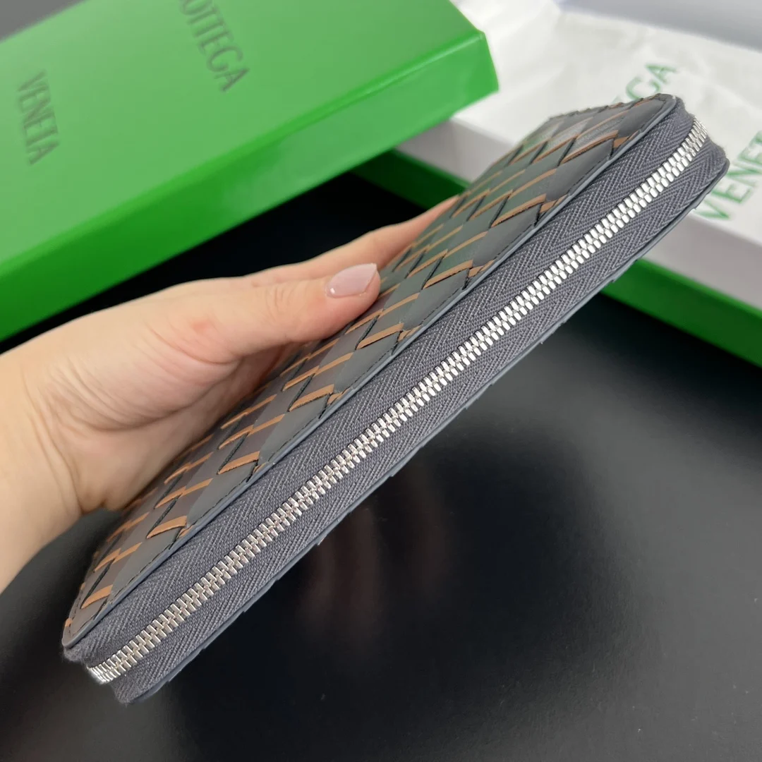 Bv men s woven wallet 593217, crafted from woven calfskin in three different colors, soft and comfortable with a textured feel. Features a meticulously designed interior with high-quality lining materials, ensuring durability and organization. Ample space for cash, cards, and other small items, making it highly practical. This wallet is the perfect choice for carrying essentials. Dimensions: 19x10x2.