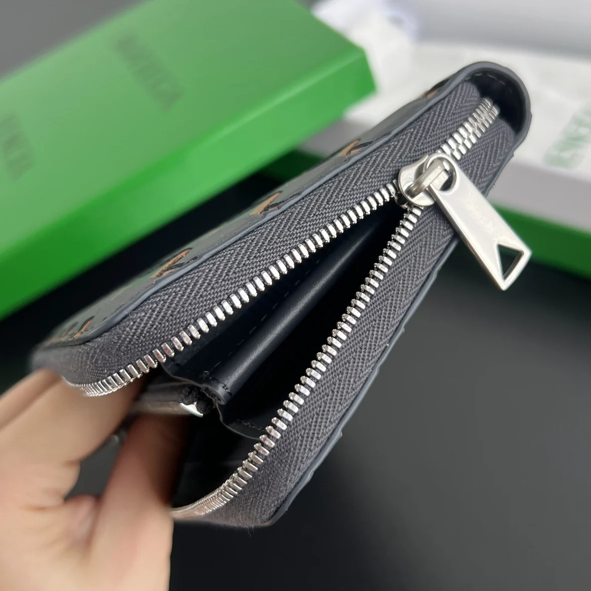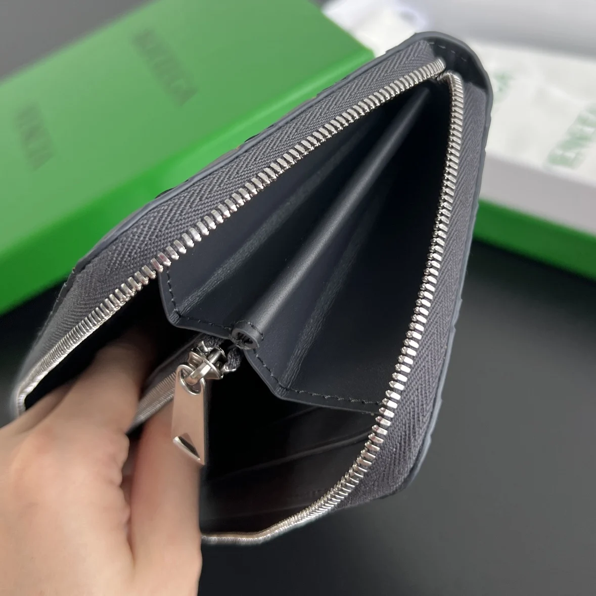 Bv men s woven wallet 593217, crafted from woven calfskin in three different colors, soft and comfortable with a textured feel. Features a meticulously designed interior with high-..