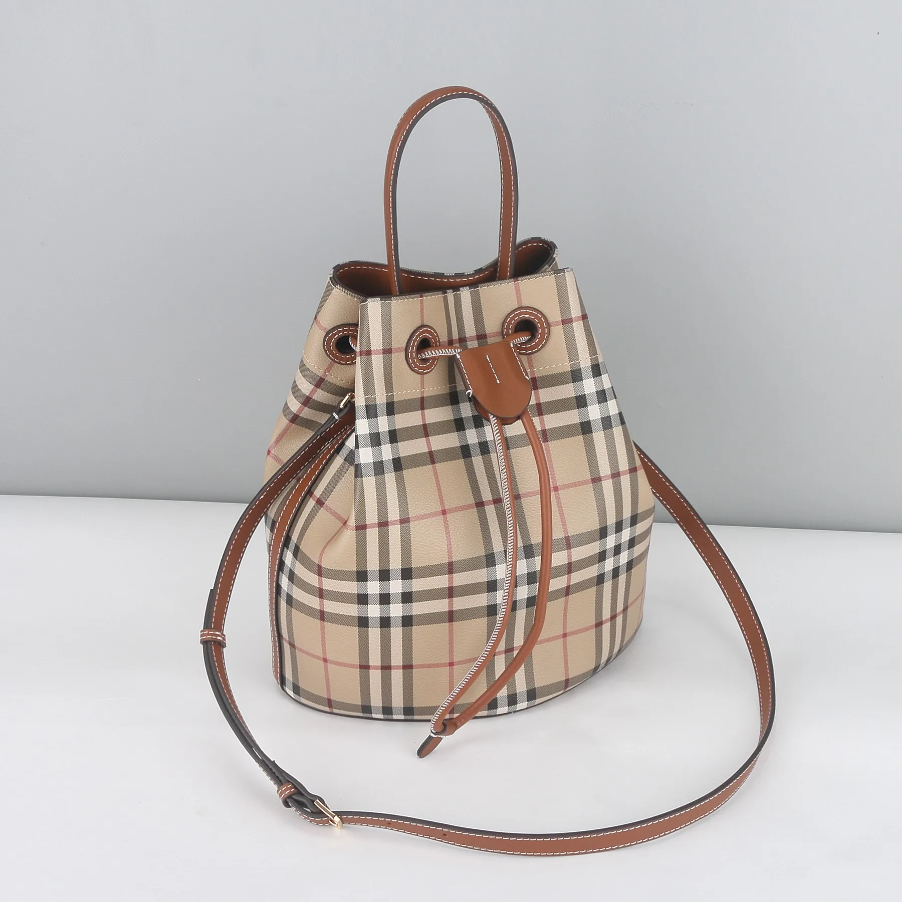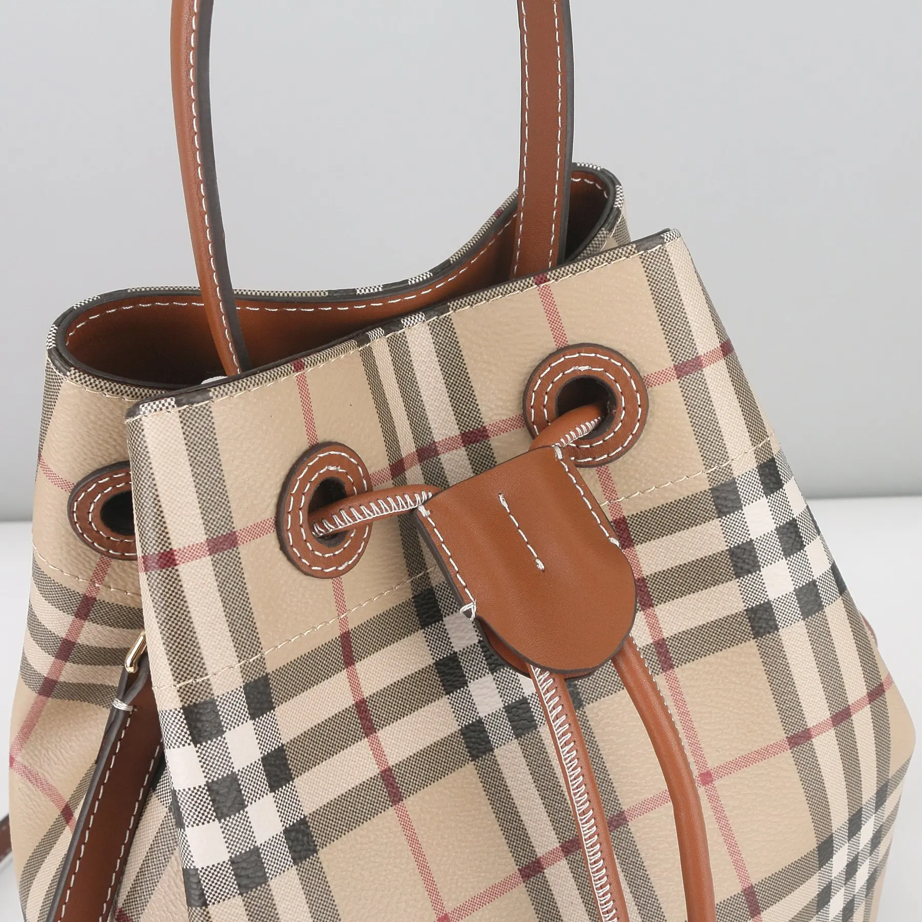 Burberry 59611 Checkered Brown Bucket Bag Women s Tote Crossbody Bag