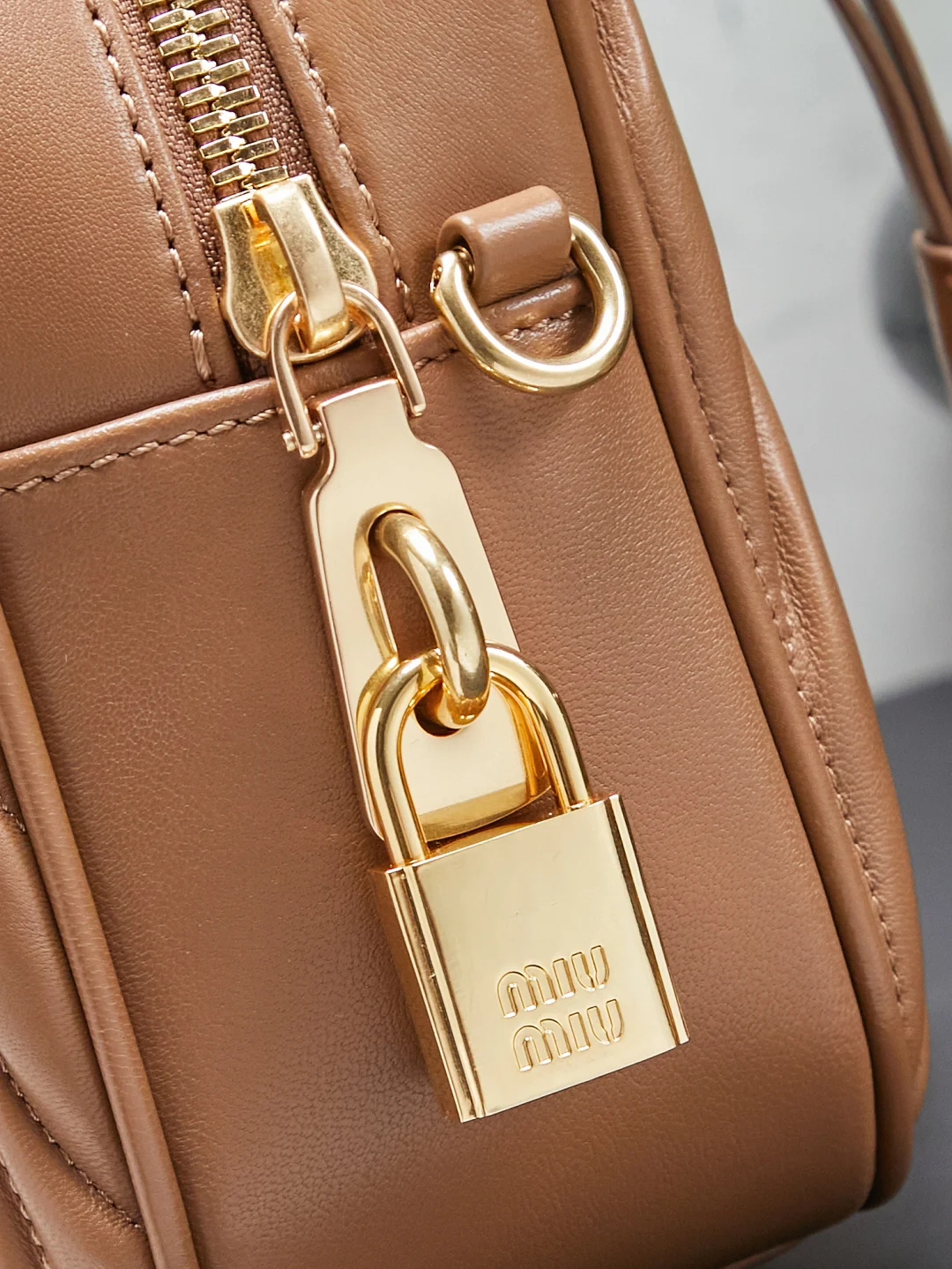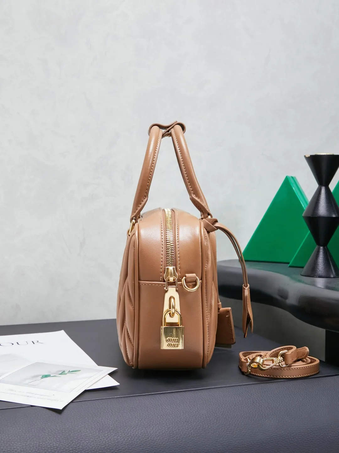 MIU MIU 5BB124 Large Caramel Bowling Bag Crossbody
