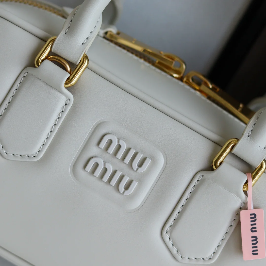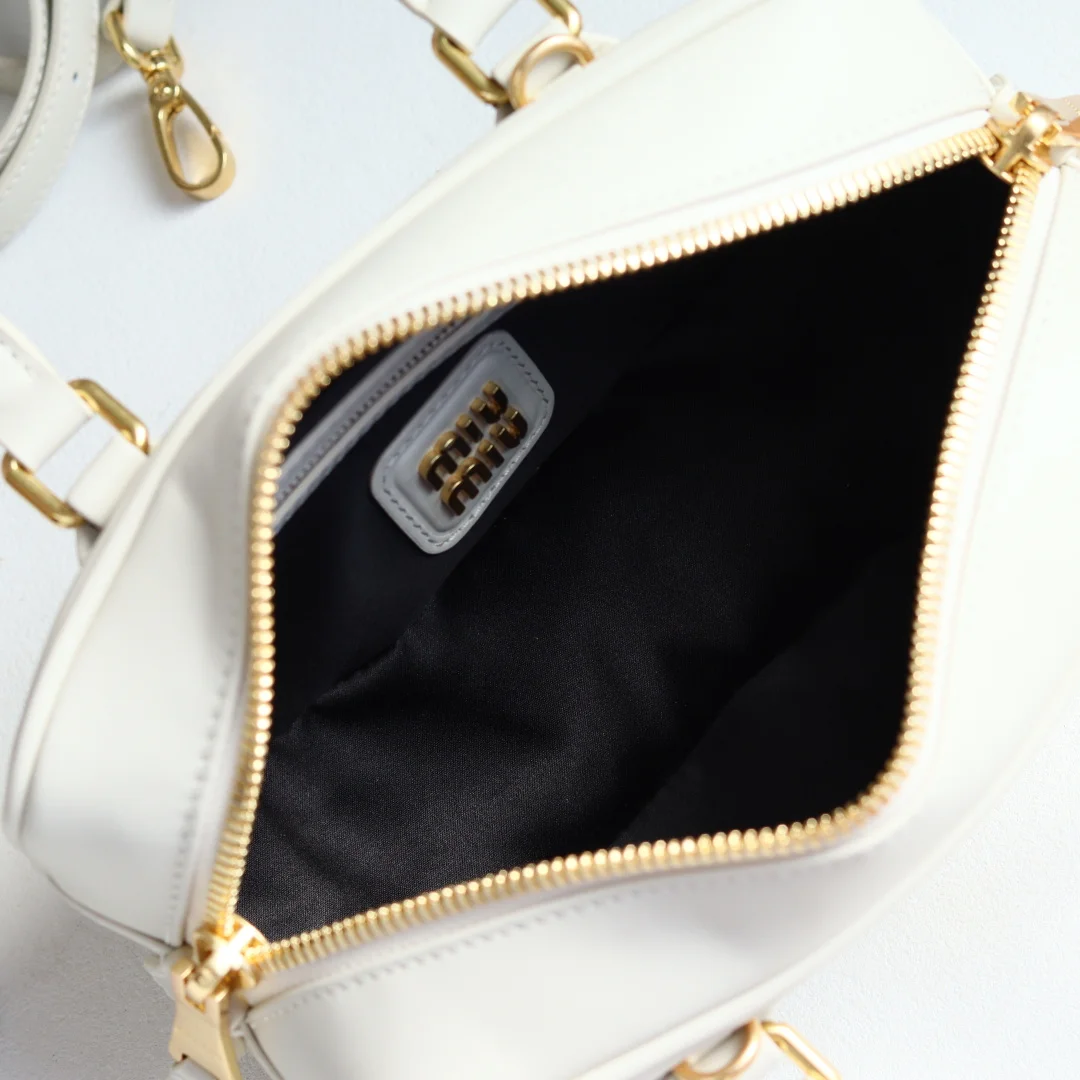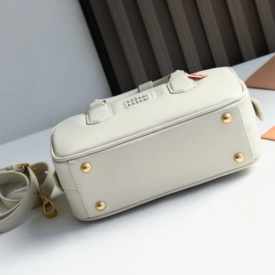 5BB142 Miu s new bowling bag, a top recommendation on the official website, definitely a hit style this year, made of top-quality imported calfskin, featuring Miu s unique Matelasse pattern, the bag is exquisitely three-dimensional and structured, with a front embossed logo that complements the leather color, detachable and adjustable leather shoulder strap, cotton satin lining, equipped with a zip pocket, favored by many celebrities and influencers, dimensions 22X10.5X7.5Cm, comes with original packaging