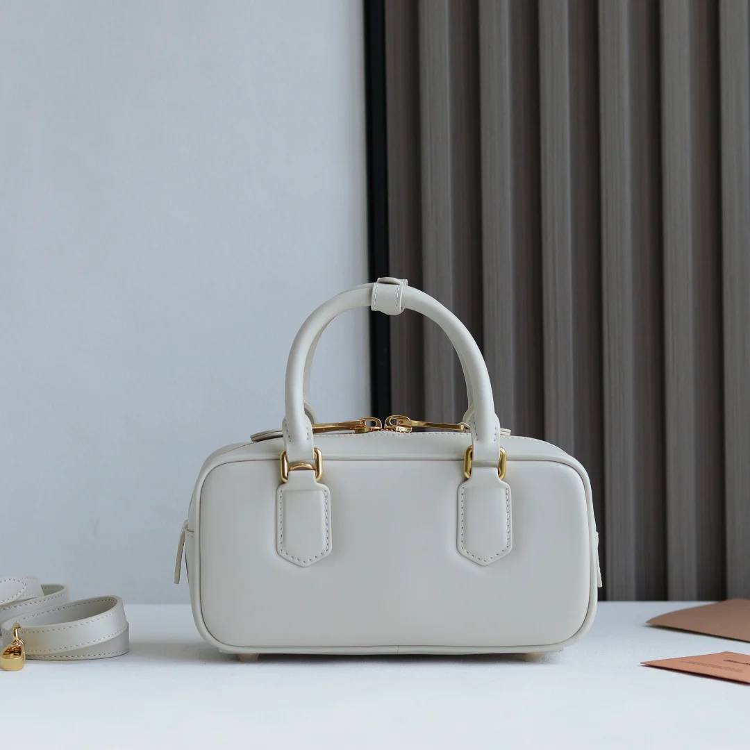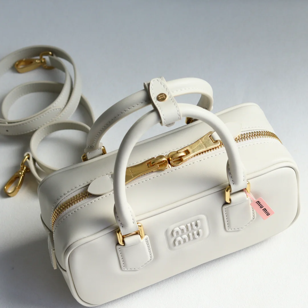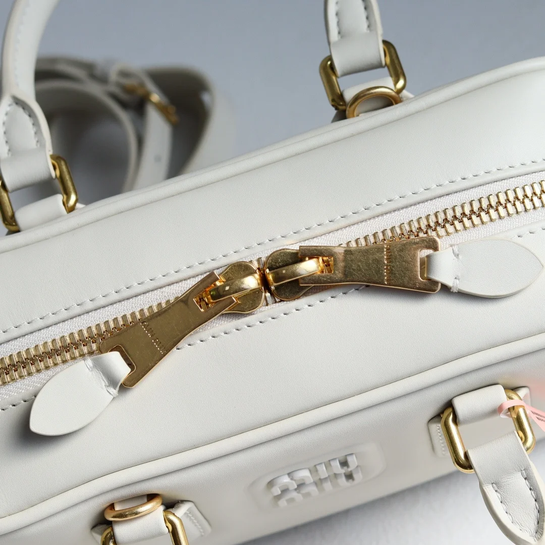 5BB142 Miu s new bowling bag, a top recommendation on the official website, definitely a hit style this year, made of top-quality imported calfskin, featuring Miu s unique Matelasse pattern, the bag is exquisitely three-dimensional and structured, with a front embossed logo that complements the leather color, detachable and adjustable leather shoulder strap, cotton satin lining, equipped with a zip pocket, favored by many celebrities and influencers, dimensions 22X10.5X7.5Cm, comes with original packaging
