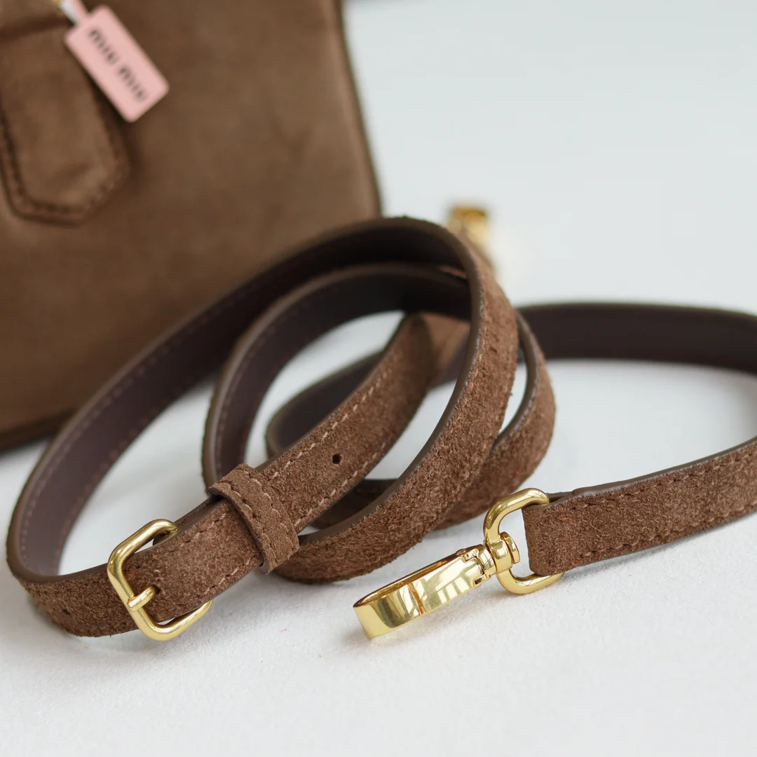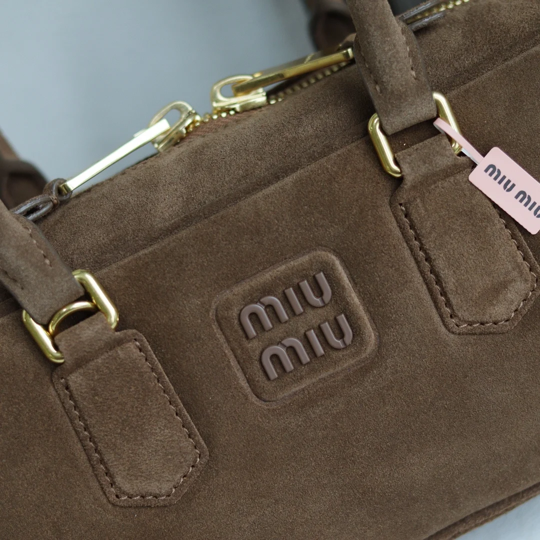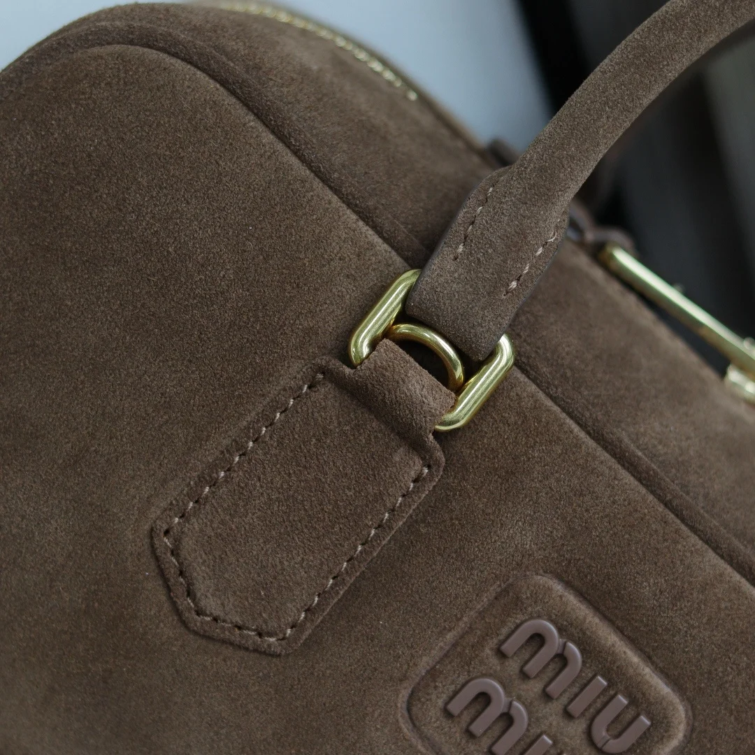 5BB148 Miu s new bowling bag, featuring the popular suede element of this autumn and winter, made of top-quality first-layer suede calfskin. The bag is exquisitely three-..