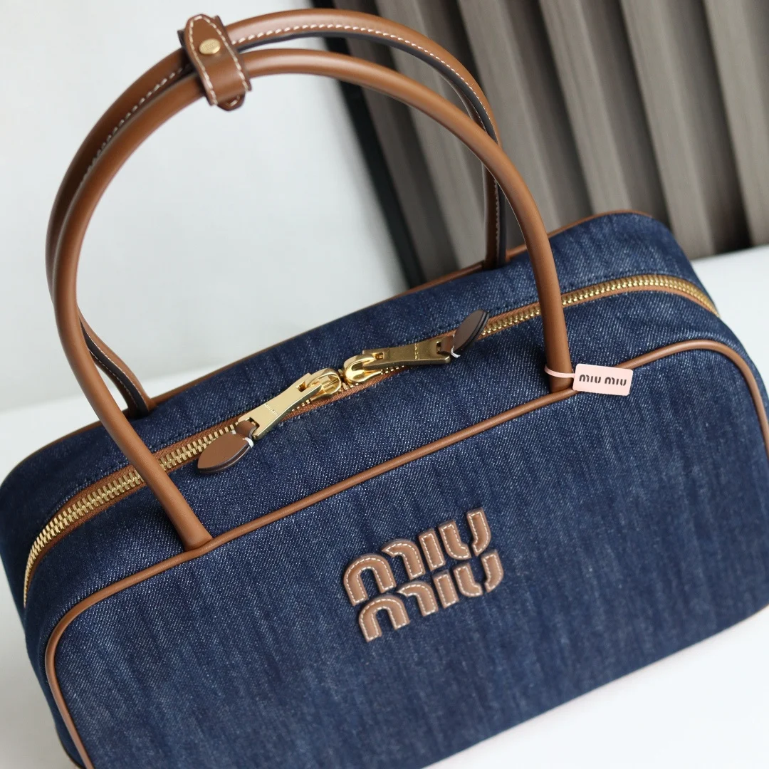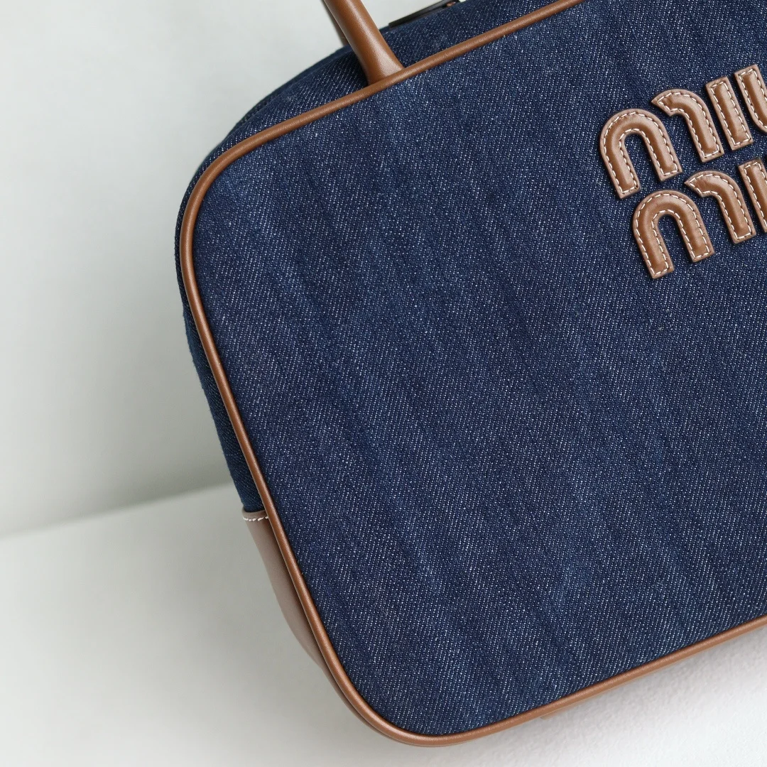 Miu Miu Canvas Bowling Briefcase Trending Online. Super beautiful spliced series, the runway style is truly a must-have! Made of top-grade imported calfskin, the leather is smoo..