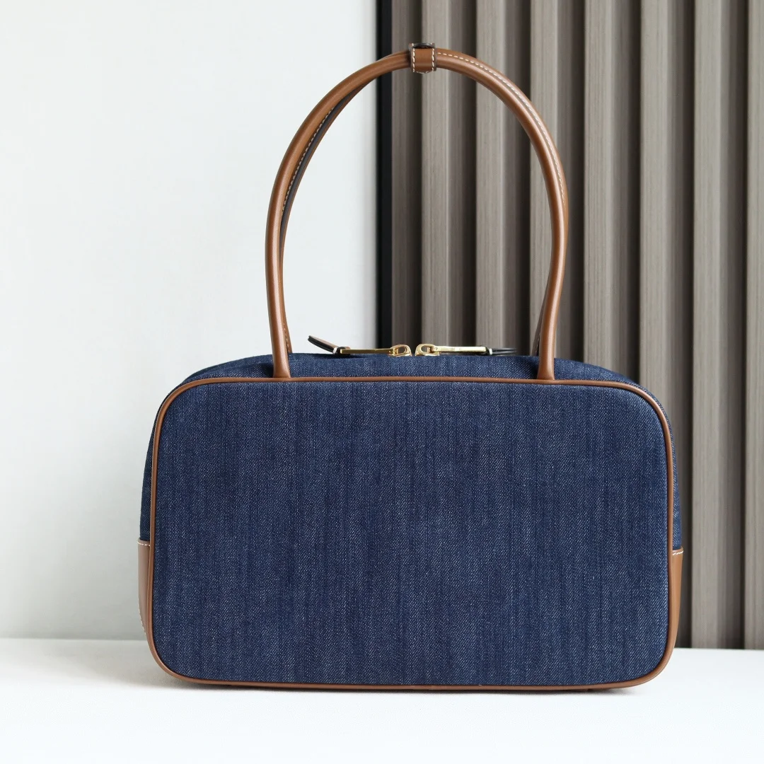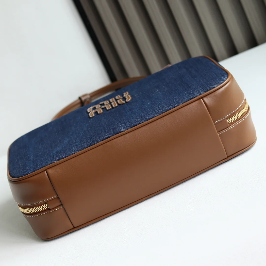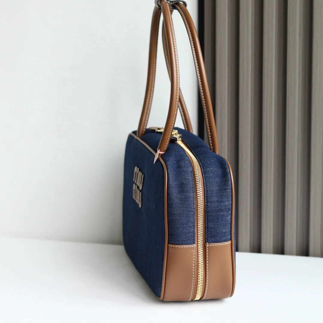 Miu Miu Canvas Bowling Briefcase Trending Online. Super beautiful spliced series, the runway style is truly a must-have! Made of top-grade imported calfskin, the leather is smooth, delicate, and soft, with a cotton satin lining. It looks great when carried, and it s truly full of aura when held in hand. A bag that will never go out of style!! Get this bag that can be carried by both men and women. The large bag is suitable for casual commuting and can also be used as a briefcase or work bag. Super large capacity and very lightweight, simple yet not ordinary. Almost every fashion blogger has one. Style number: 7012 5bb163 Size: 34x20x10CM
