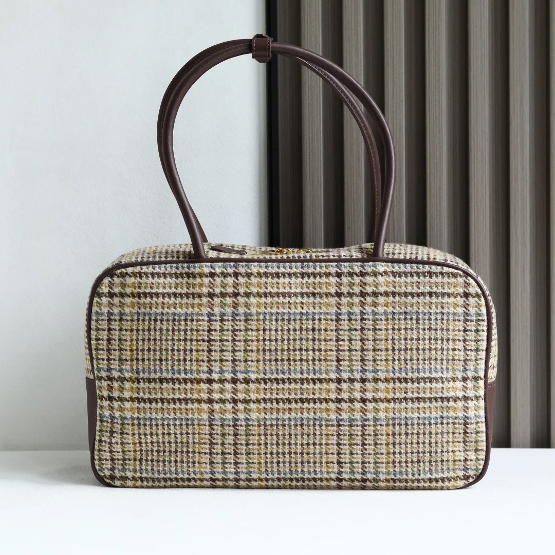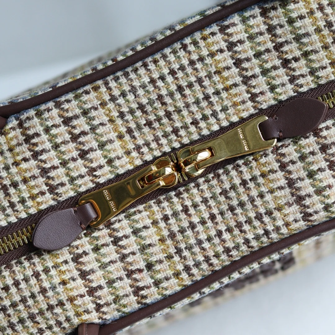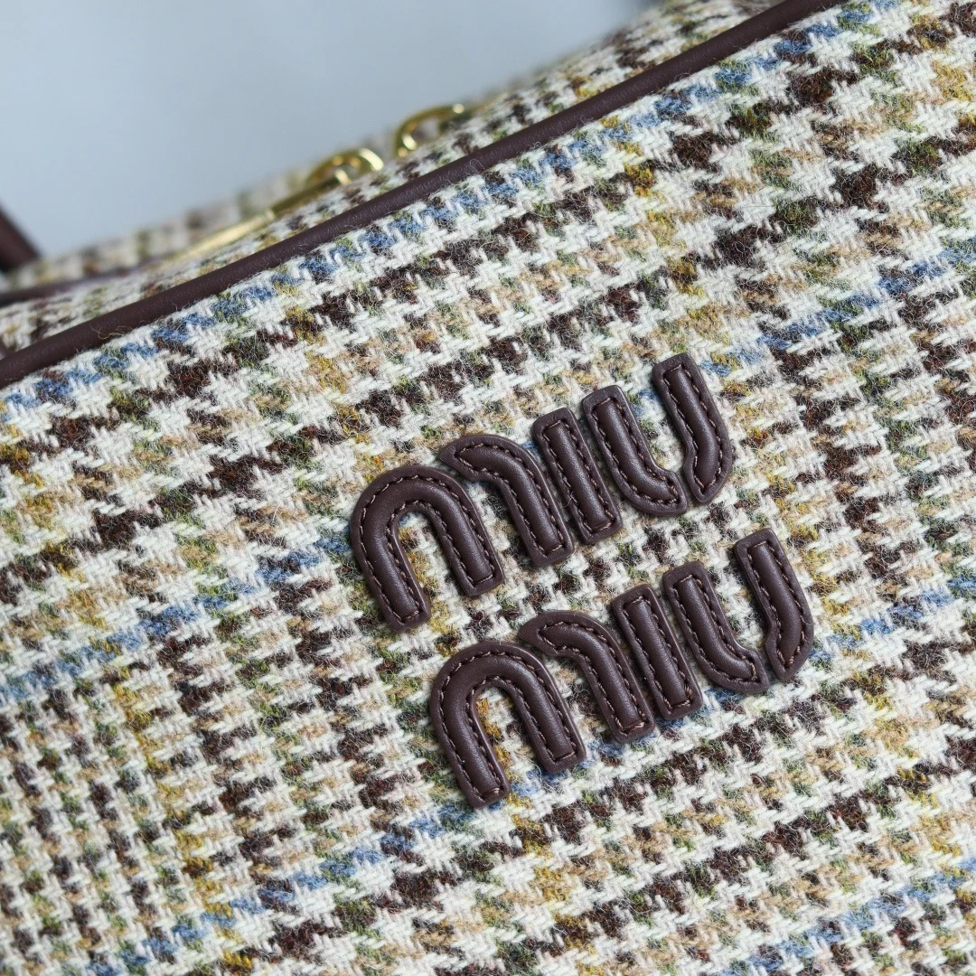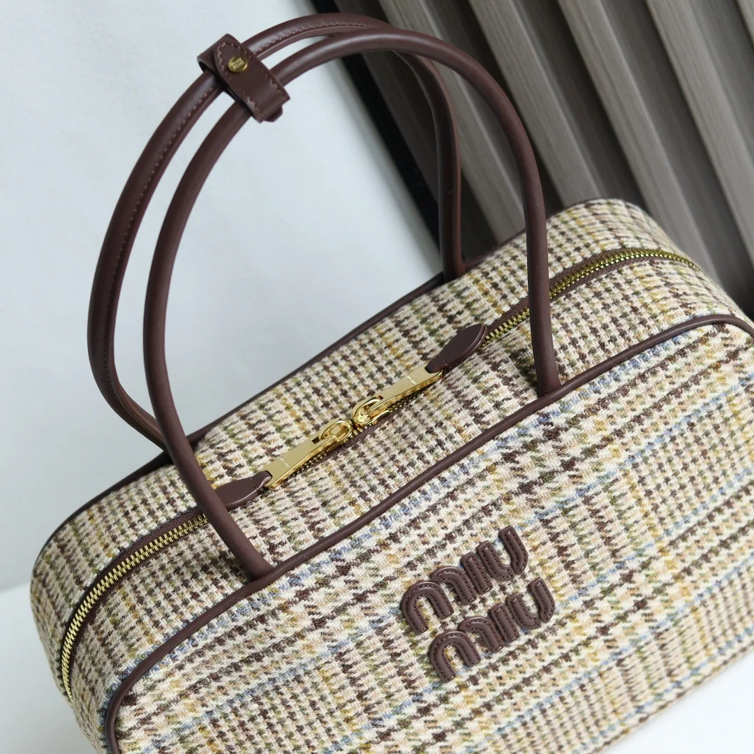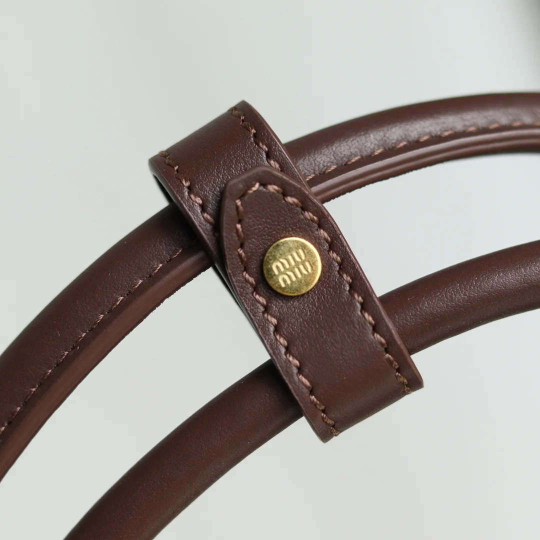 Miu Miu Canvas Bowling Bag Briefcase Trending Online. Superb spliced series, the runway style is truly coveted! Made of top-grade imported calfskin, the leather is smooth, delicate, and soft, with a cotton satin lining. It looks great when carried, and it s truly full of aura when held in hand, a bag that will never go out of style!! Get this bag that can be carried by both men and women. This large bag is suitable for casual commuting and can also be used as a briefcase or work bag. It has a super large capacity and is very lightweight, simple yet not simplistic. Major fashion bloggers almost have one each. Style number: 7012 5bb163 Size: 34x20x10CM Color: Coffee