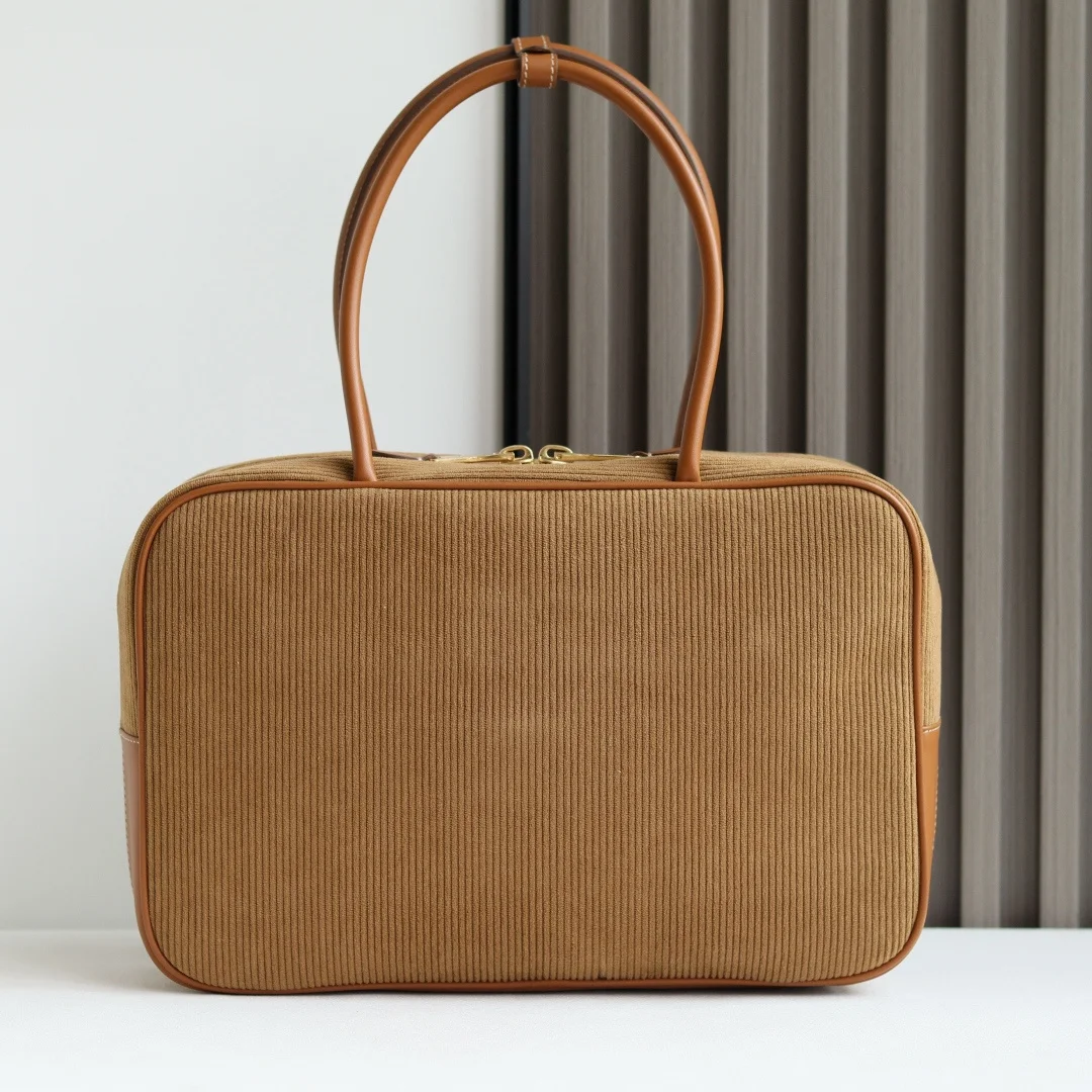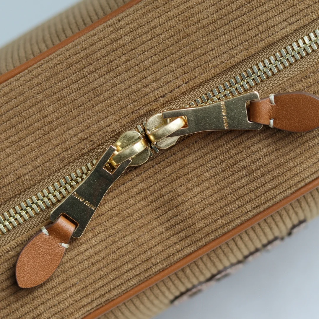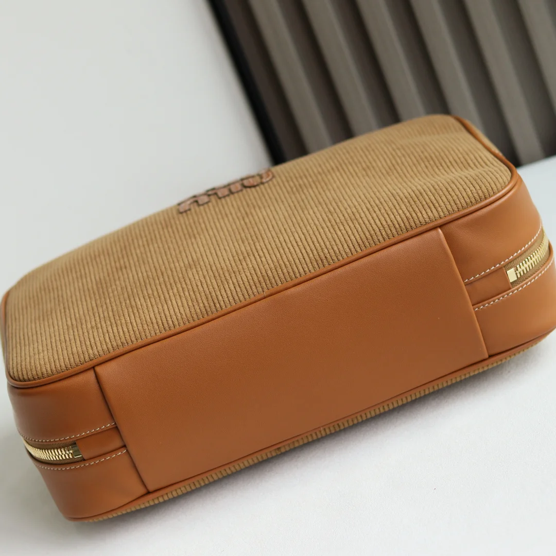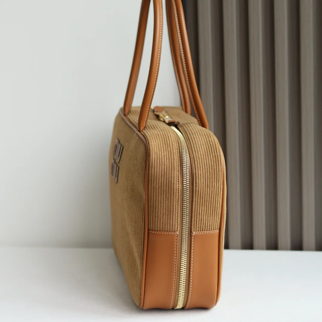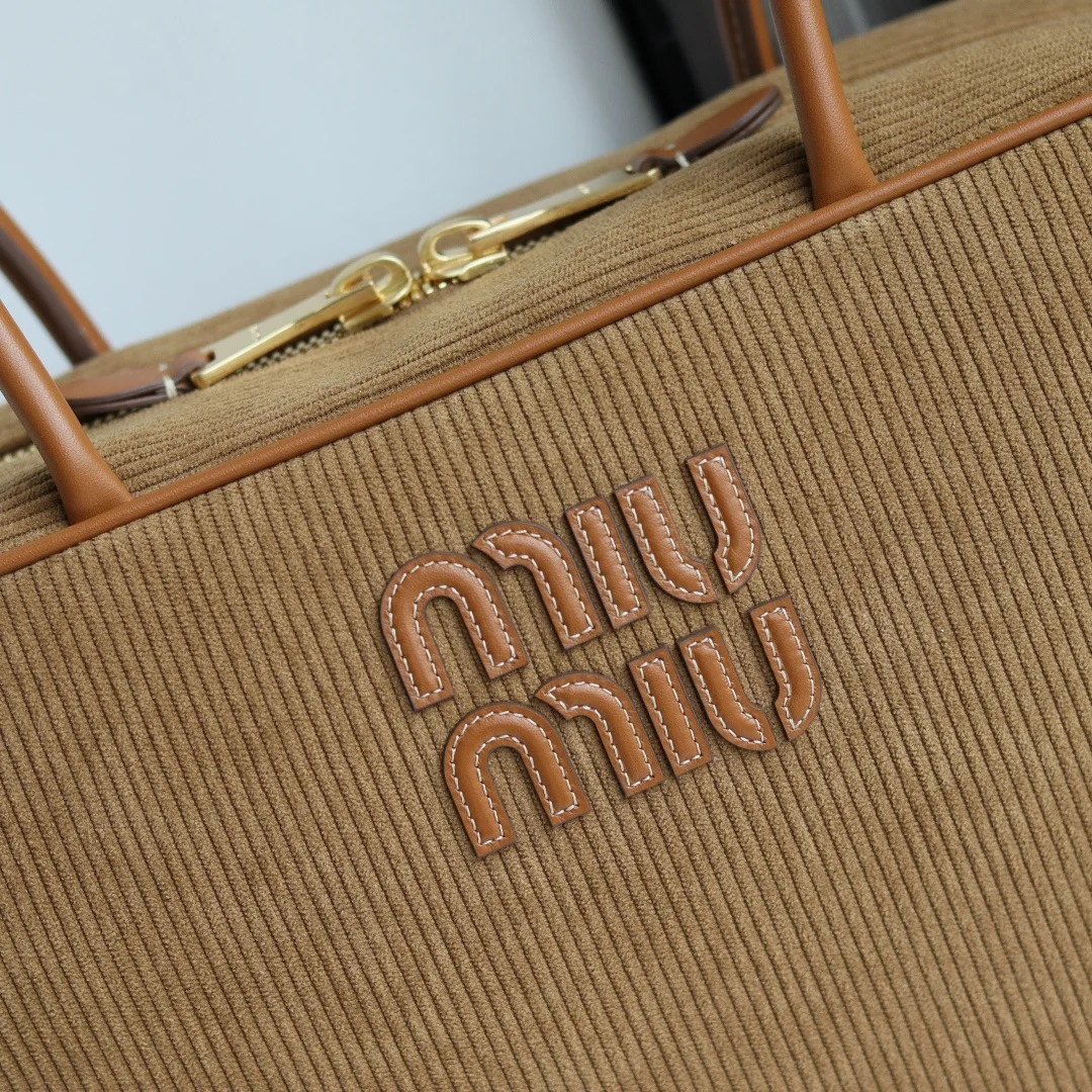 5BB163: New MiuMiu corduroy briefcase, a perfect fusion of fashion and classic, exquisite, casual and lazy. The corduroy fabric is matched with calfskin, which is soft and durable...