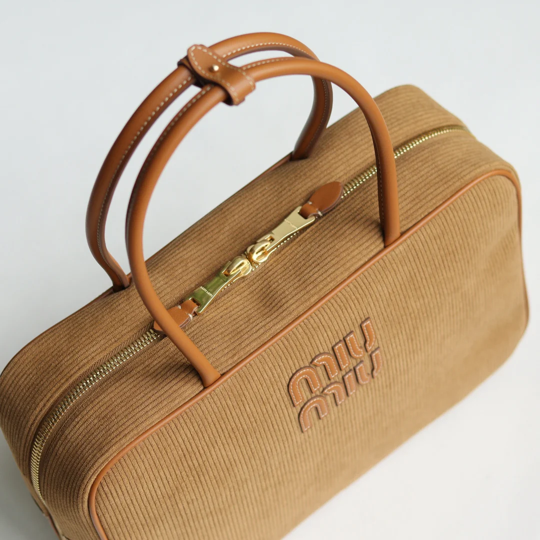 MIU MIU 5bb163 Corduroy Bowling Satchel Ladies Handbag