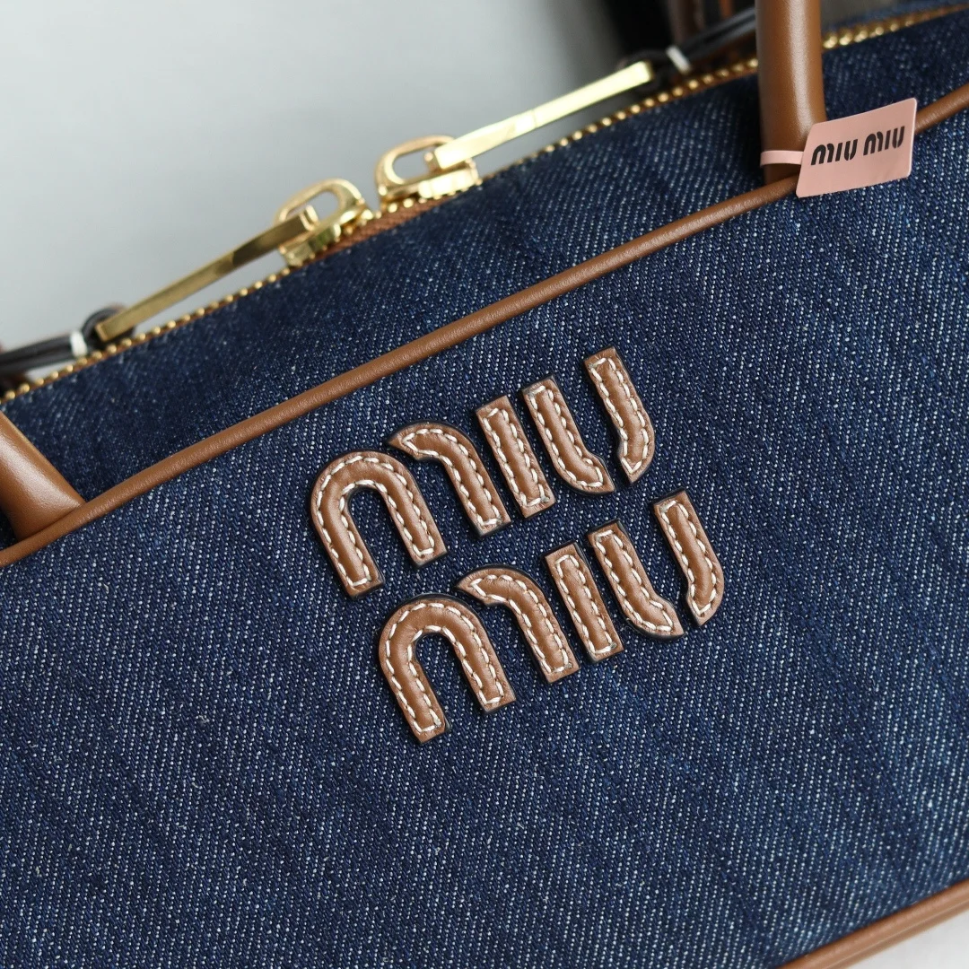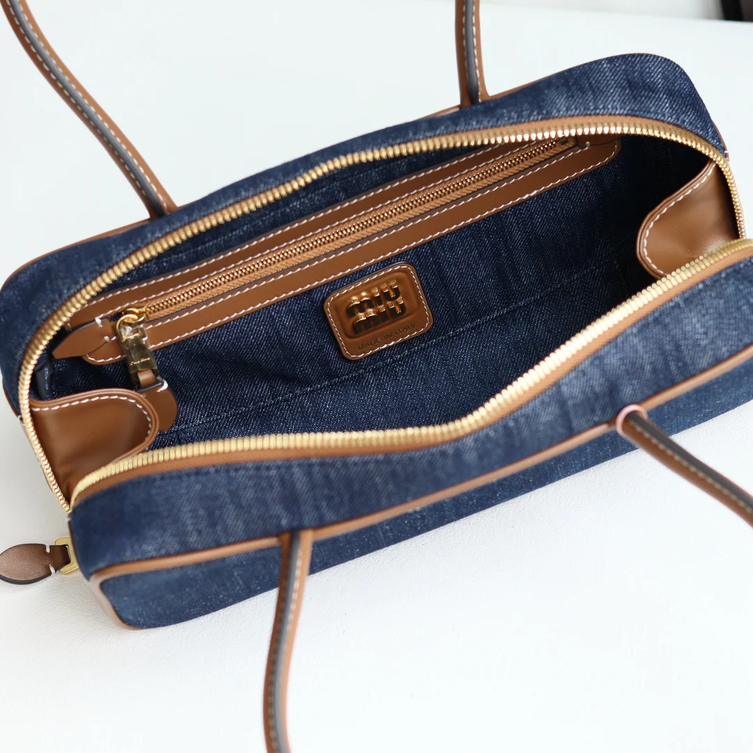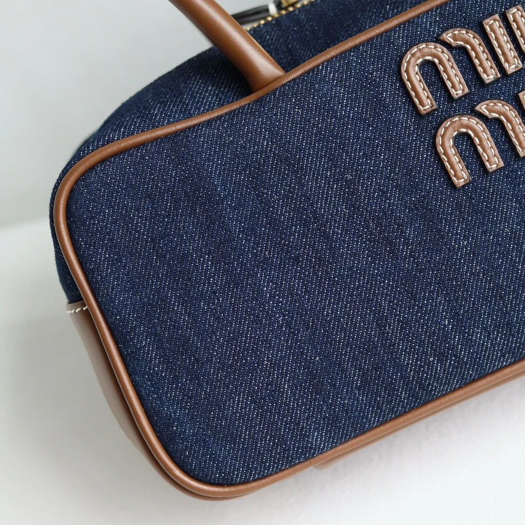 Top Grade Original Leather Miu s New 5BB173 Bowling Bag in Canvas, crafted from new canvas fabric paired with premium smooth calfskin. The bold and innovative design perfectly embodies Miu s unconventional, free-spirited, and inclusive attitude towards life. This bag is cool, capturing the essence of sophisticated, multi-functional design, blending menswear and womenswear elements for a casual, laid-back, and naturally elegant style, full of personality. Featuring a new canvas lining, its widespread popularity is well-deserved, favored by major fashion bloggers and celebrities alike. Dimensions: 28X12X9cm [Comes with a full set of original packaging]