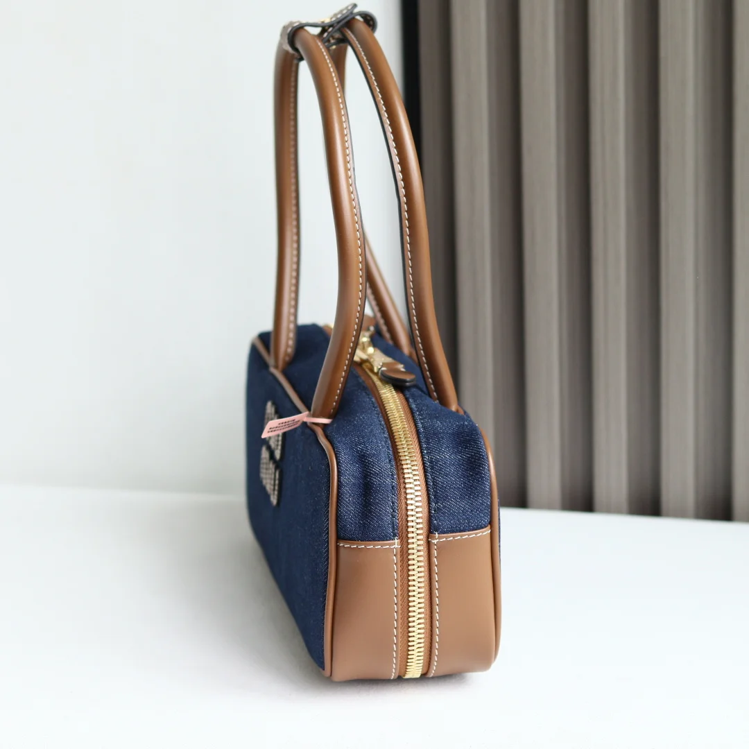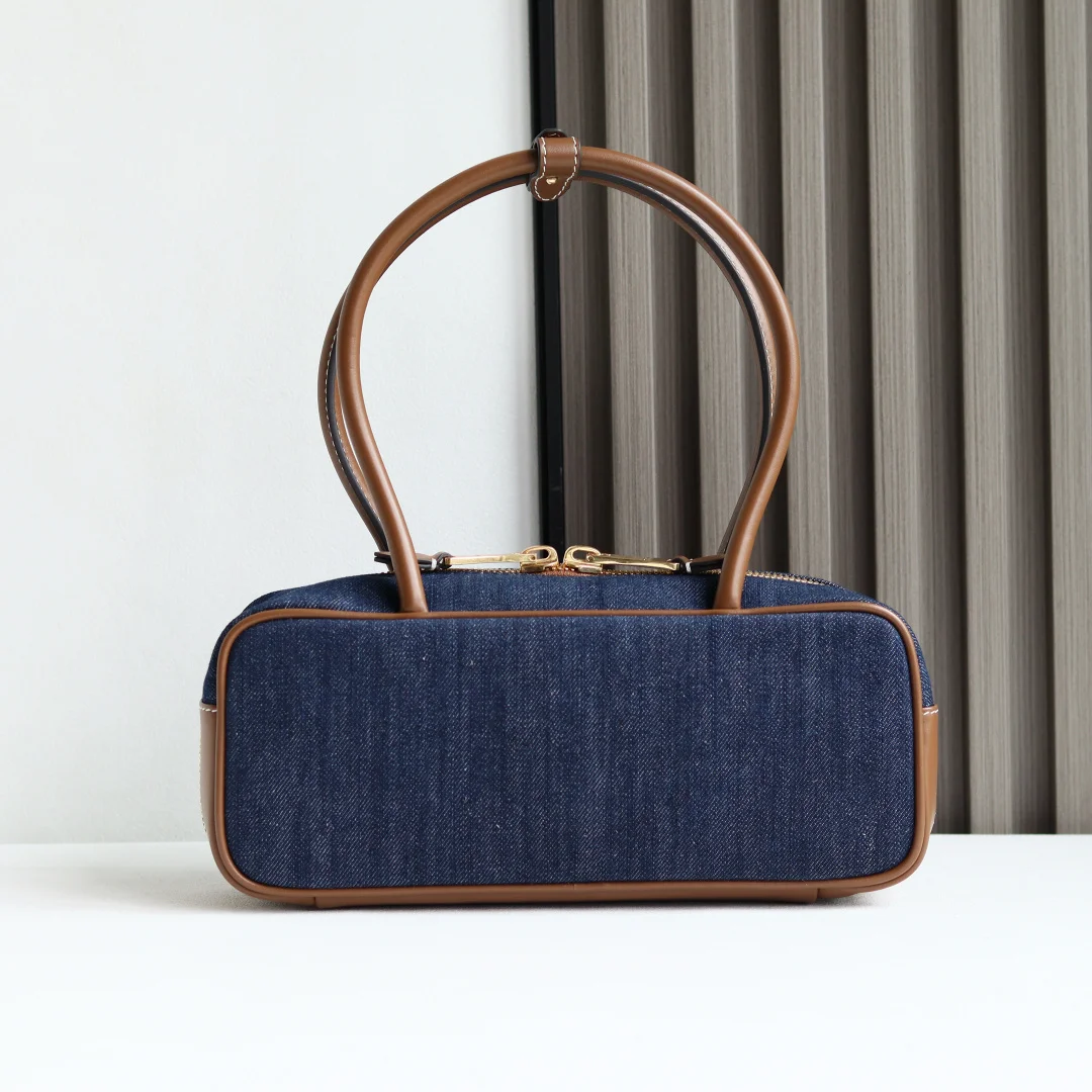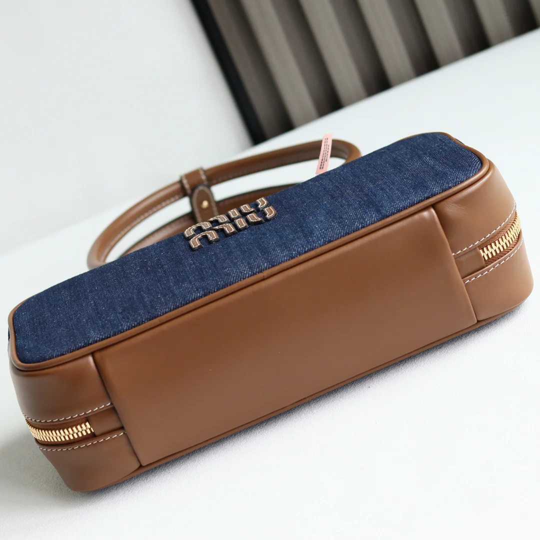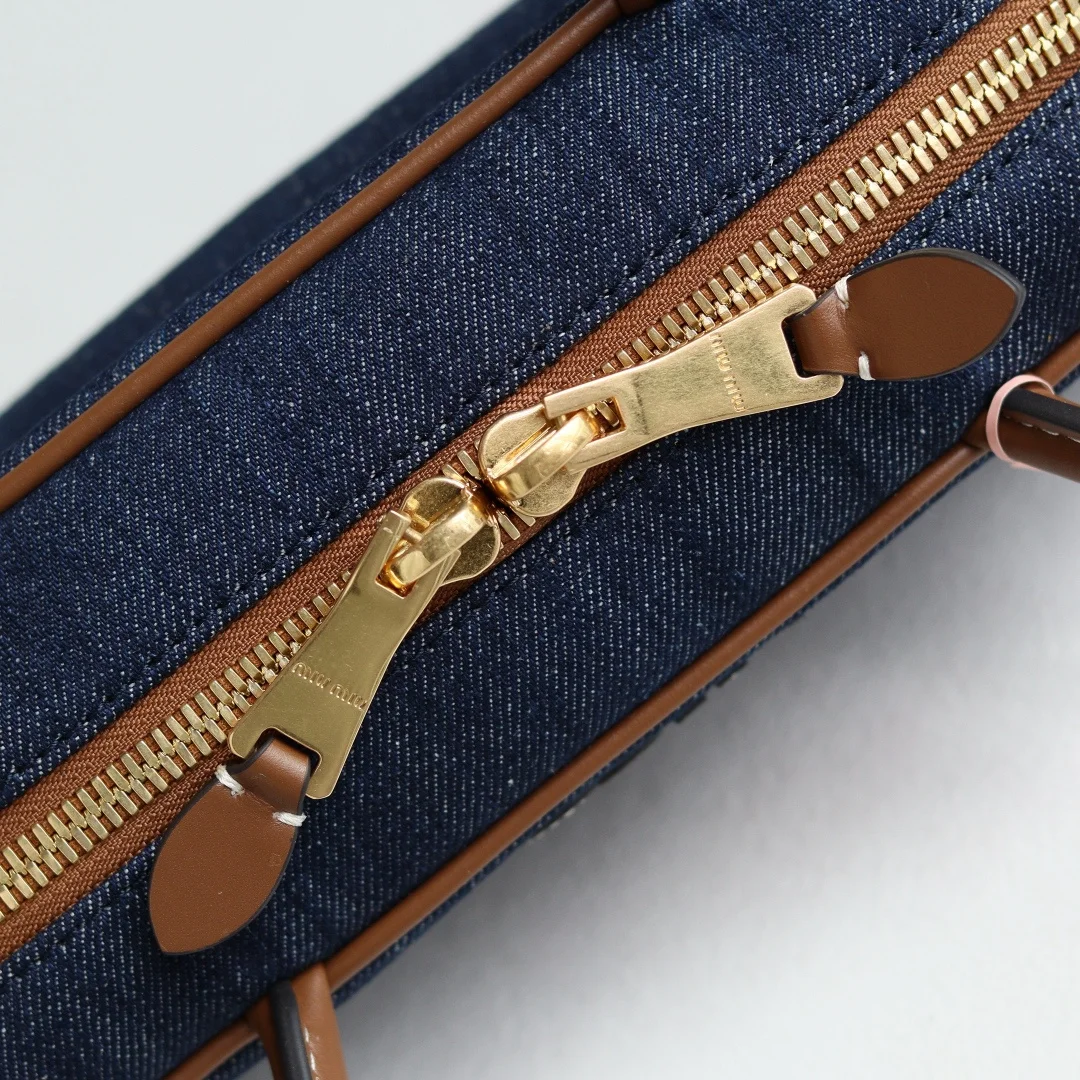 Top Grade Original Leather Miu s New 5BB173 Bowling Bag in Canvas, crafted from new canvas fabric paired with premium smooth calfskin. The bold and innovative design perfectly embodies Miu s unconventional, free-spirited, and inclusive attitude towards life. This bag is cool, capturing the essence of sophisticated, multi-functional design, blending menswear and womenswear elements for a casual, laid-back, and naturally elegant style, full of personality. Featuring a new canvas lining, its widespread popularity is well-deserved, favored by major fashion bloggers and celebrities alike. Dimensions: 28X12X9cm [Comes with a full set of original packaging]