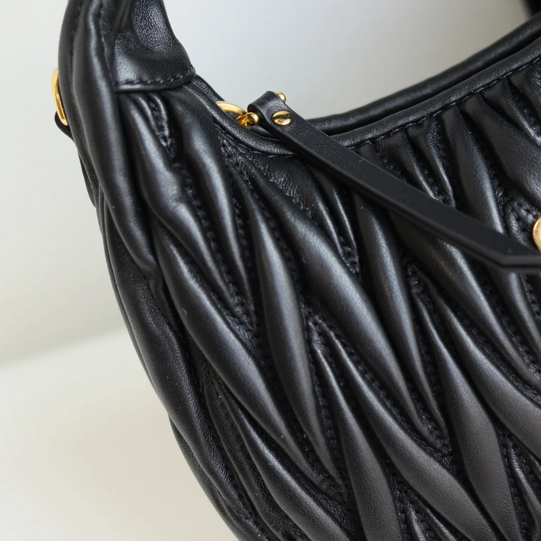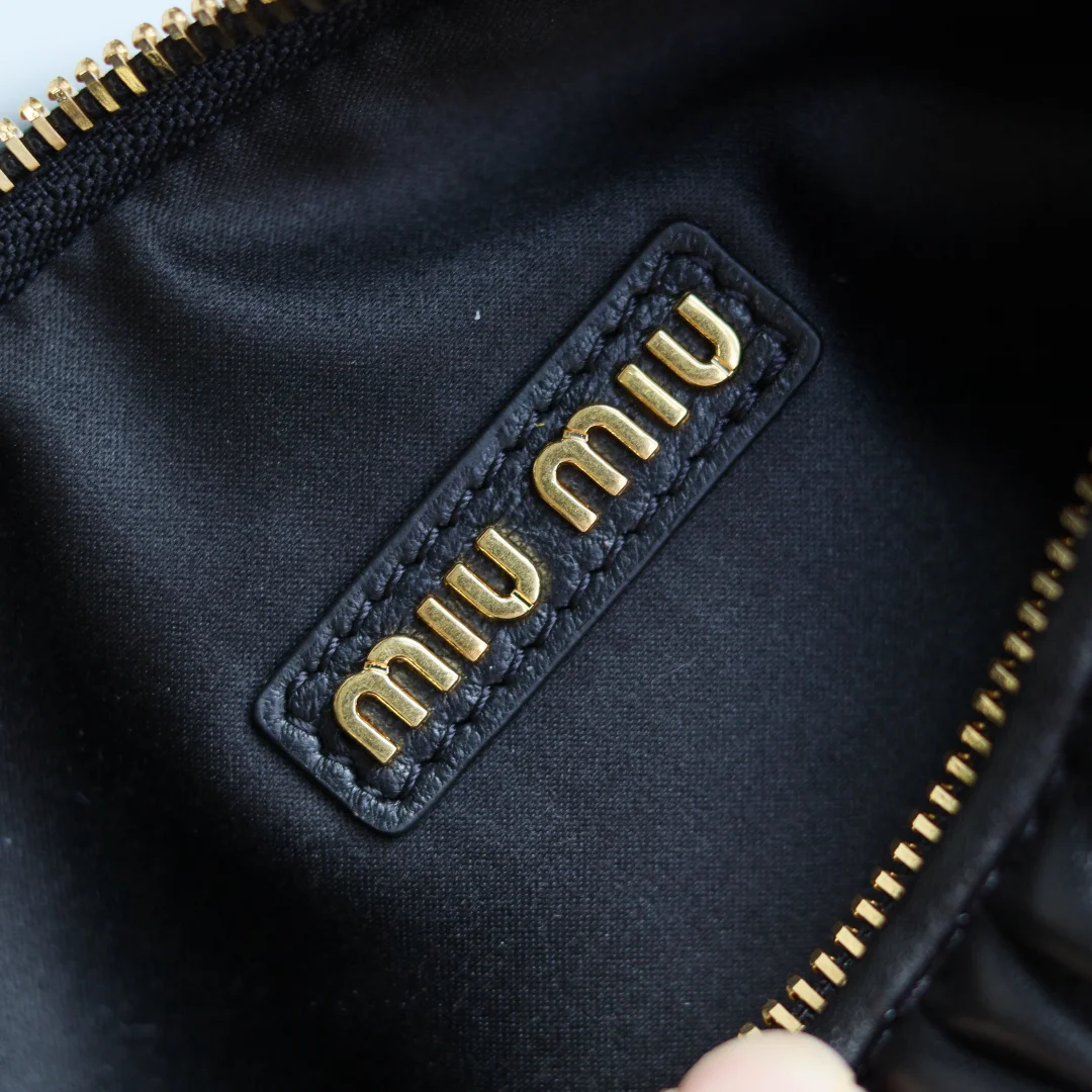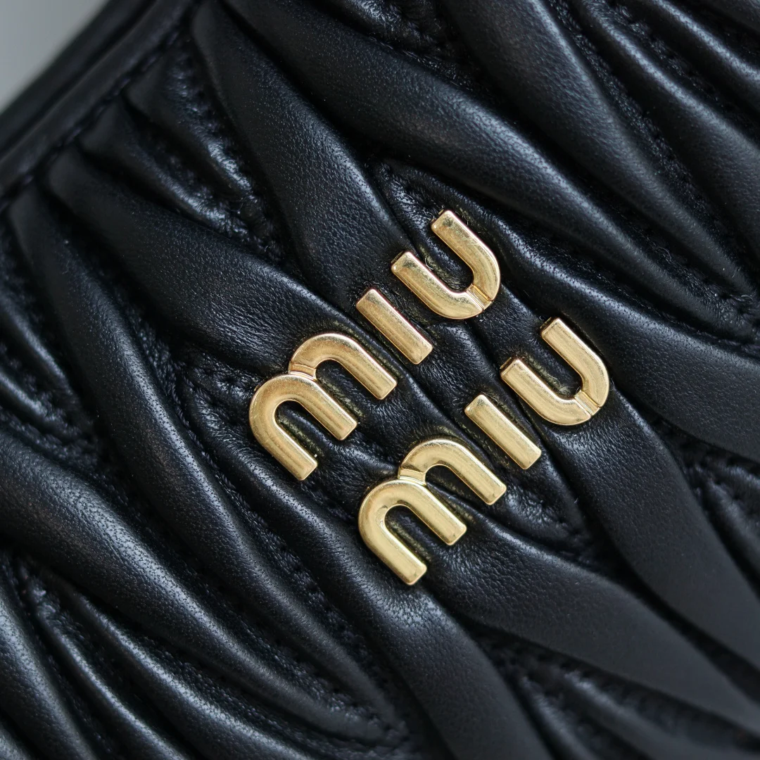 M House Model 5BC125: The MiuWander handbag features imported lambskin with the brand s iconic Matelasse embroidery, vintage brushed hardware, and utilizes a rounded curve to re..