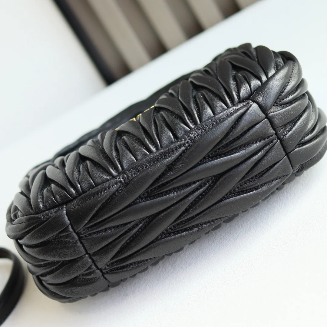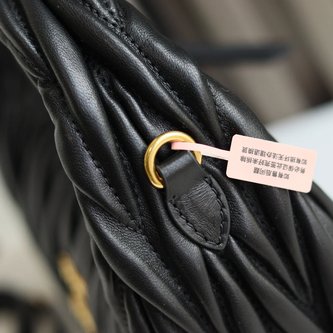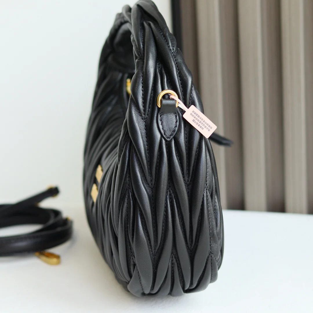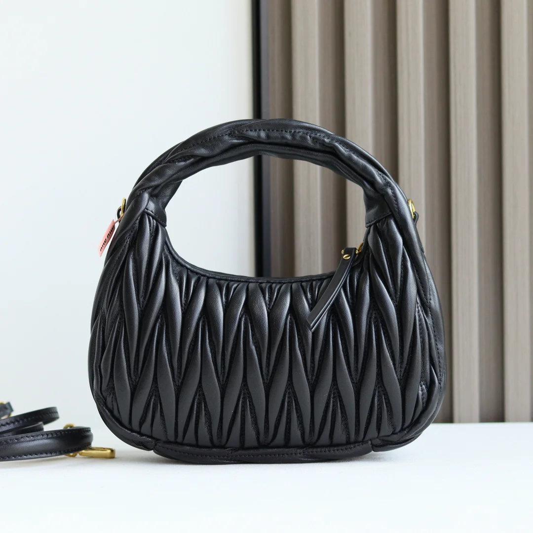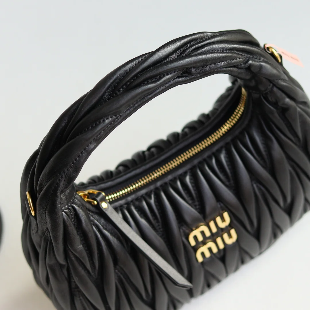 M House Model 5BC125: The MiuWander handbag features imported lambskin with the brand s iconic Matelasse embroidery, vintage brushed hardware, and utilizes a rounded curve to retain its playful charm. The bag s overall shape is structured and stylish, full of personality, and versatile. It s a must-have for fashion bloggers, available in various colors, with dimensions of 23X13X7, and comes with original packaging.