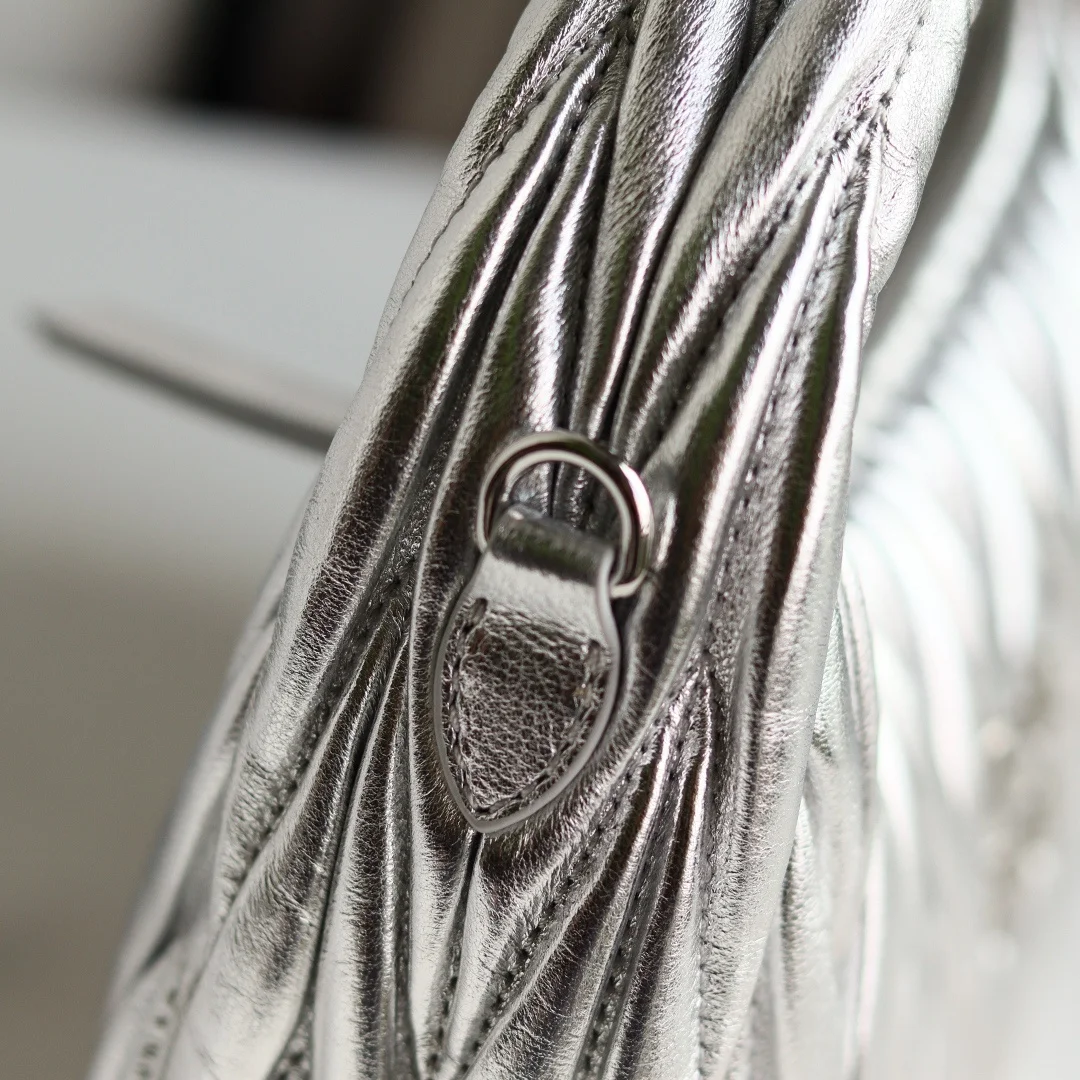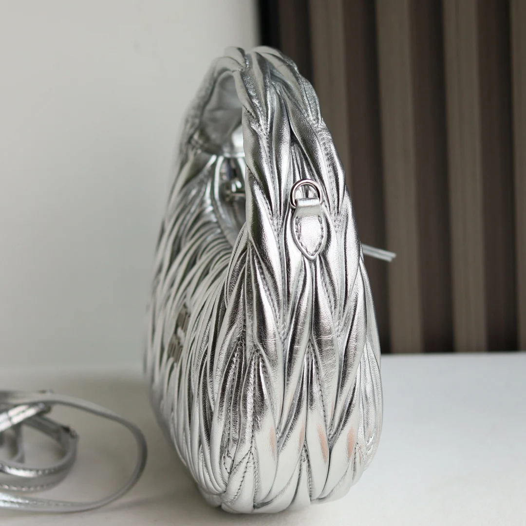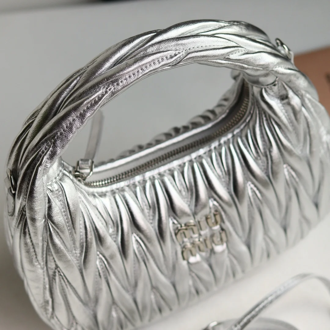 M House Model 5BC125: The MiuWander handbag features imported lambskin with the brand s iconic Matelasse embroidery, vintage brushed hardware, and a rounded curve design that re..