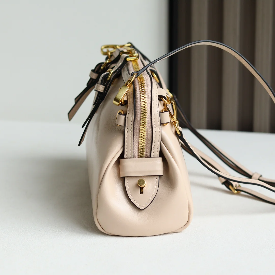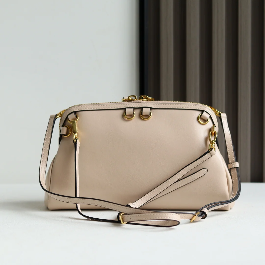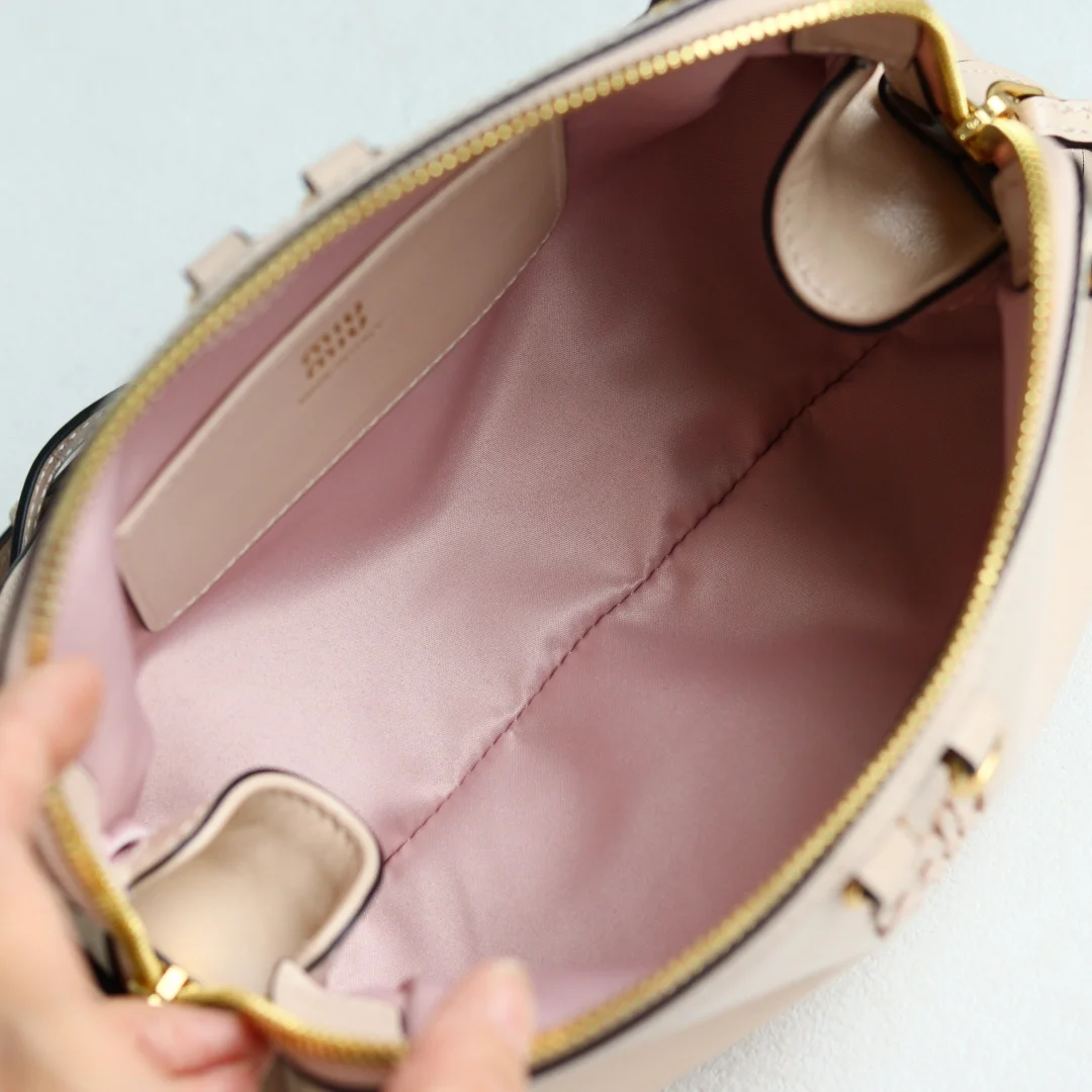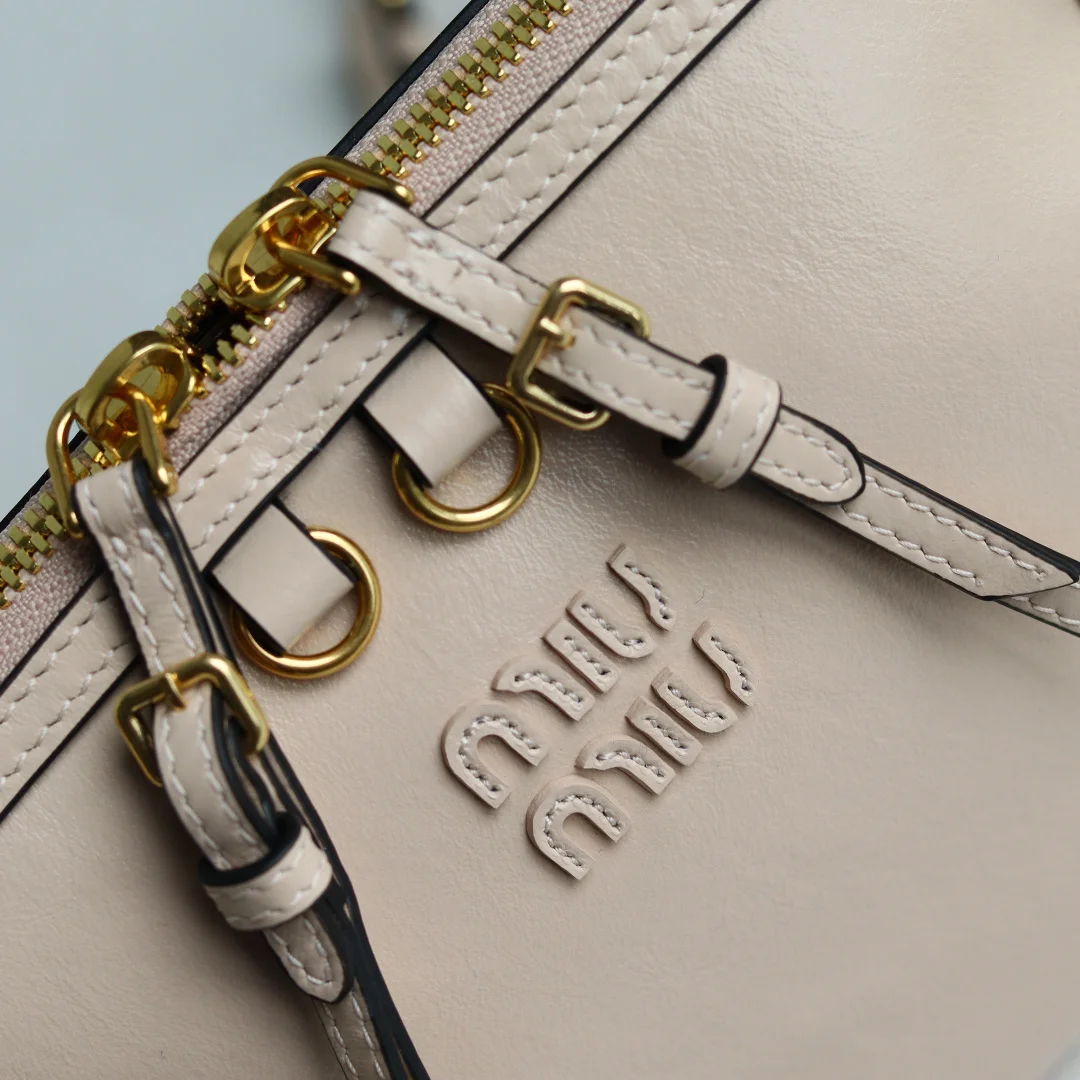 The Miu new collection features a shell-shaped backpack made of exquisite and delicate glossy calfskin. Its minimalist lines combine inspiration from fashion shows with the modern feminine temperament, achieving a balance between style experimentation and refined diversity. The handbag offers multiple carrying options: shoulder, handheld, crossbody, and backpack, showcasing a versatile vintage style. It continues Miu s unconventional, bold innovation, and relaxed yet naturally elegant aesthetic, with a distinctive personality that can adapt to various styles, making it an excellent choice for work commutes or casual outings.