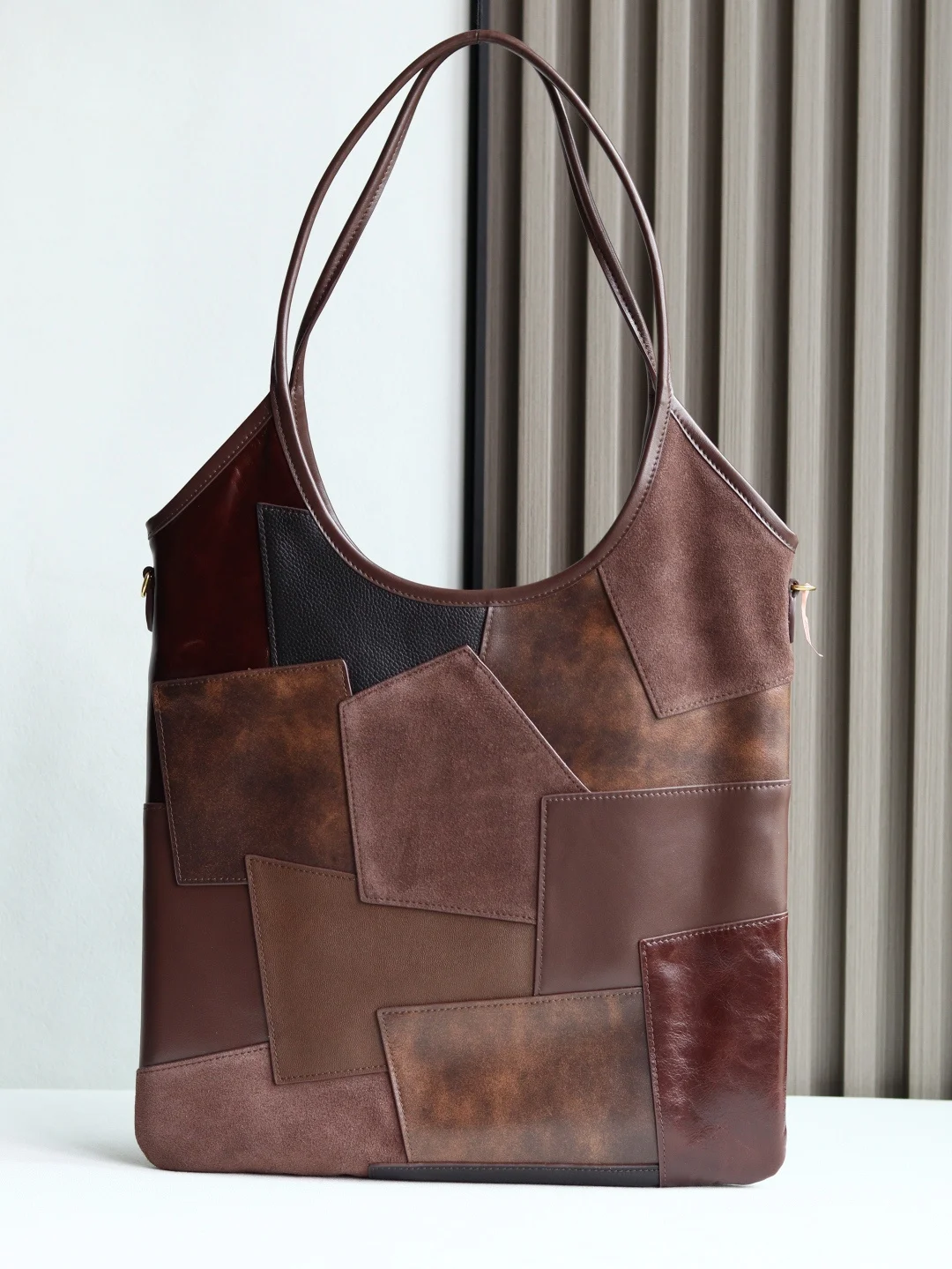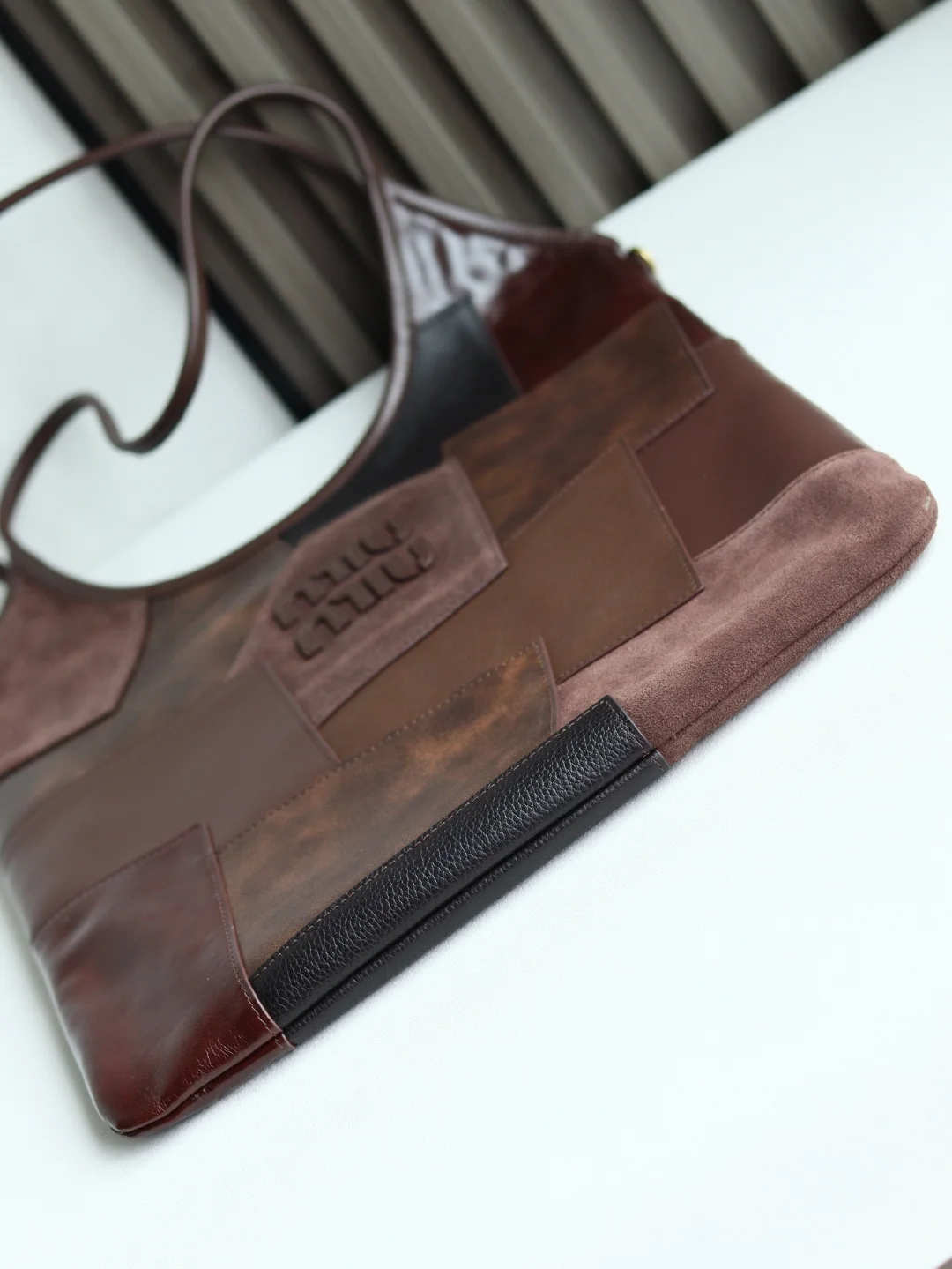 Miu s new Isetan limited edition tote bag is handcrafted with a variety of leather patchwork. The bold and innovative design perfectly interprets Miu s unconventional, free and easy, and inclusive attitude towards life. It is definitely a popular style this year. Top imported calfskin, high-end texture, the bag is soft and not collapsed, with a casual and lazy temperament, super large capacity, 100% return rate for daily outings, hand-stitched leather Logo, new linen lining inside, with zipper pocket, size 35 X 40Cm, model: 5BG231 with original packaging