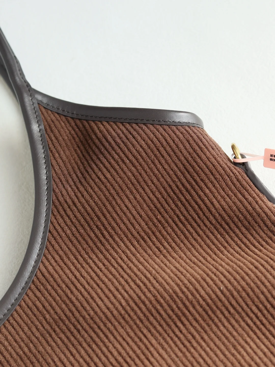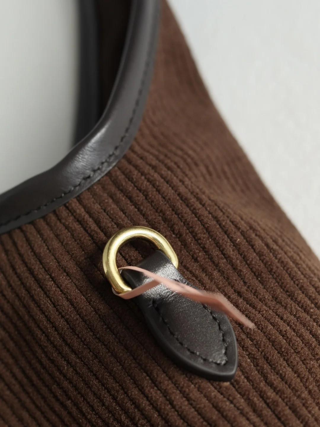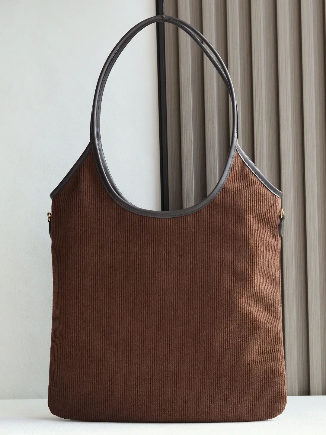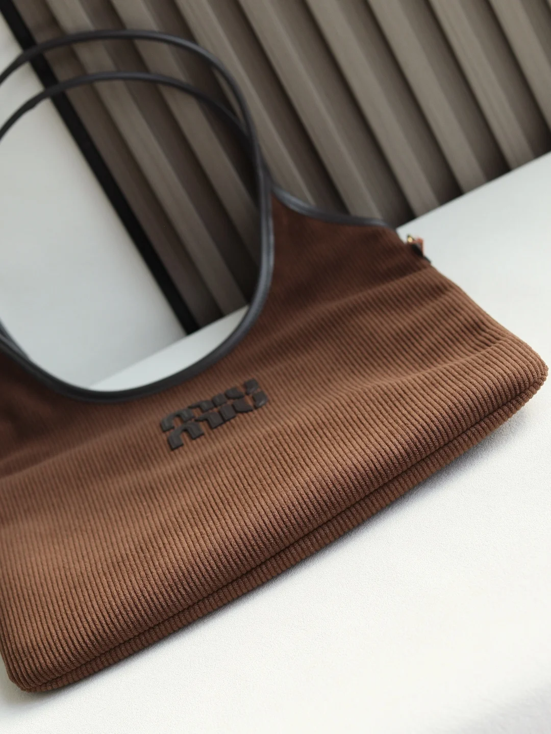 The new 5BG231Miu Isetan exclusive tote bag is definitely a hot item this year. It features a brand new limited edition corduroy material with a high-quality feel. The bag is soft yet maintains its shape, exuding a casual and relaxed vibe. With an oversized capacity, it looks great with any outfit, ensuring a 100% return rate when you carry it out. It has a handcrafted leather logo, and the interior is made of new linen fabric, complete with a zippered pocket. Dimensions are 35 X 40 cm.